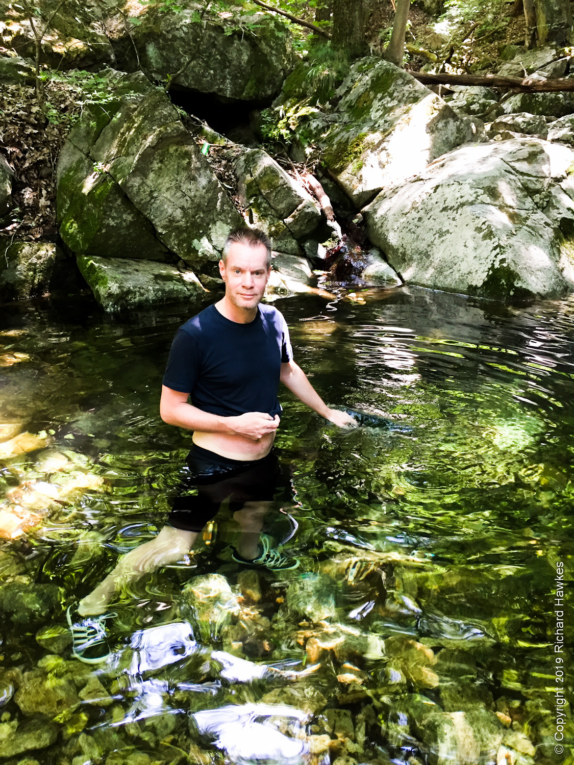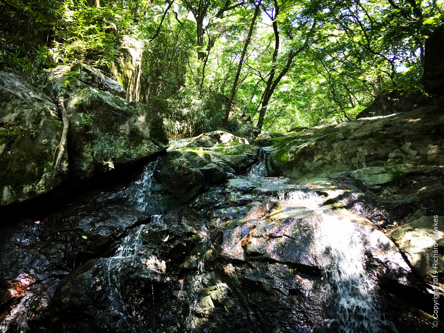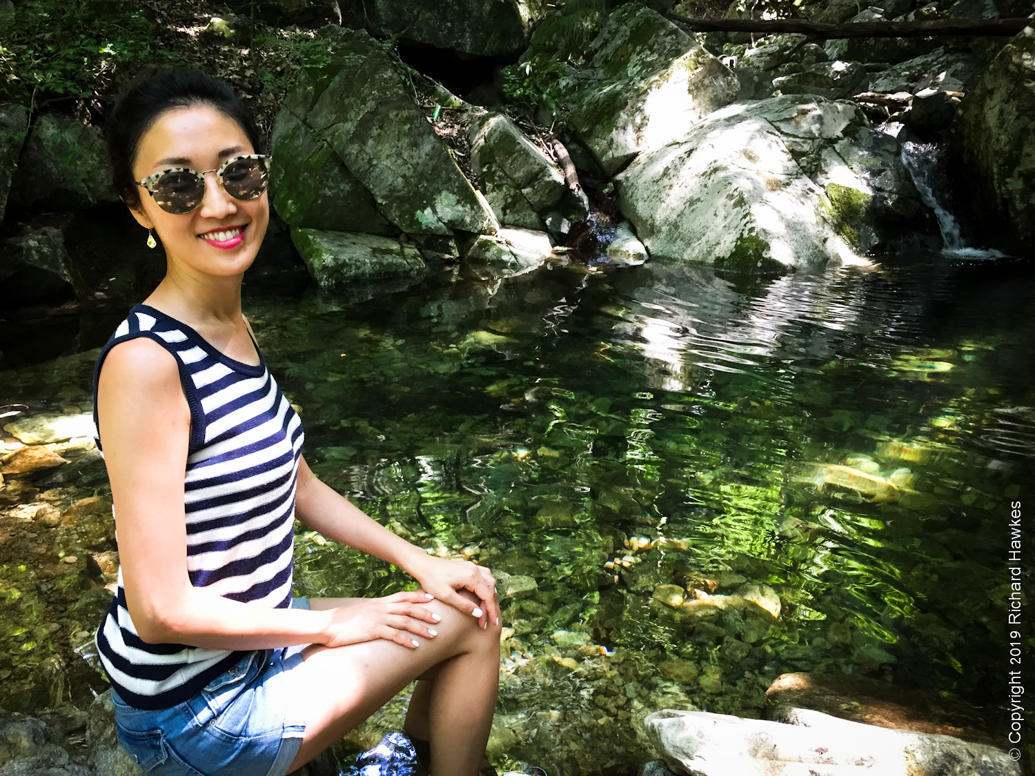 On our last day in this area, we decided to go to more mountain streams since yesterday was so fantastic. This time we went to an area on the side of the mountain near our vacation place. We dropped by another temple then kept heading up to a small waterfall, where Romana could spot and try to capture fish.