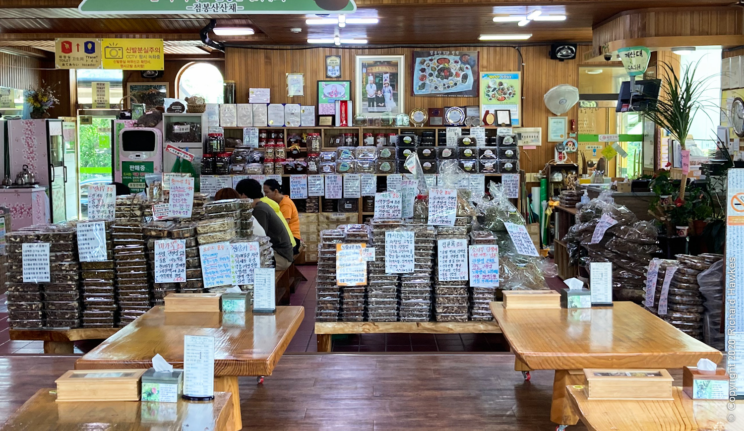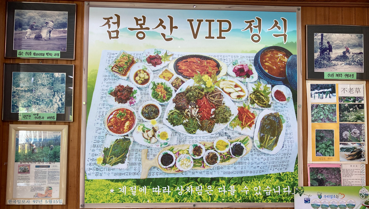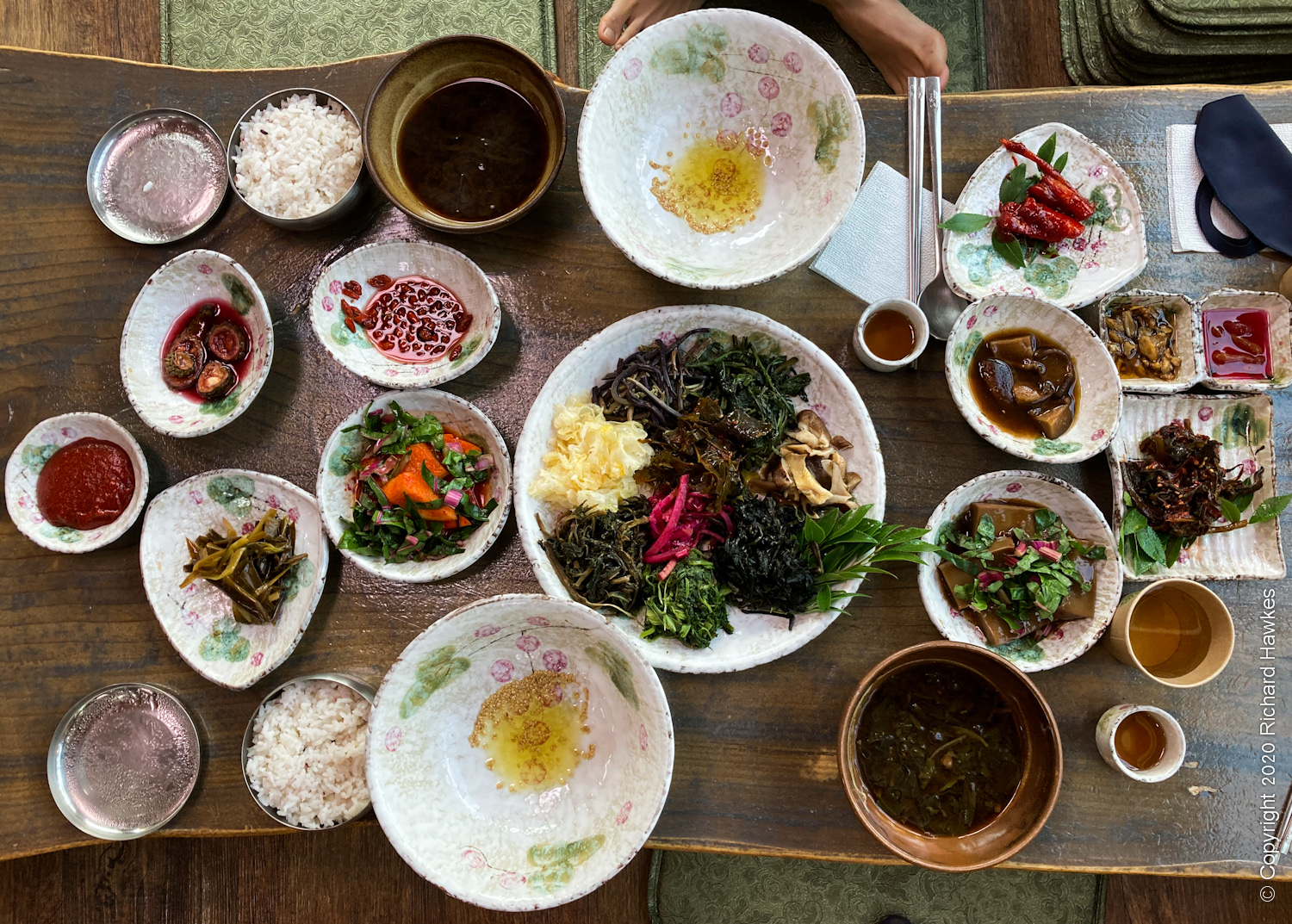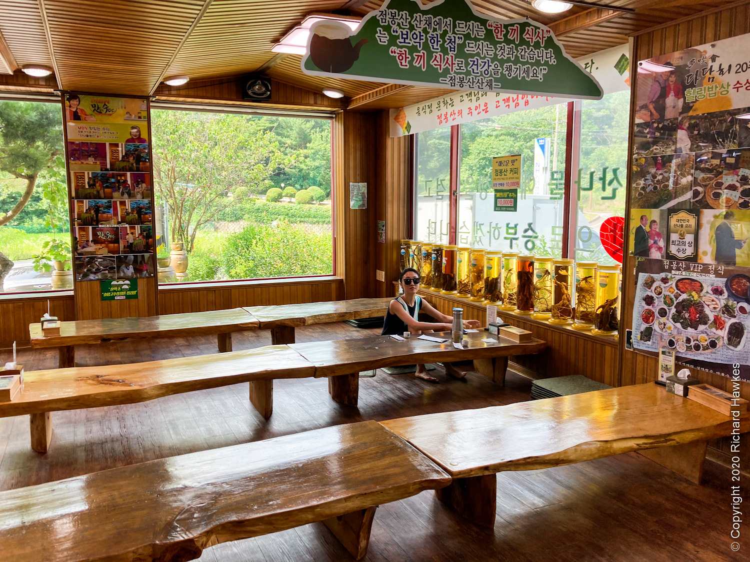 After my quick photo session, we left for Jeombong Sanchae (점봉산산채), about twenty minutes away. It serves locally grown vegetables in numerous ways. We opted for a set menu with a bibimbap type meal where you add your own veg to your big rice bowl. The restaurant itself was nice in it’s traditional modern design (1980s?) featuring wood interior, floor seating, and and shop area stuffed with dried vegetables.
