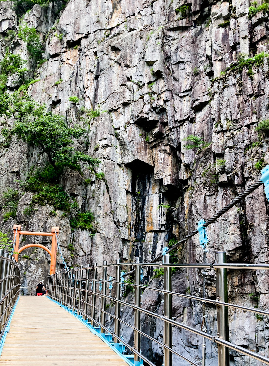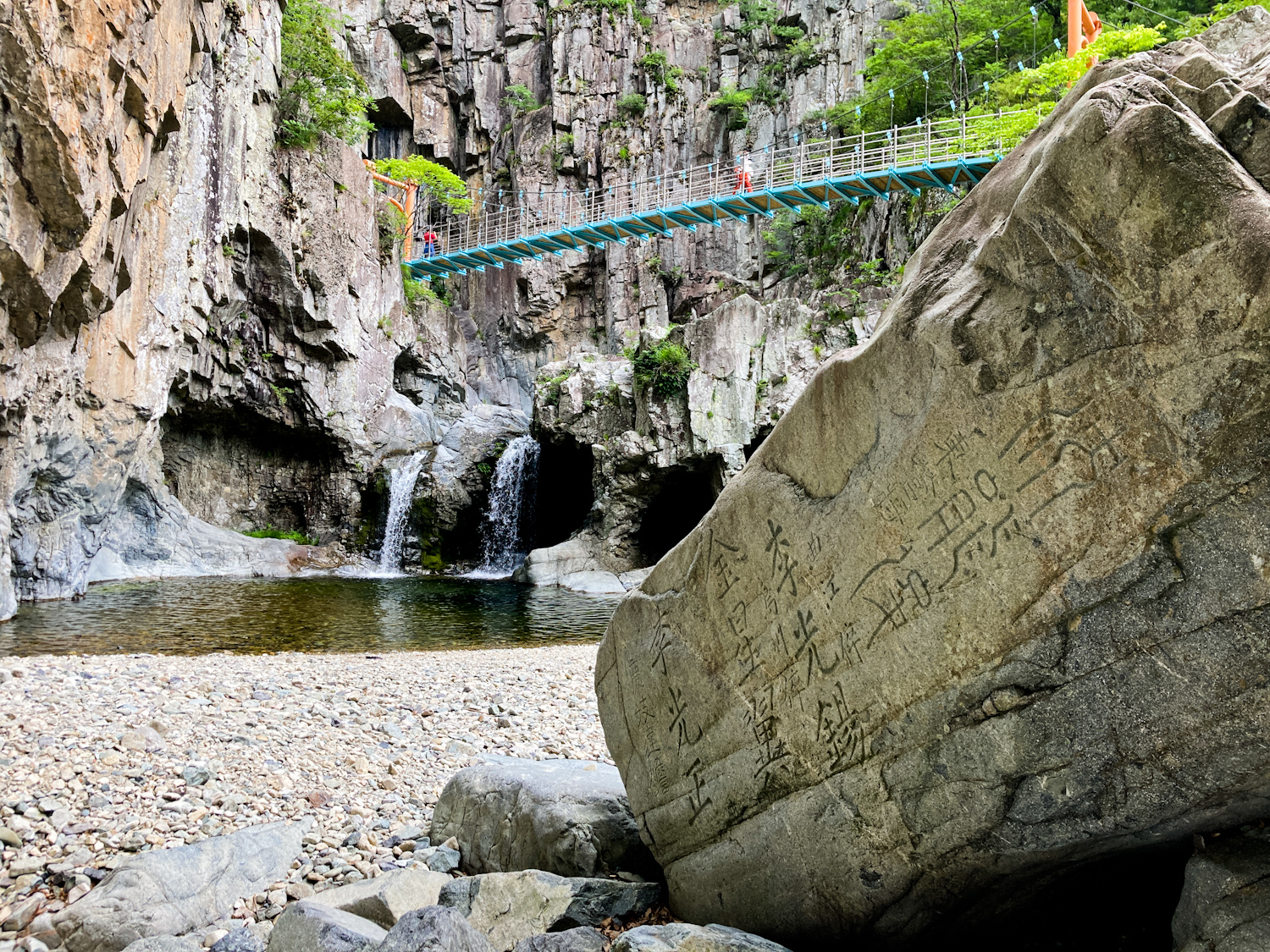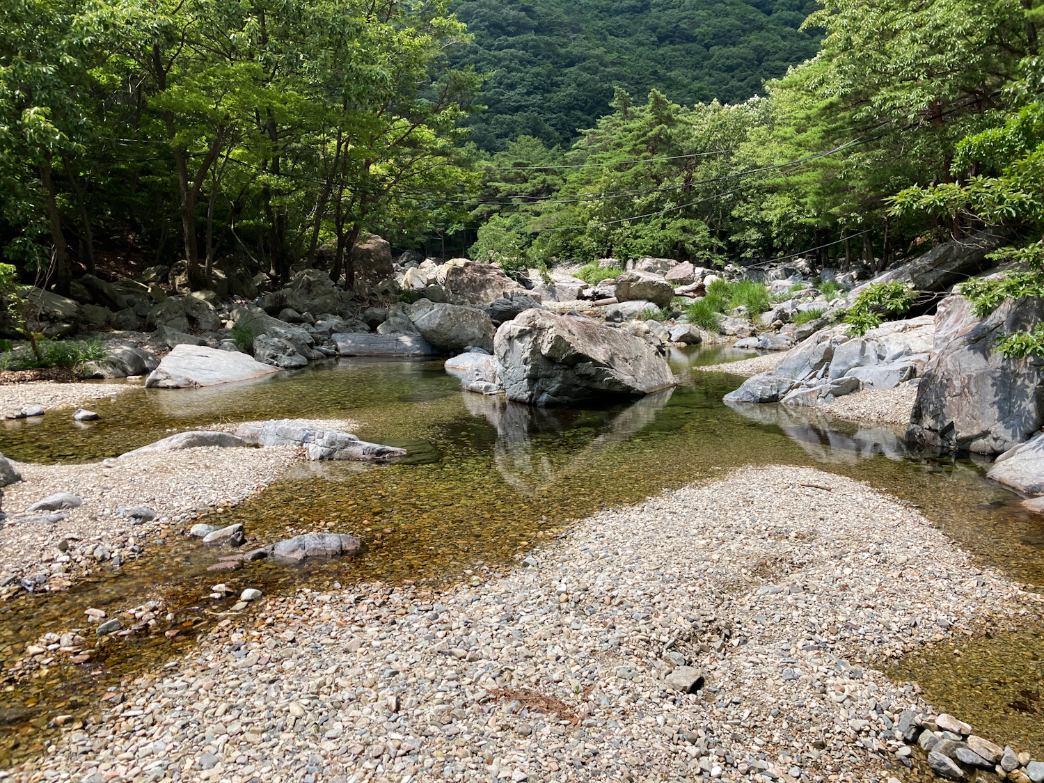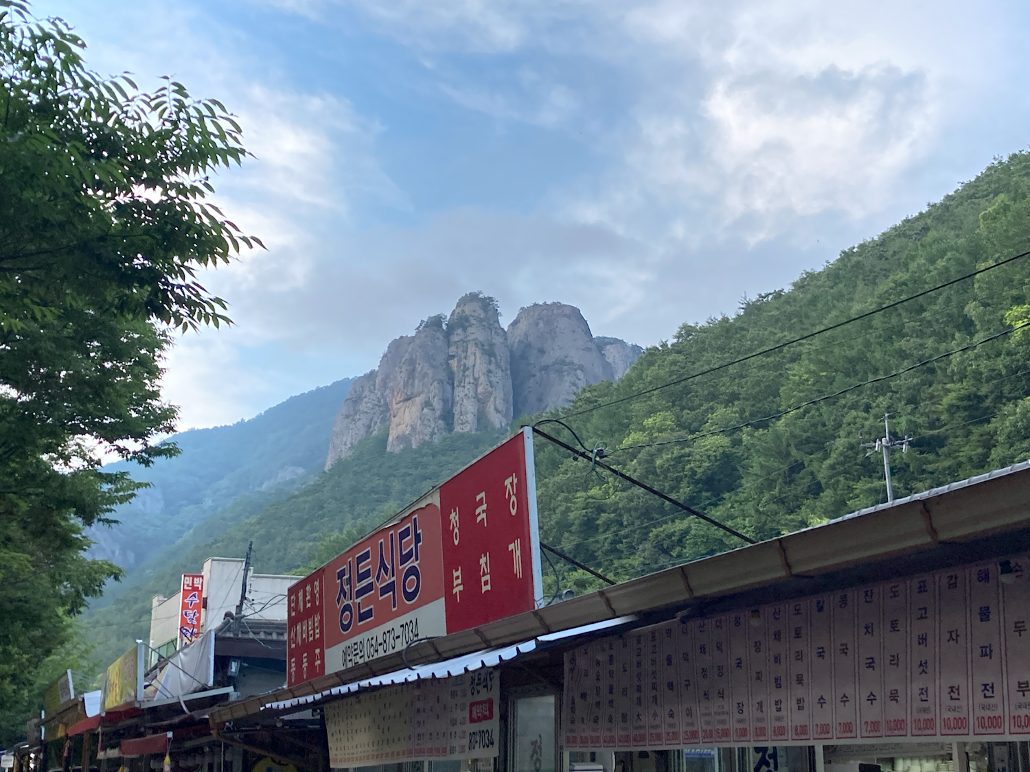I had a brief breakfast at the G Hotel then left to my first mountain stop. Driving into Naeyeonsan national park was very pleasant, especially arriving around 10 am. The weather was cloudy with spots of sun. I had a coffee at a GS25. The Naeyeonsan 12 waterfalls trail starts at Bogyeongsa temple (보경사) and there’s an entrance fee. You walk past a few restaurants and accommodation places before heading onto the trail. The trail itself is clear and mostly even. You follow the river on your left and it soon get’s very picturesque. The water was so clear and the waterfalls start coming a-plenty. I managed to soak one of my feet by slipping on a mossy rock, so switched to alternative shoes to let it dry on my pack.