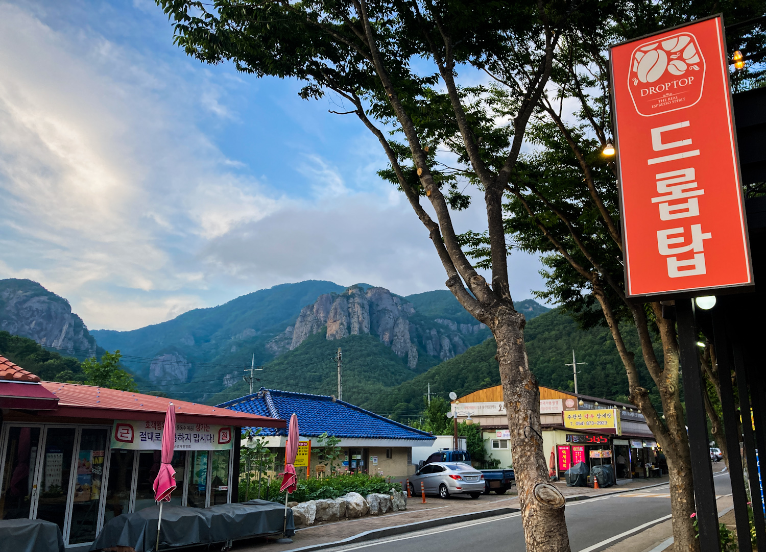 Back at the car, I opted to skip lunch and go straight to the campsite which was about 40 minutes drive. At Sangui campsite I asked to switch camp spots because mine was right in the sunlight without any shade. The staff kindly phoned to HQ to check this was okay and I was able to move a few spots across. This spot was closer to the shower rooms though, so sensitive me noticed the humming sound of something. It was fine in the end though. I got set up then wandered around the area. There were lots of restaurants and a few coffee shops. I saw some interesting looking apple makgeolli to try later. I didn’t pass a restaurant I was ‘feeling’ at that moment though and decided to eat a salad from my supplies, plus a beer and watch something I’d downloaded. There was a camping couple who were playing a movie really loudly and I guess someone had complained. A ranger came over to ask them to turn it down and the guy just flipped out and started screaming at the poor staffer. Then another camper (also wanting them to turn it down) got involved and there was more shouting… Classy …