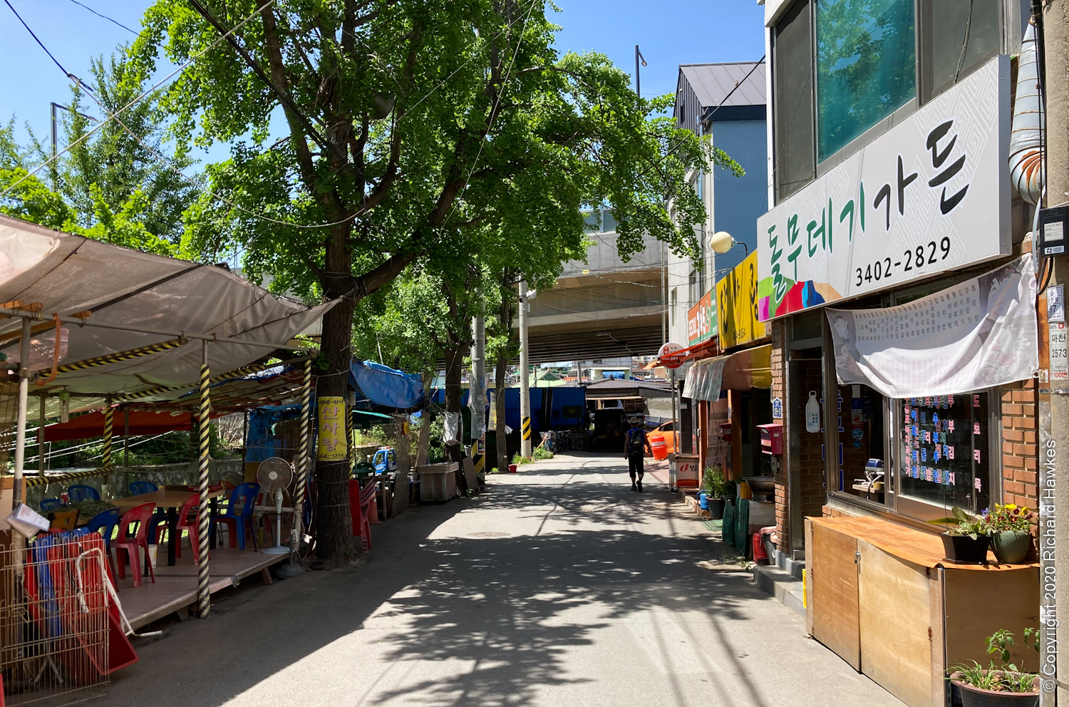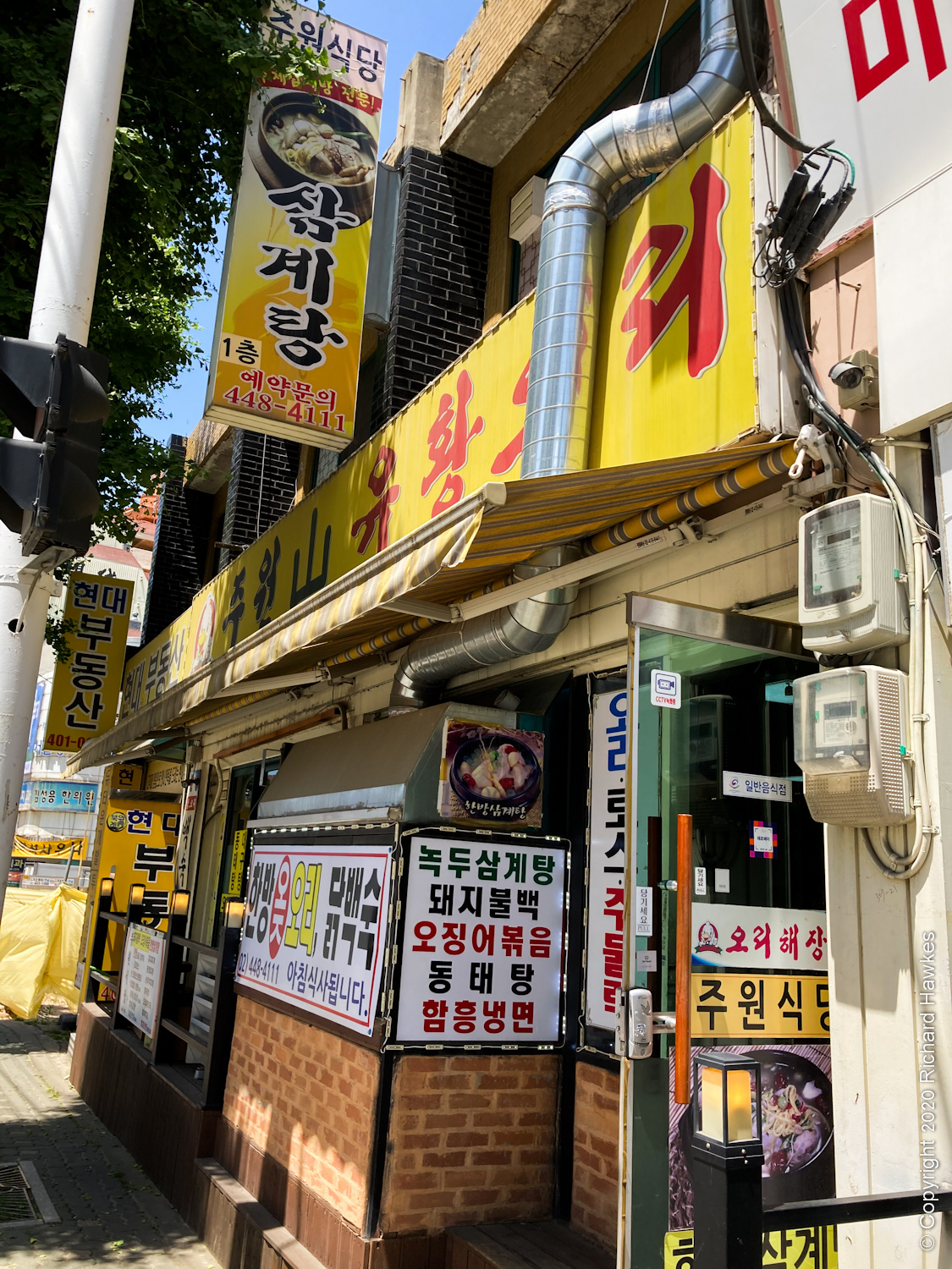 I started at the west side of the mountain at Macheon Station (마천역), the end of Line 5. I grabbed a late, samgyetang (ginseng chicken soup) lunch at a restaurant called 주원산유황오리 and then headed west through the last part of town.