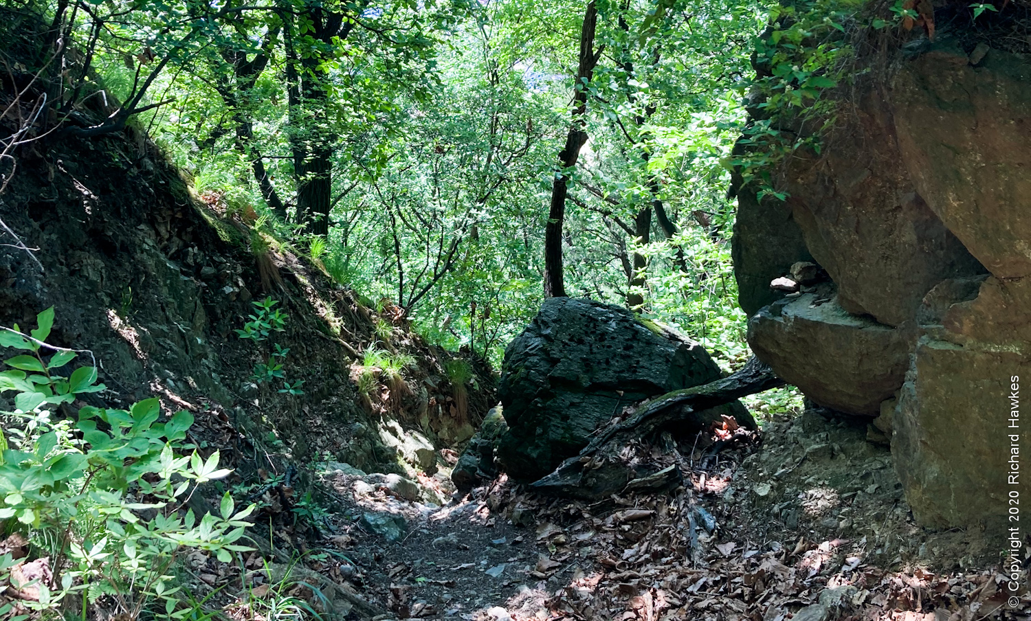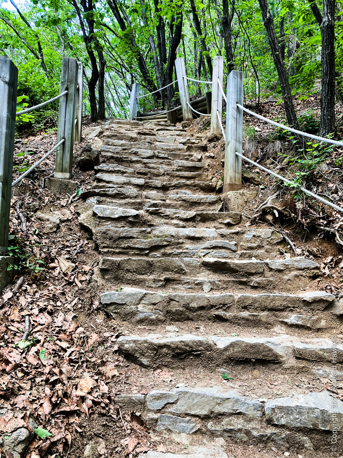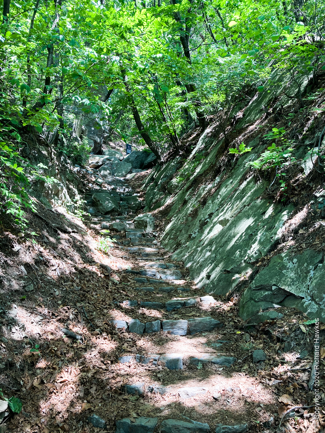 Eventually, I got to the tree line and a little more of an incline and started up the mountain trail. The trees were cooling and the trail seemed well used. There were some nice shady, rocky spots on the way up but nothing that really came out well in my photos. Apparently, there are boars. I don’t really want to come across one.