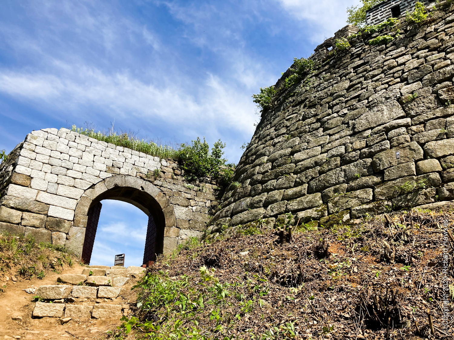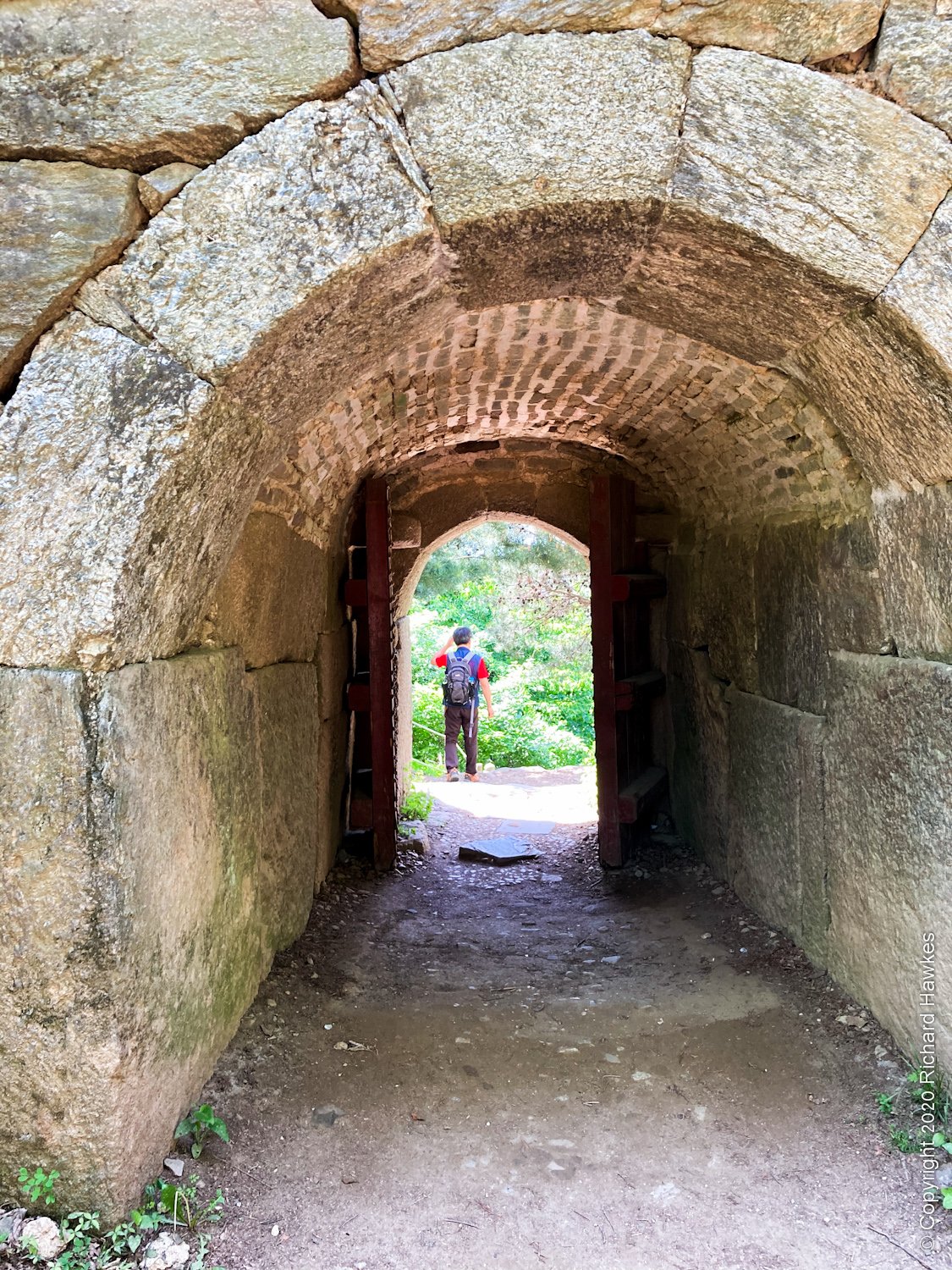 Further on still was the north gate, with some lovely views into the valley. On further, was a secret entrance that lead to the outside of the fortress. I was curios about the actual peak of this mountain, so took a short detour through one of the gates; unfortunately, it didn’t really go to a big peak, just some older trails that probably formed more sections and fortifications, long since vanished.