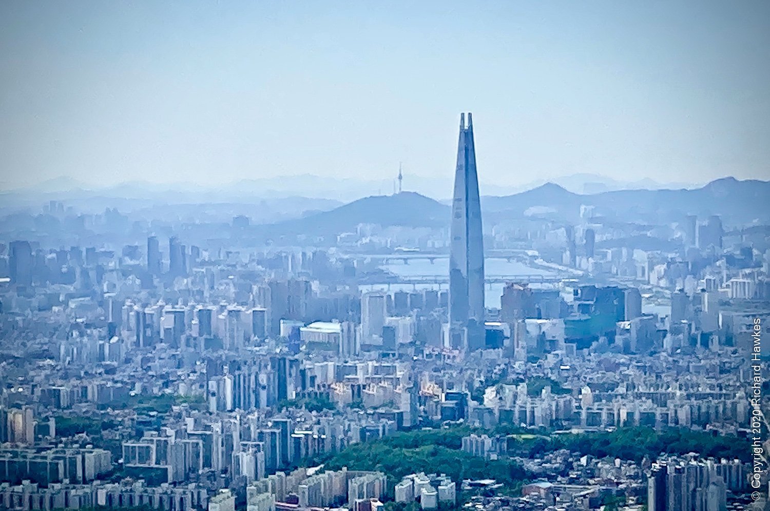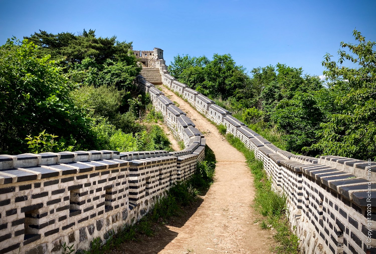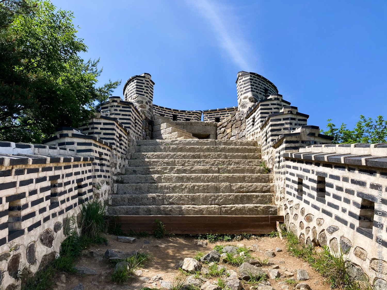 After this, I headed north along the wall where it was quite steep in places. There were good views looking west and north, including a place where you could see the Lotte World Tower and Namsan Seoul N-Tower almost in line with each other.