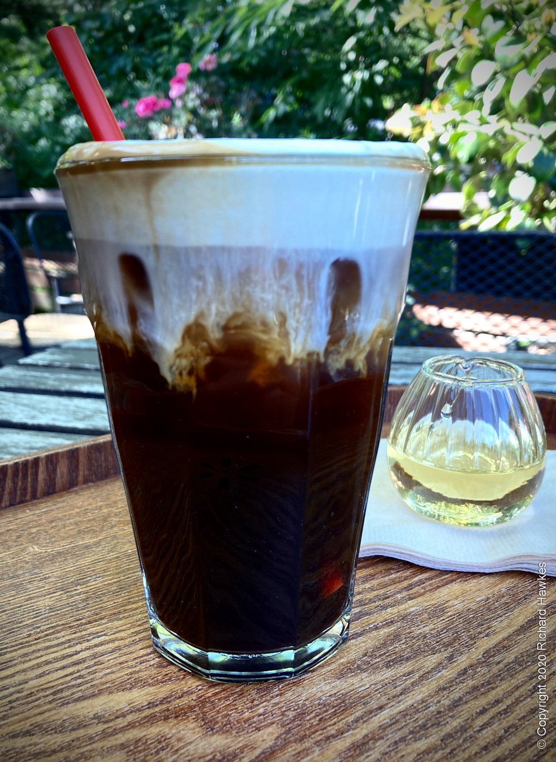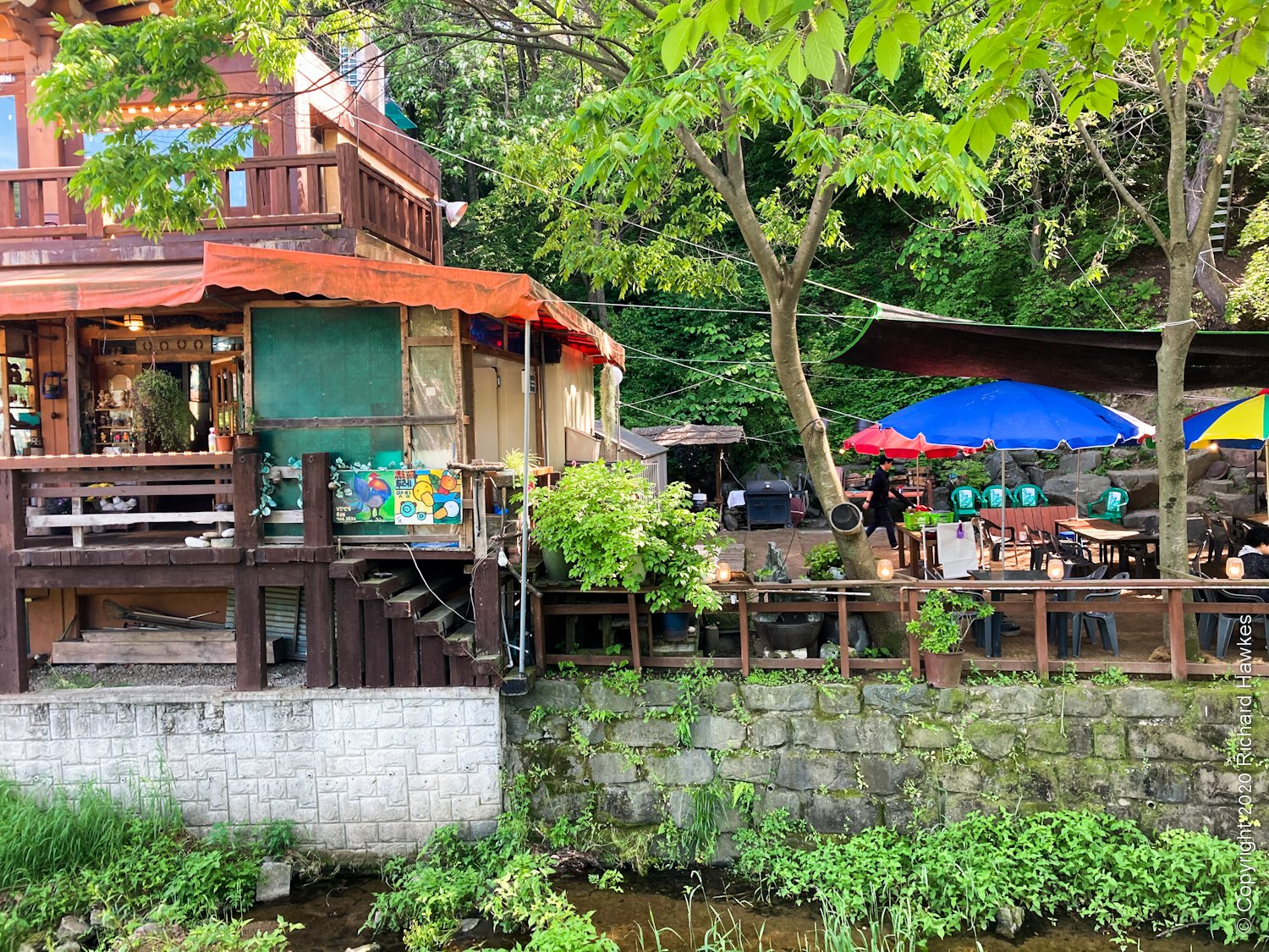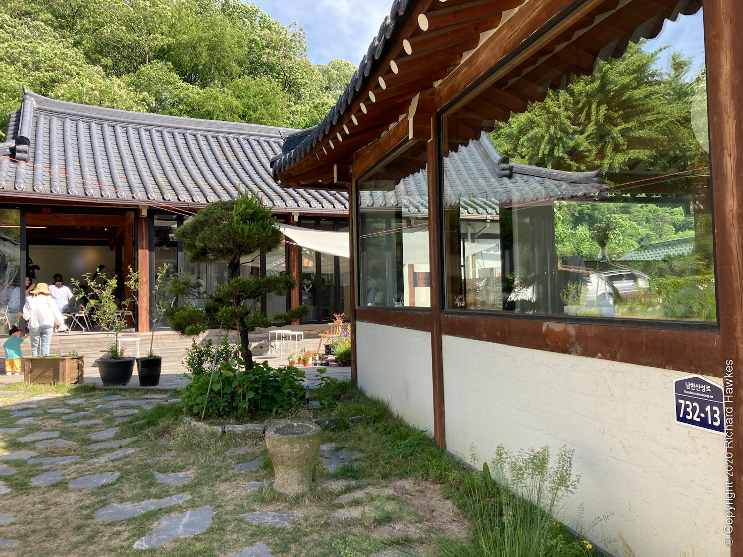 I then went down into the village part of this area to have a look around and get some refreshments. There are quite a few restaurants and coffee shops dotted around, including some along a stream. It seems a few new buildings have been put up since I last came. I found a nice looking coffee place with a terrace called Sanseong Coffee House (산성커피집) and sat with a cold einspanner (Viennese) coffee.