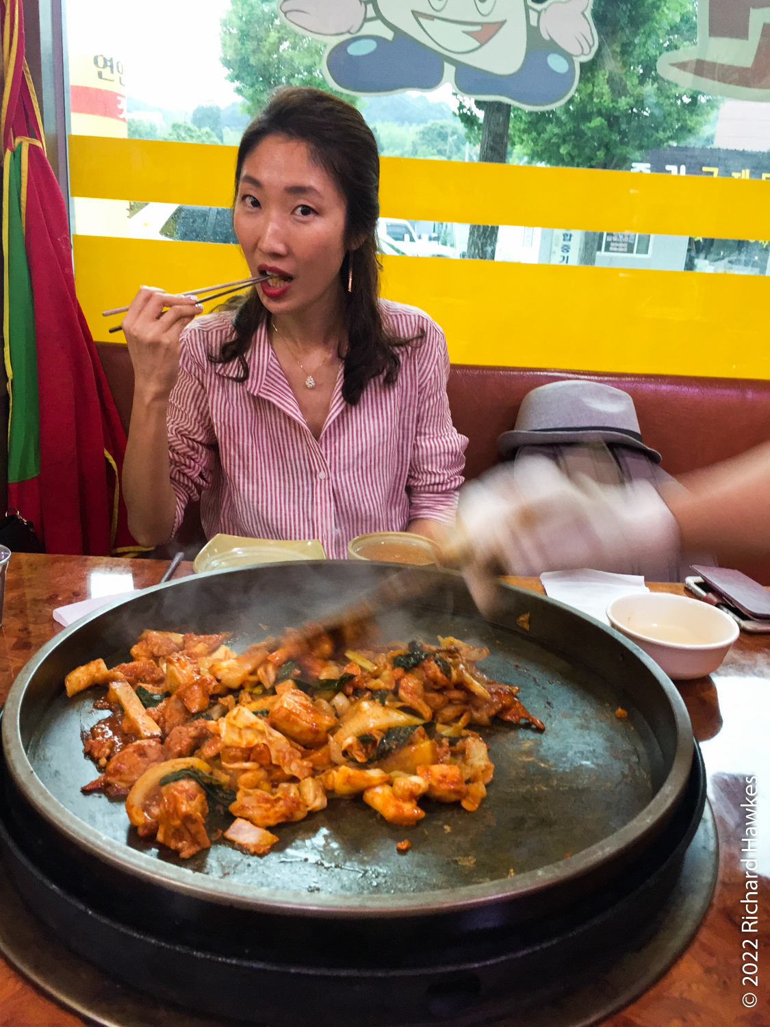 There surrounding area is geared towards the tourist traffic. After we were finished exploring the island, we took a taxi a short way up the main road to a pan grilled chicken (닭갈비) restaurant.