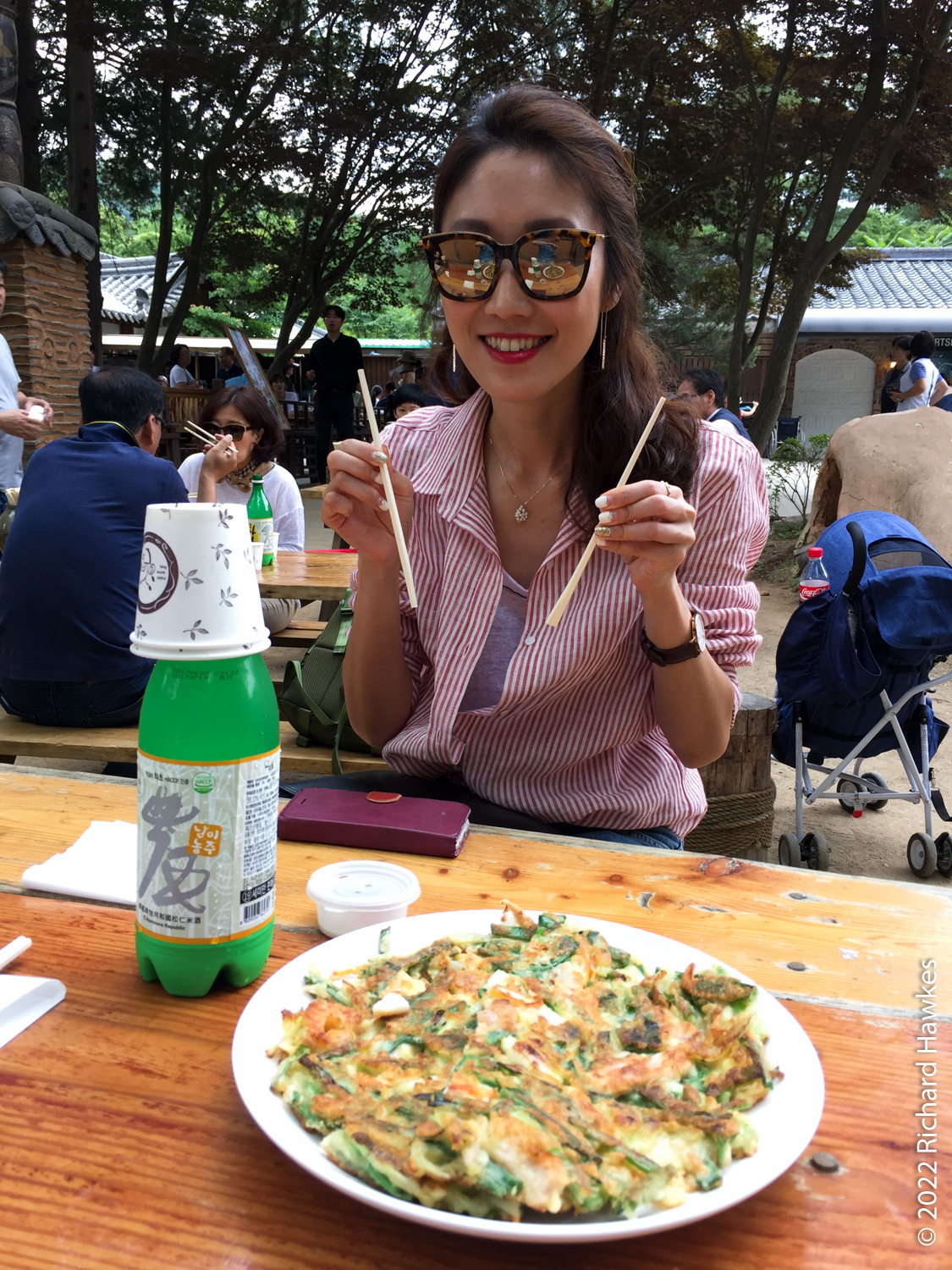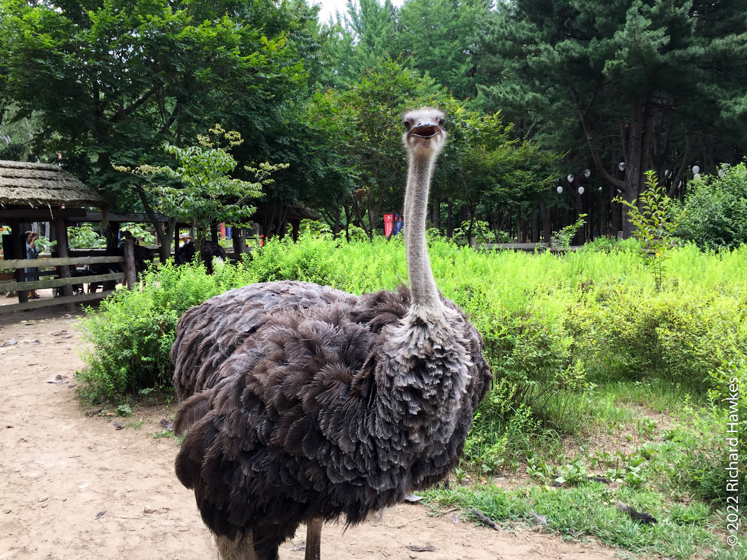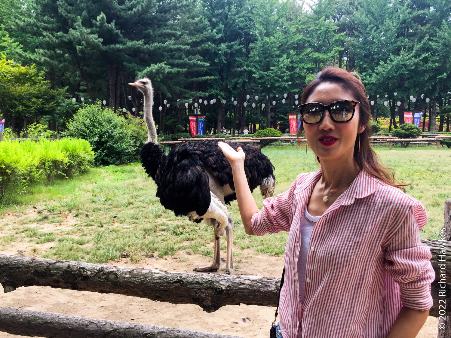 We saw an ostrich then grabbed some Korean pancake (전) and some local makgeolli (막걸리) for lunch. Nice. The island is full of little trails and themed garden areas. There are large areas of grass to sit on to picnic on less damp days. There are also a few art galleries and large sculptures dotted around.