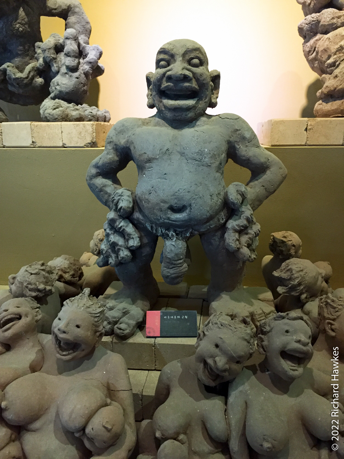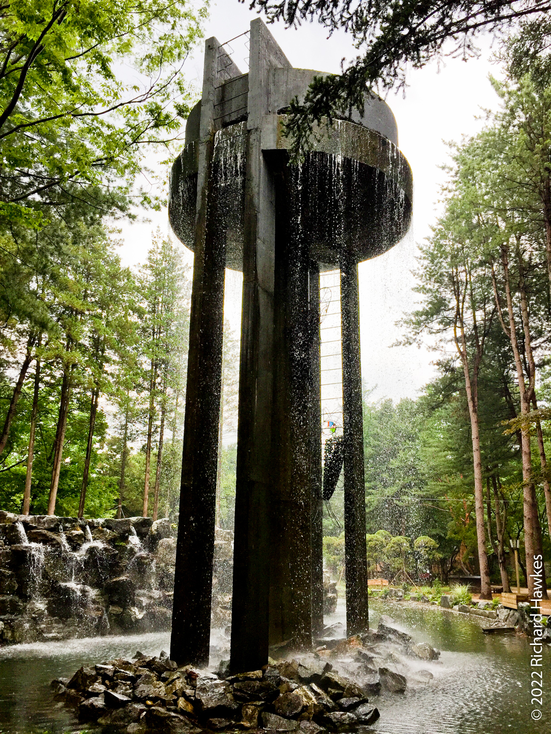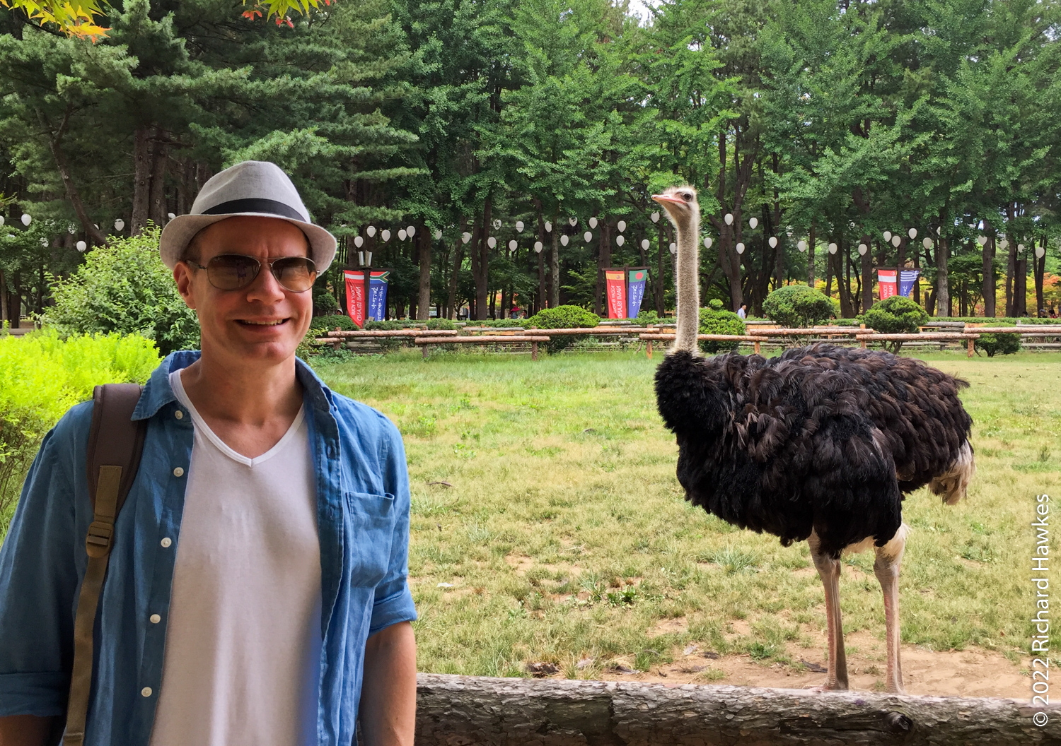 We saw an ostrich then grabbed some Korean pancake (전) and some local makgeolli (막걸리) for lunch. Nice. The island is full of little trails and themed garden areas. There are large areas of grass to sit on to picnic on less damp days. There are also a few art galleries and large sculptures dotted around.