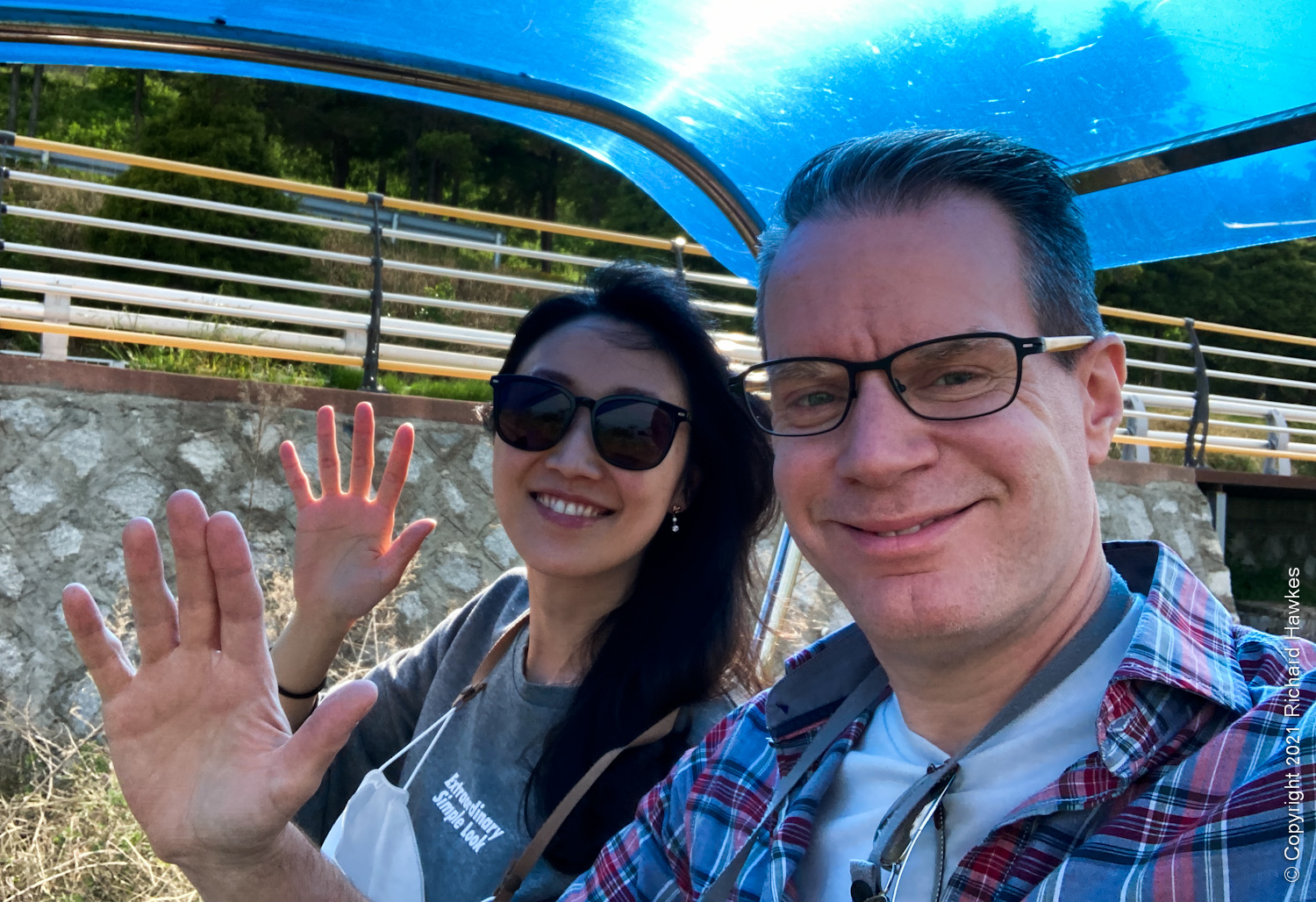 Next was the Yeosu Ocean Rail Bike(여수해양레일바이크). I’ve seen these advertised before; they’re pedal-powered cars that you ride on abandoned rail tracks. It’s not too difficult and fun. This one runs along the coast and goes through a neon filled tunnel. It cost us about 26,000 for two of us.