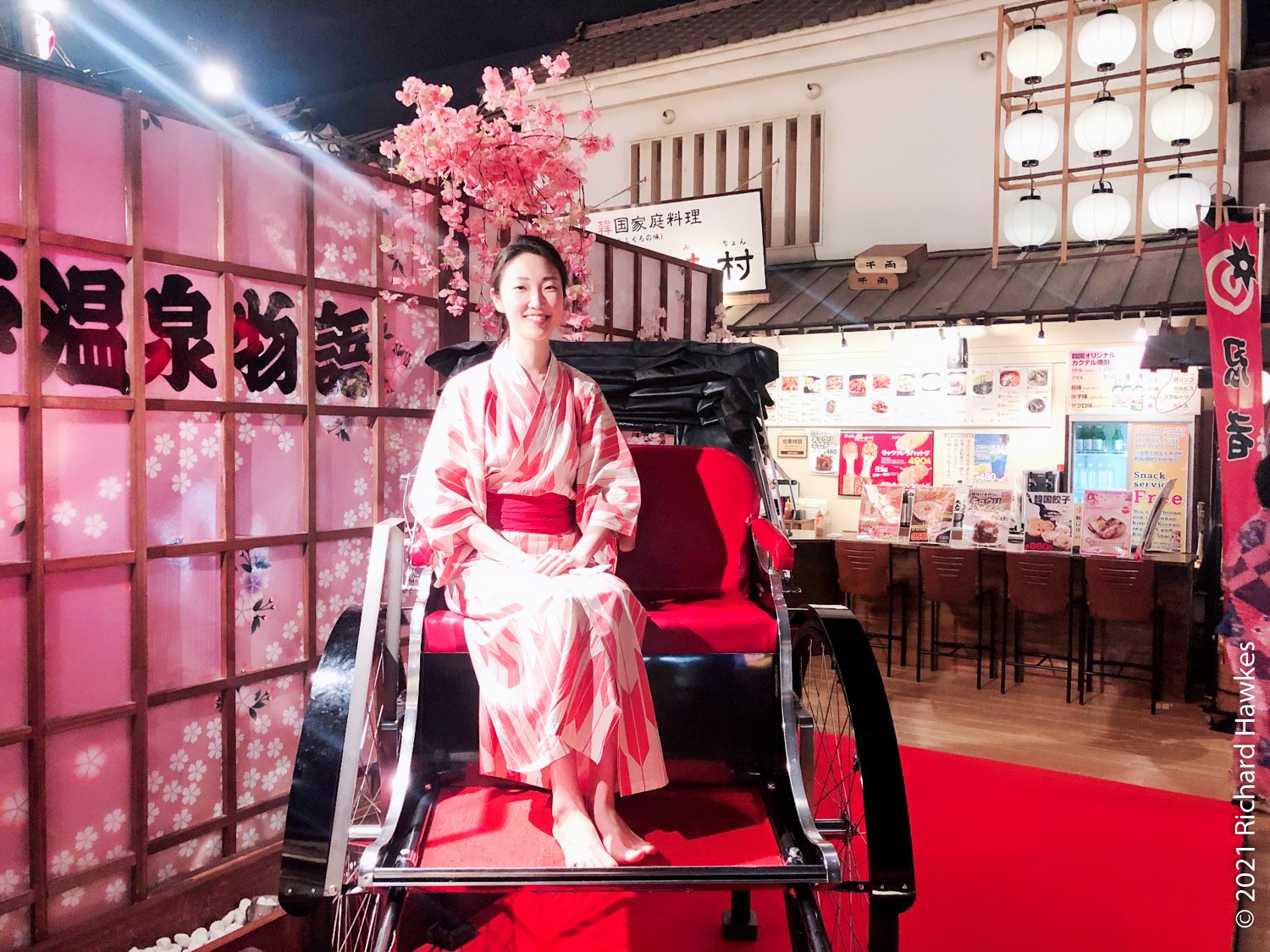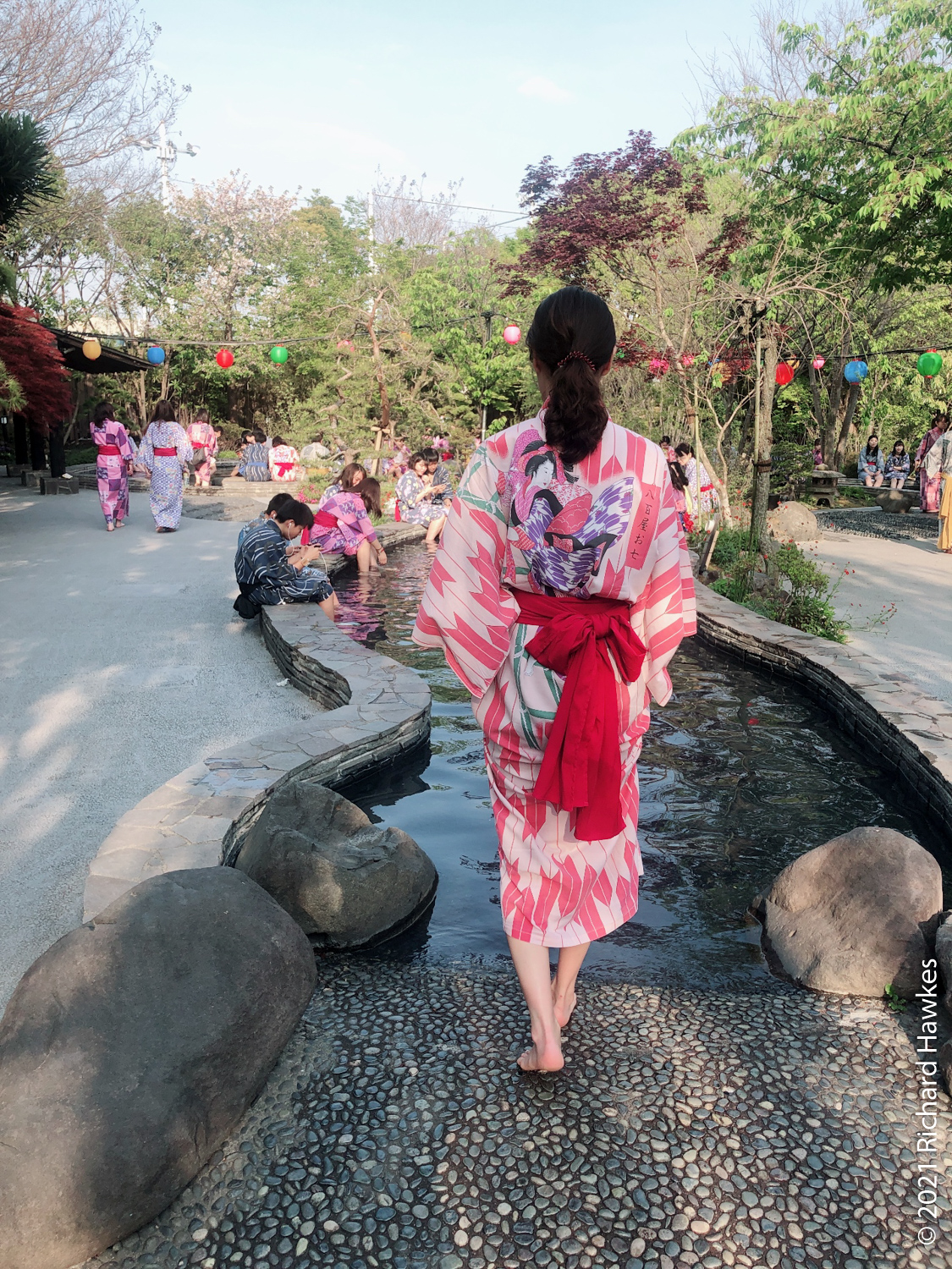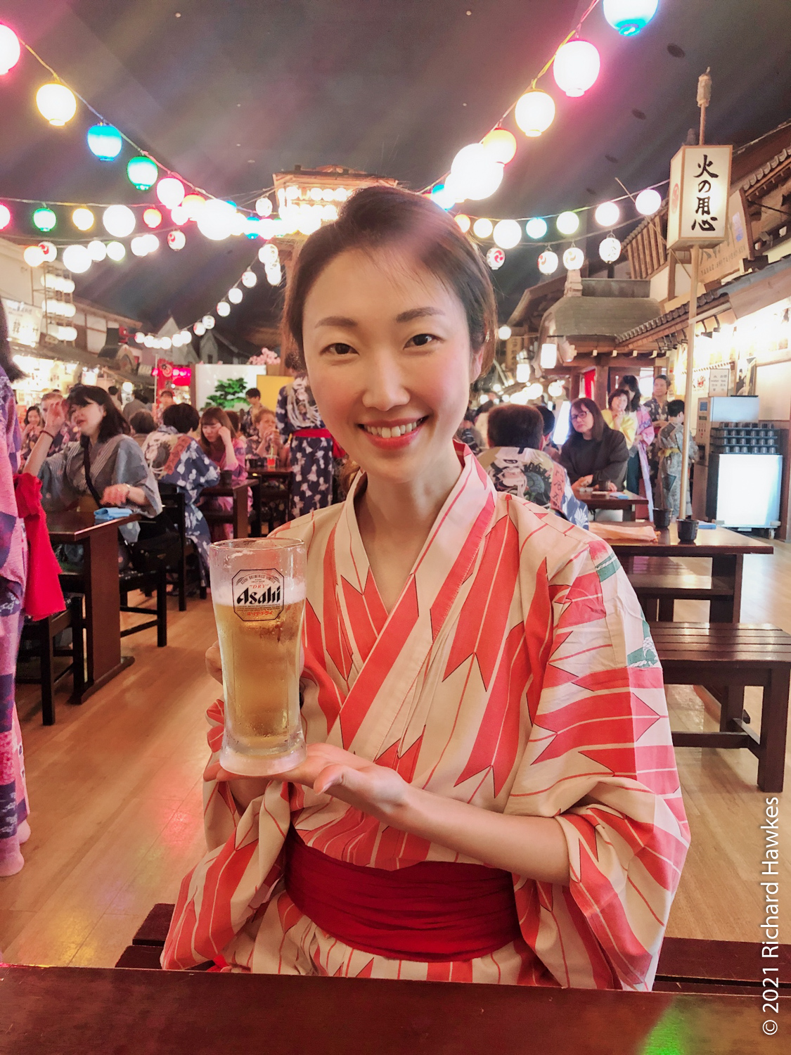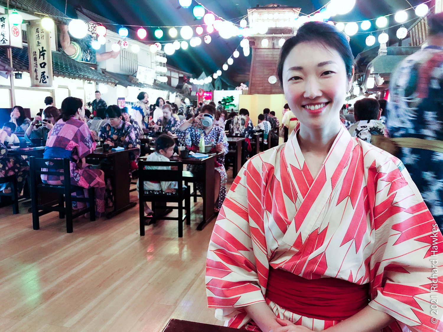 This inside area is made to look like a Japanese village. There are lots of stalls and places to sit that serve food and beer. We did the right thing and got beers. I went to the sauna for a bit (the naked area, men or women only) which was refreshing. There was one other white person in there and, of course, we locked eyes for a second; always good to bond when you’re naked in a sauna…