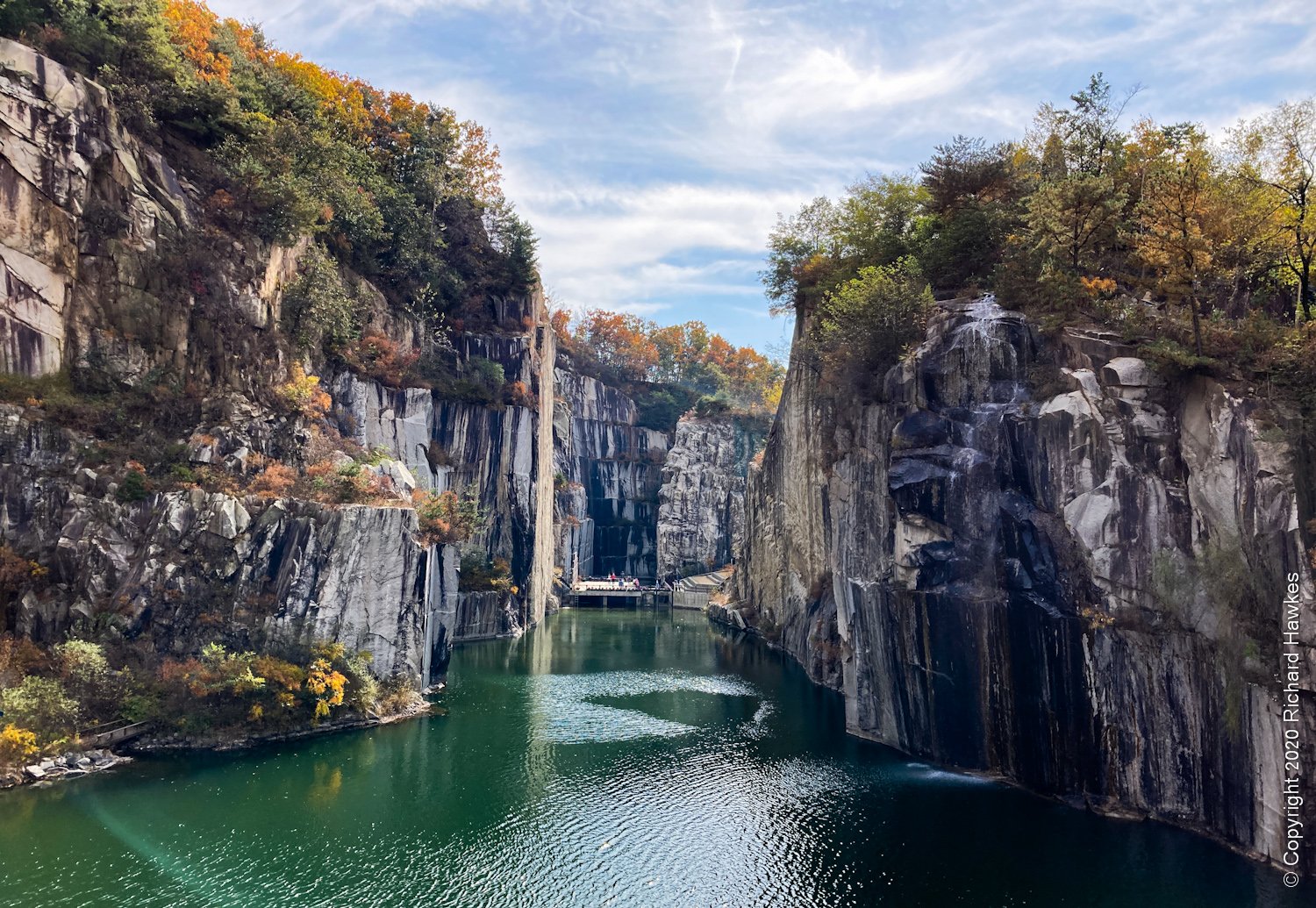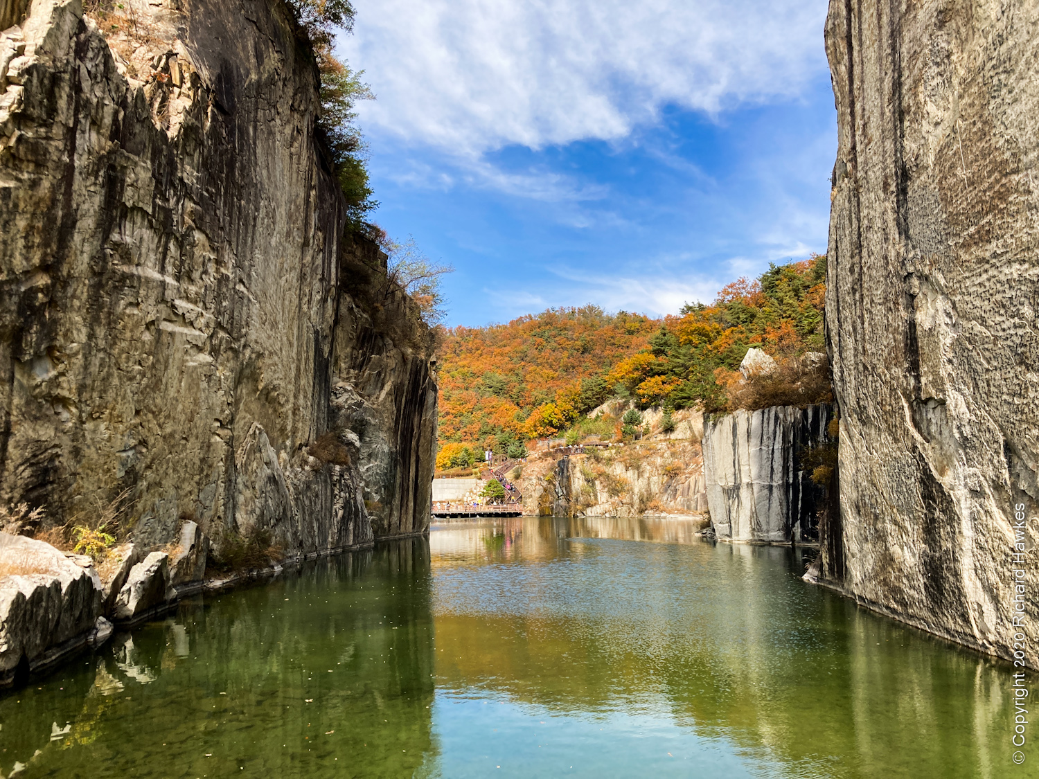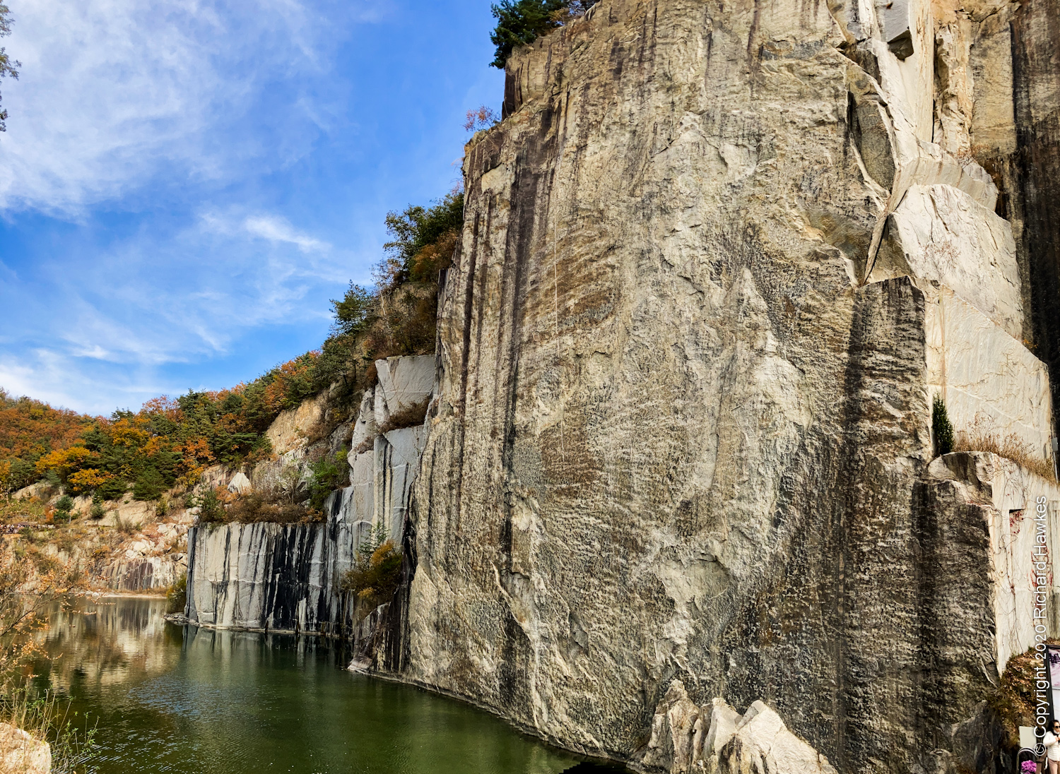 Next, we wondered down to the cliff faces. There was a stage set into bottom of one of the cliffs and a body of water. It looked pretty spectacular. I think is was a picture of this that piqued my interest in coming here.
