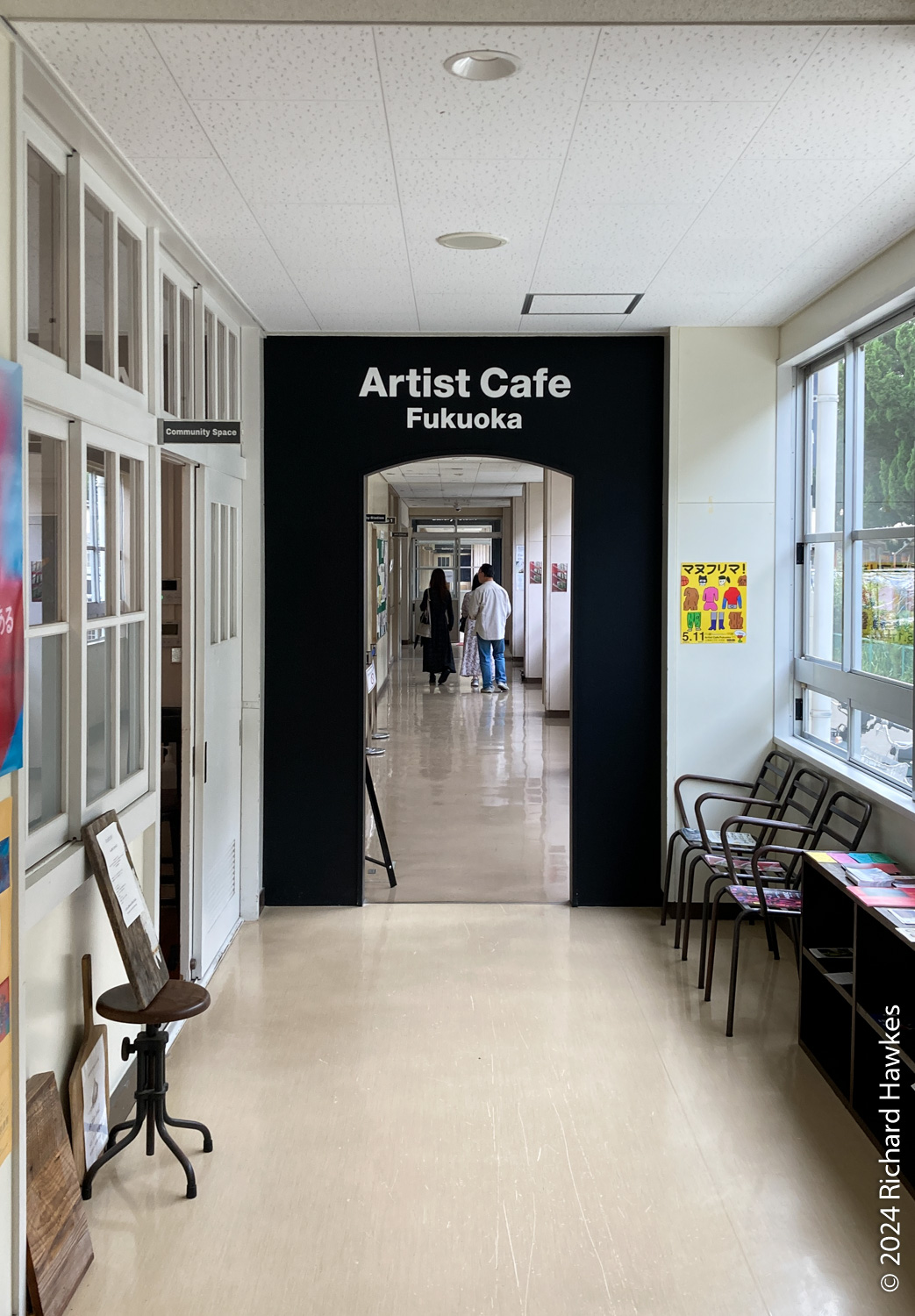 We took the subway west to visit Maizuru Park, Peony Garden, Sannomaru Plaza, and Ohori Park. We looked at some turtles in a pond and wandered around the flower garden. Then we looked for a cafe and found the Artist Cafe, Fukuoka; it seemed to be a community art centre and in the coffee shop were some people painting in a group. We got some ice coffee and tea and sat relaxing and looking at the art on display. The centre seemed to be in an old school and the cafe is probably called ‘Teateto'(?).