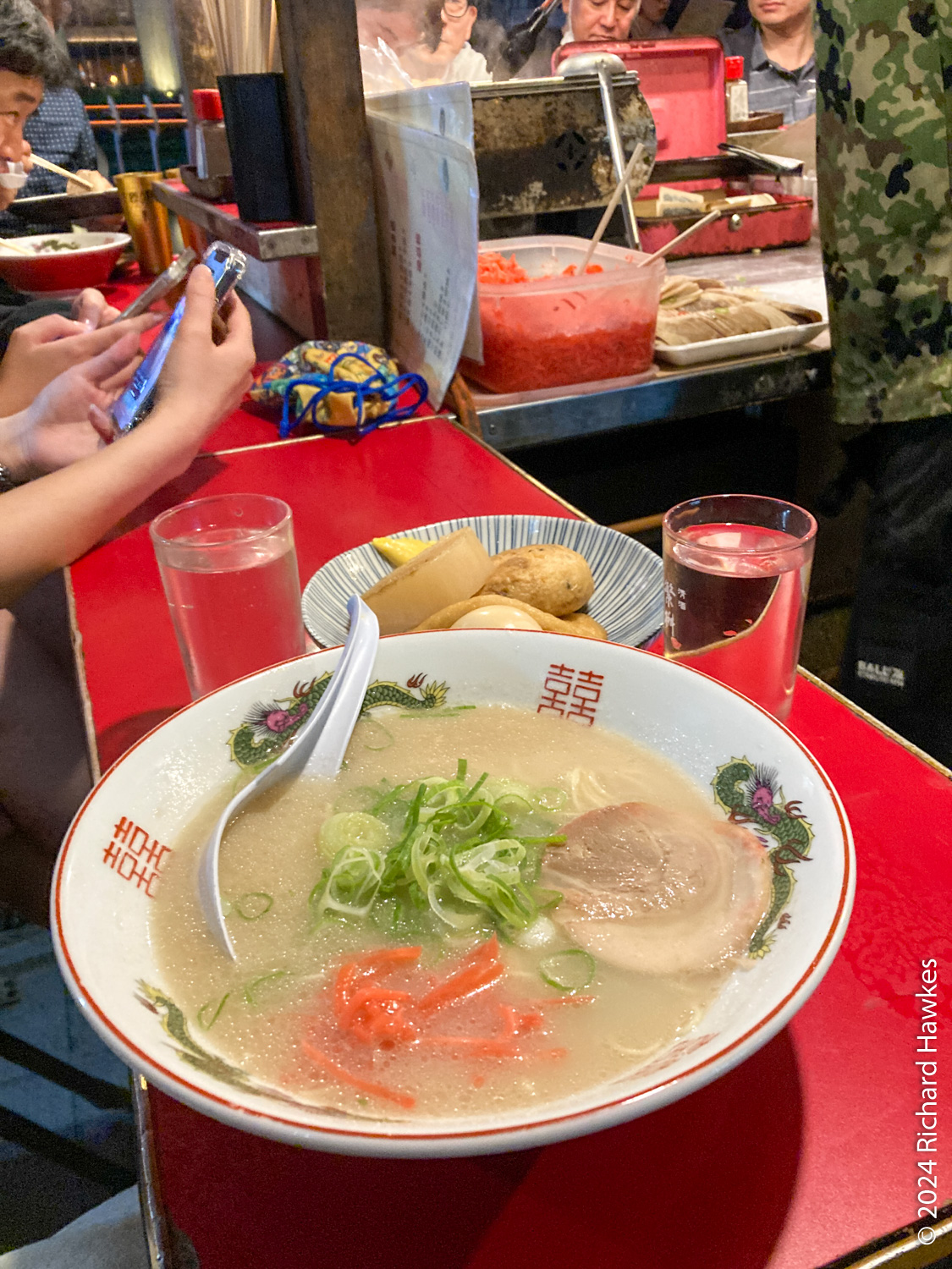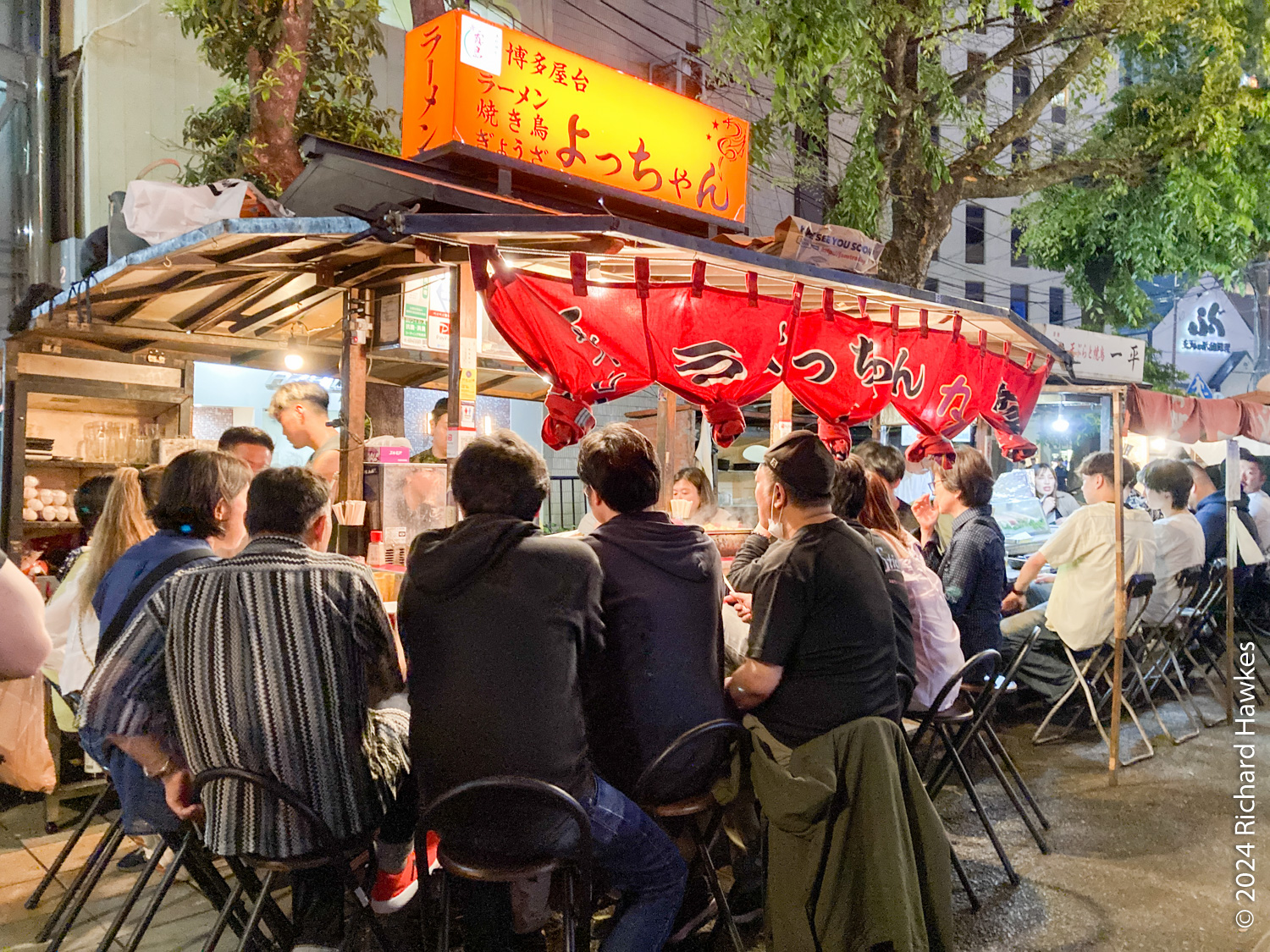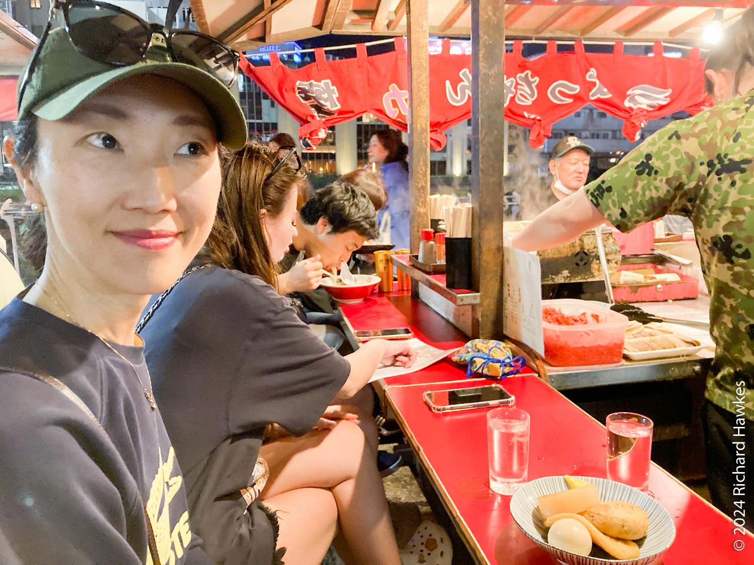We, (I!) was specifically looking for yatai, the traditional street food stalls popular in this area. We found the area soon enough, and it was very busy! We had to wait a while before some seats became available. Some of the places only had Japanese language menus, a few had English, too. There seemed to be a mixture of tourists and Fukuoka locals, though I think the tourists were in larger numbers! The place that we eventually went to sat us kind of at the rear alongside the ‘kitchen’. We got ramen, sake, and some odeng. All pretty good. After that, we went to a nearby bridge to drink a can of beer while listening to some street musicians. Then we made our way slowly back to the subway station before heading to the hotel. A good first day, I think!