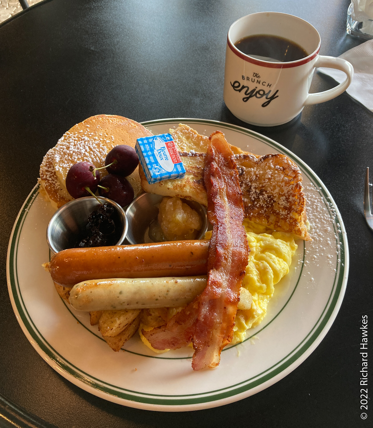 I went to the Sijang Cheongnyeon (남부시장청년몰) to the upper floor / rooftop and found RiRi88 Brunch (리리88) for a western style brunch. The market area, also known as Youth Market, housed crafts shops, boutiques and a few restaurants and coffee shop. It reminded me a little of Sewoon Plaza, aka Maker City (세운상가) in Jongno, Seoul. There weren’t a lot of people about and I was the only customer. I sat by the window and ordered coffee and a bacon breakfast.