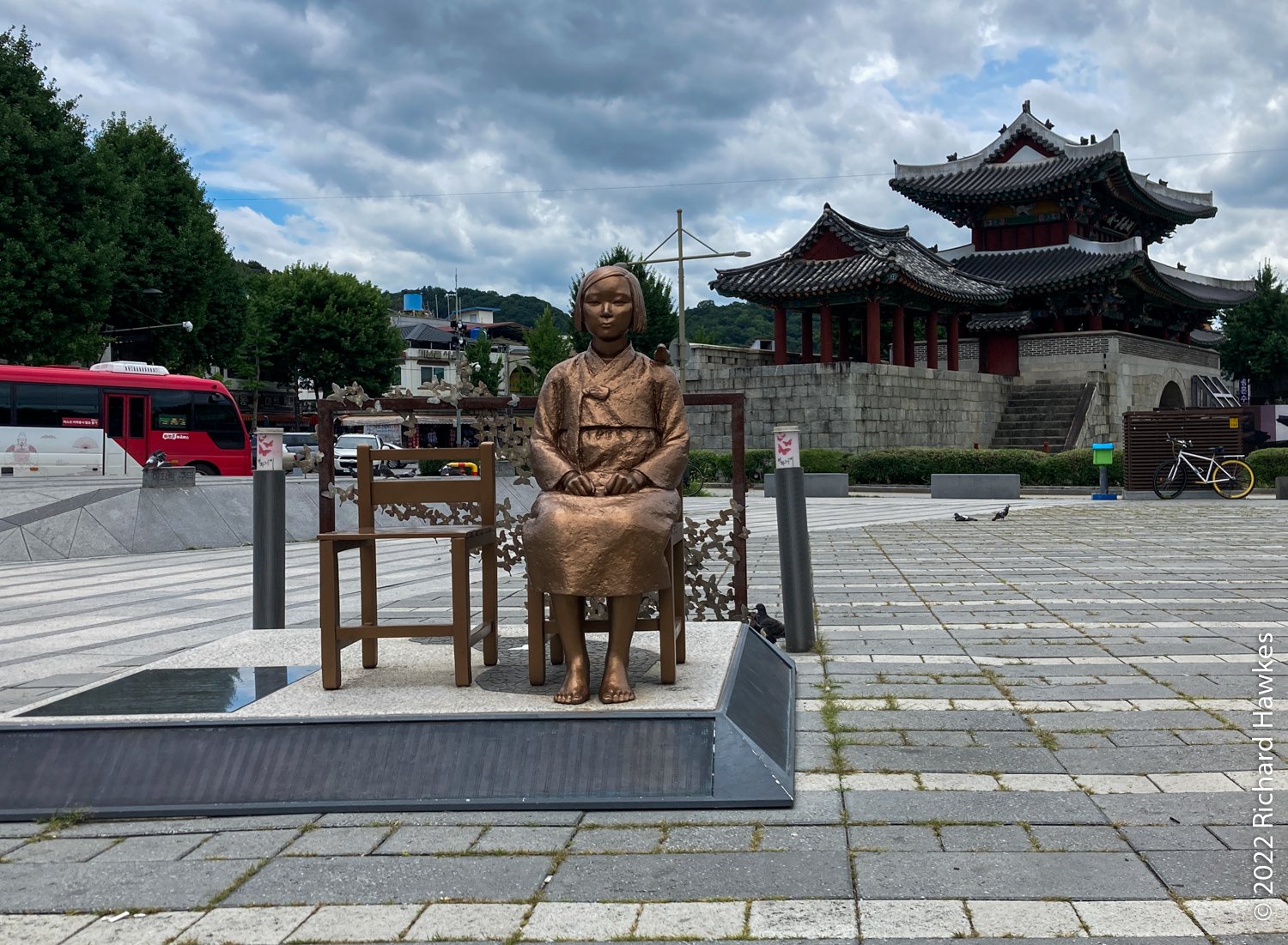Near the market is Pungnammun Gate (풍남문) which now forms the centre of a roundabout. It has some historical significance but I didn’t stop to read about it. There’s no access inside either. There’s a statue representing the plight of the comfort women in the plaza area, along with some art sculptures.