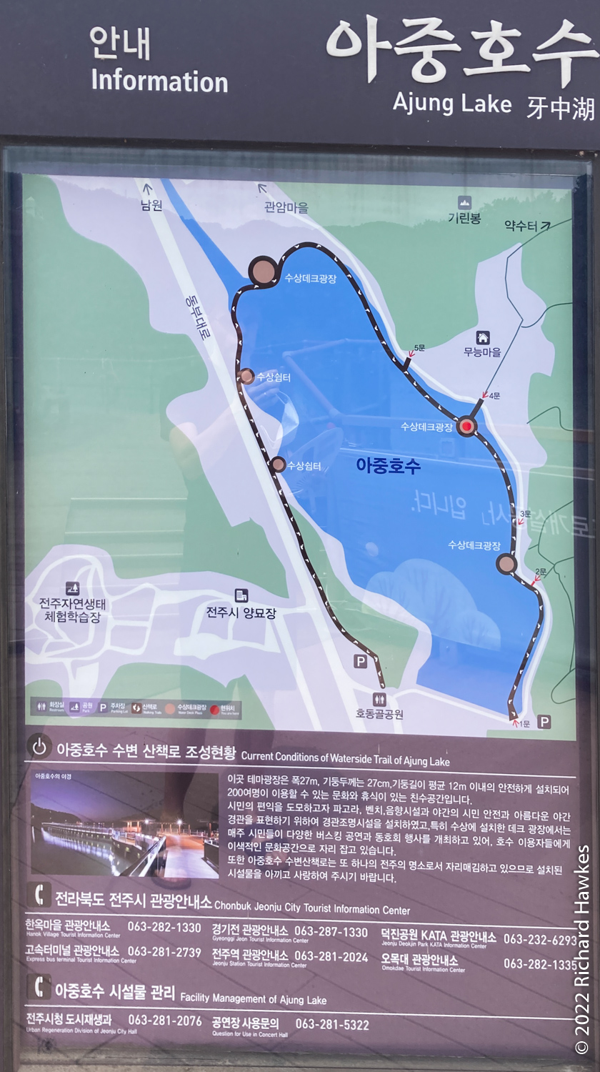 Exploring west of the Jeonju hanok village, then north east by bus to Ajung Lake and had a dinner of pajeon.