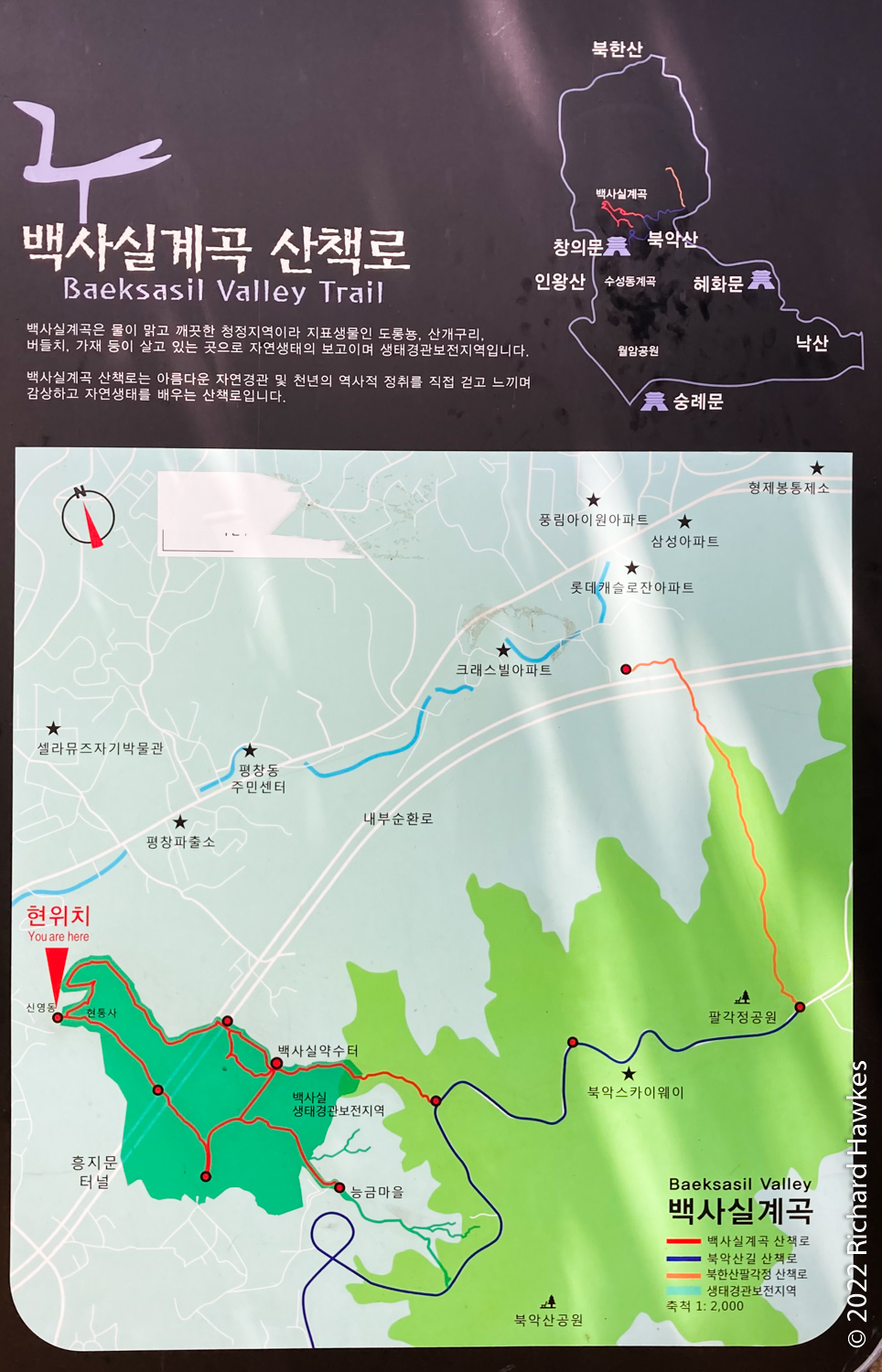 There are a few walking options from there so I walked the trail that seemed to take me the most eastwards towards where I knew the coffee shop was. It’s mainly along a stream and all forested. Towards the end are small pieces of farmland. After that are some houses which lead to a small road that goes up to a main road. I followed my Naver Map app through some lovely houses in the hills of Buam-dong; it seems like a really nice place to live.