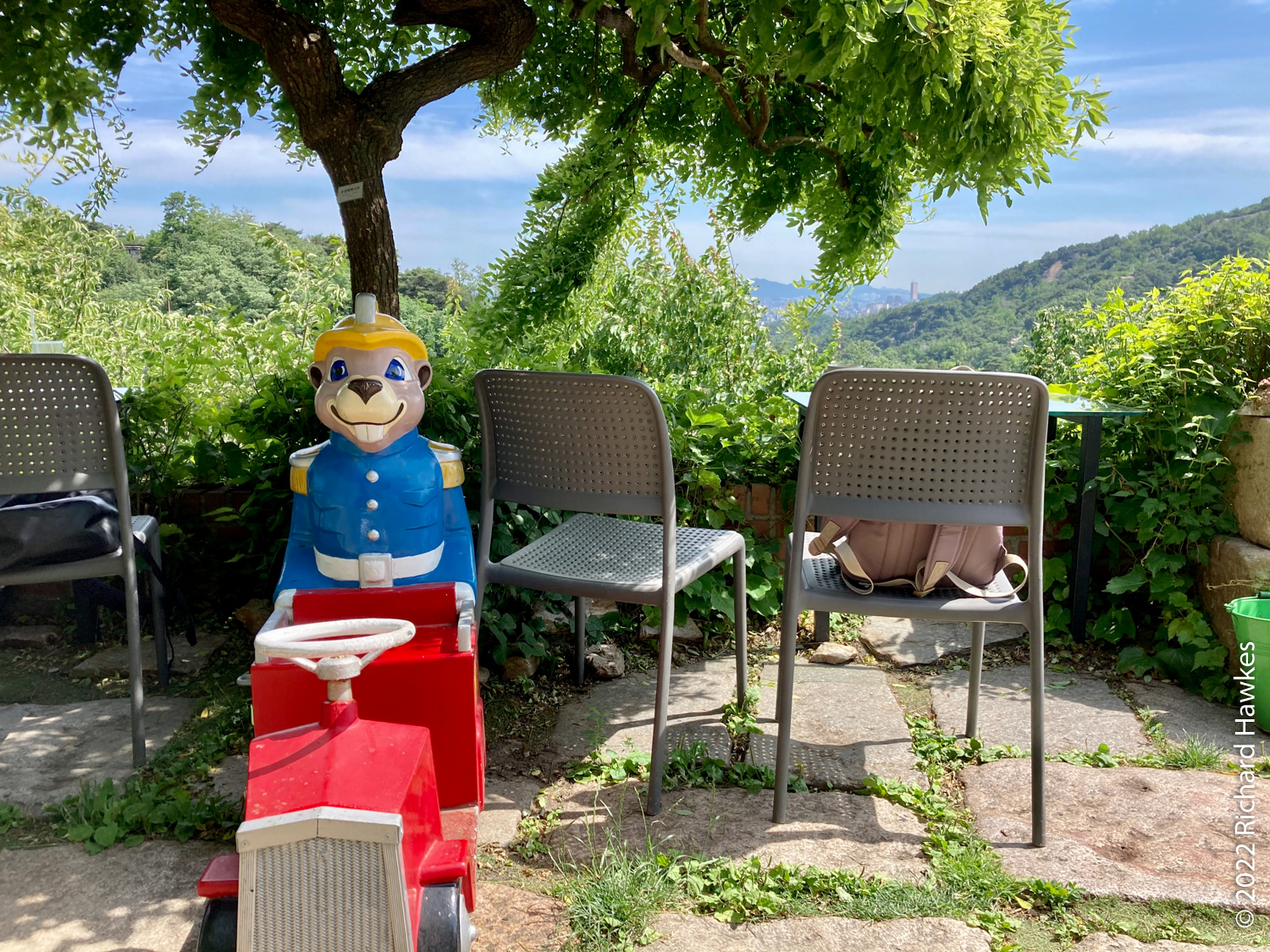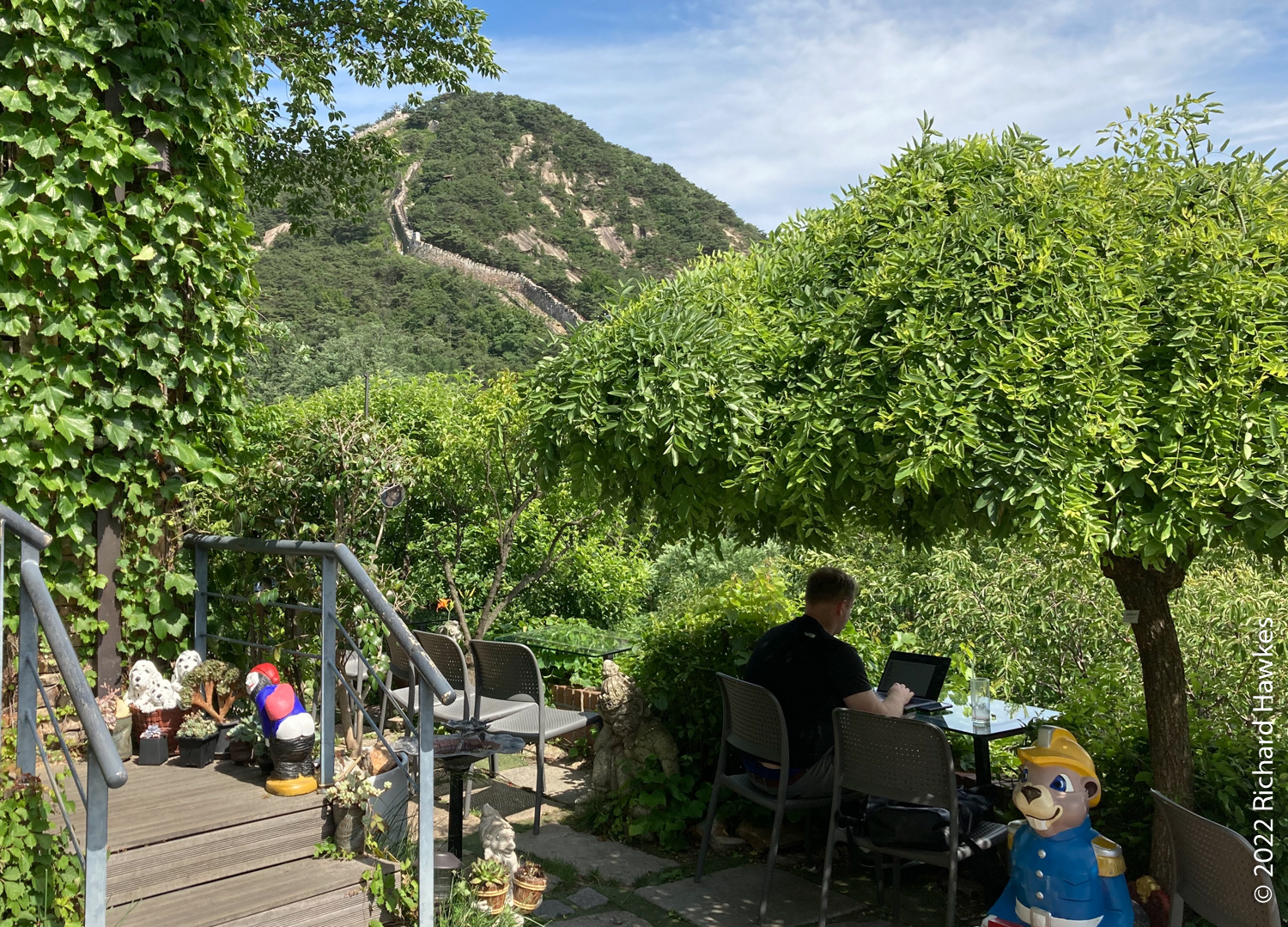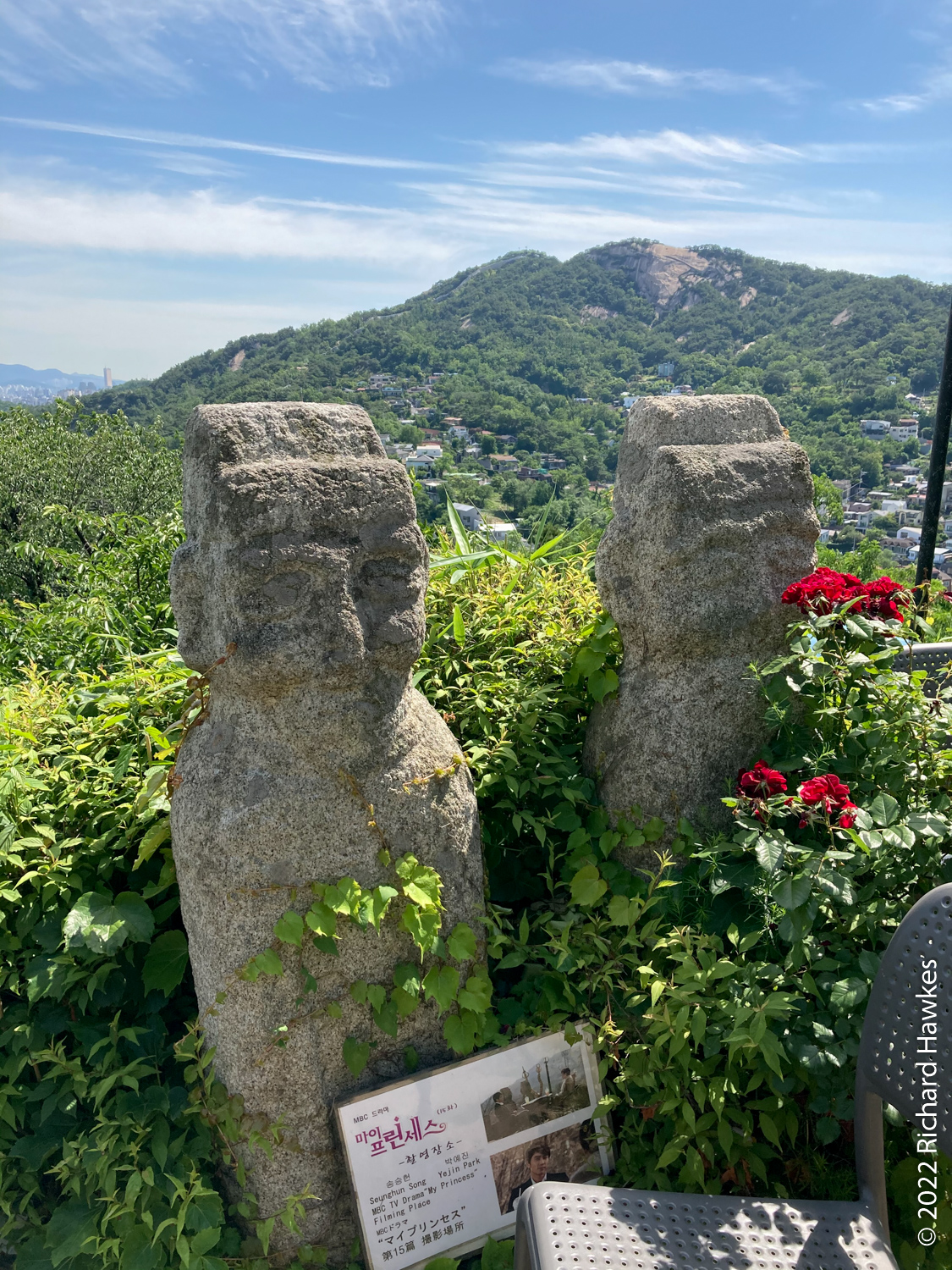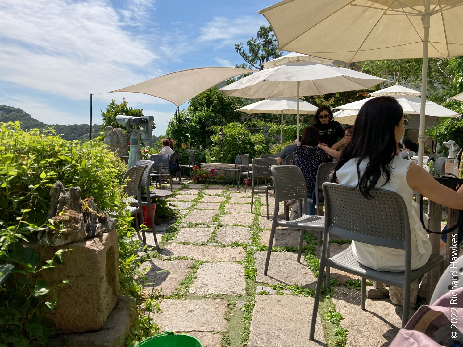 The entrance to Sangmotoongi has a yellow VW Beetle parked out front. For some reason I can’t find photos of it… It’s has an interesting interior with a few floors with nooks for sitting in and lots of windows. There’s a small terrace on the top floor. The main terrace is the garden area down some steps from the coffee counter. From there you can sit and can see the slopes of Bugaksan (북악산) and the city wall, as well as the village below. Walking along the wall up Bugaksan is a nice workout if you fancy it! I sat reading in the shade of a tree.