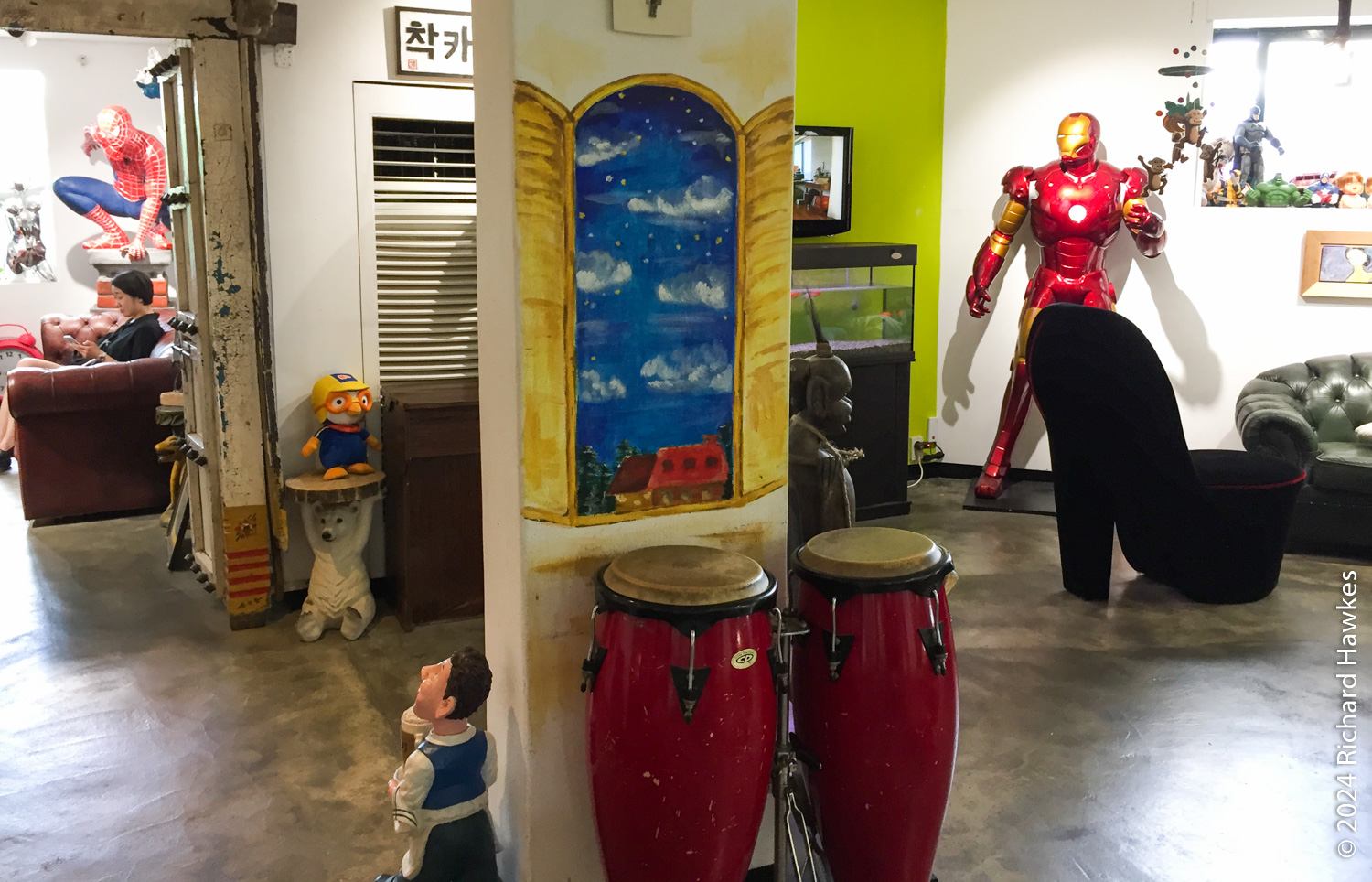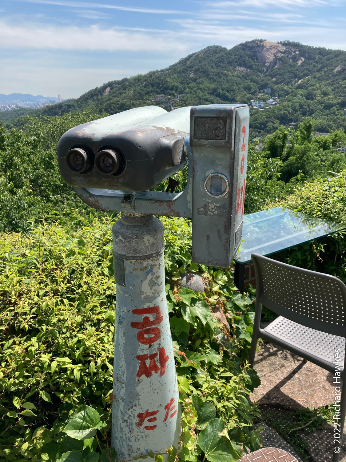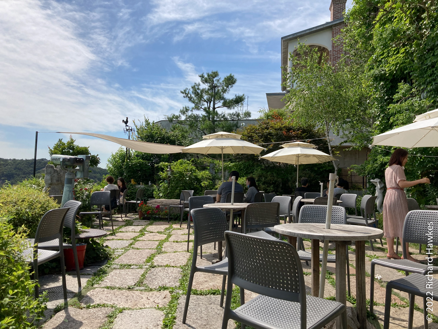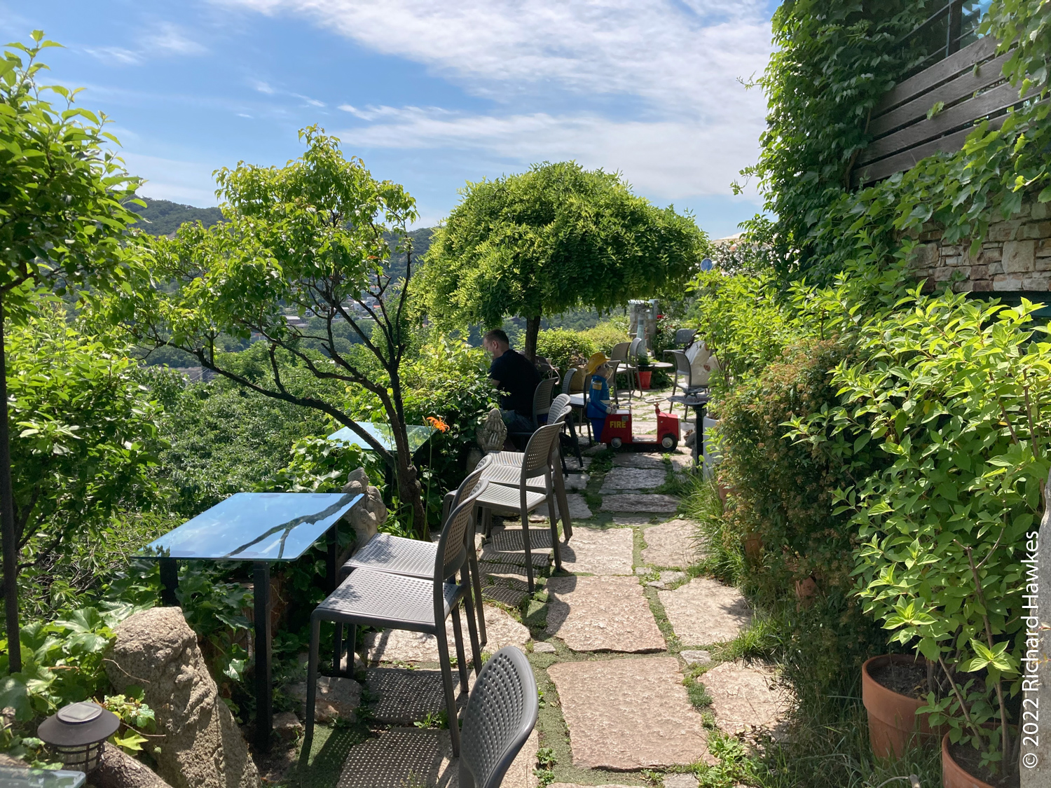 The entrance to Sangmotoongi has a yellow VW Beetle parked out front. For some reason I can’t find photos of it… It’s has an interesting interior with a few floors with nooks for sitting in and lots of windows. There’s a small terrace on the top floor. The main terrace is the garden area down some steps from the coffee counter. From there you can sit and can see the slopes of Bugaksan (북악산) and the city wall, as well as the village below. Walking along the wall up Bugaksan is a nice workout if you fancy it! I sat reading in the shade of a tree.