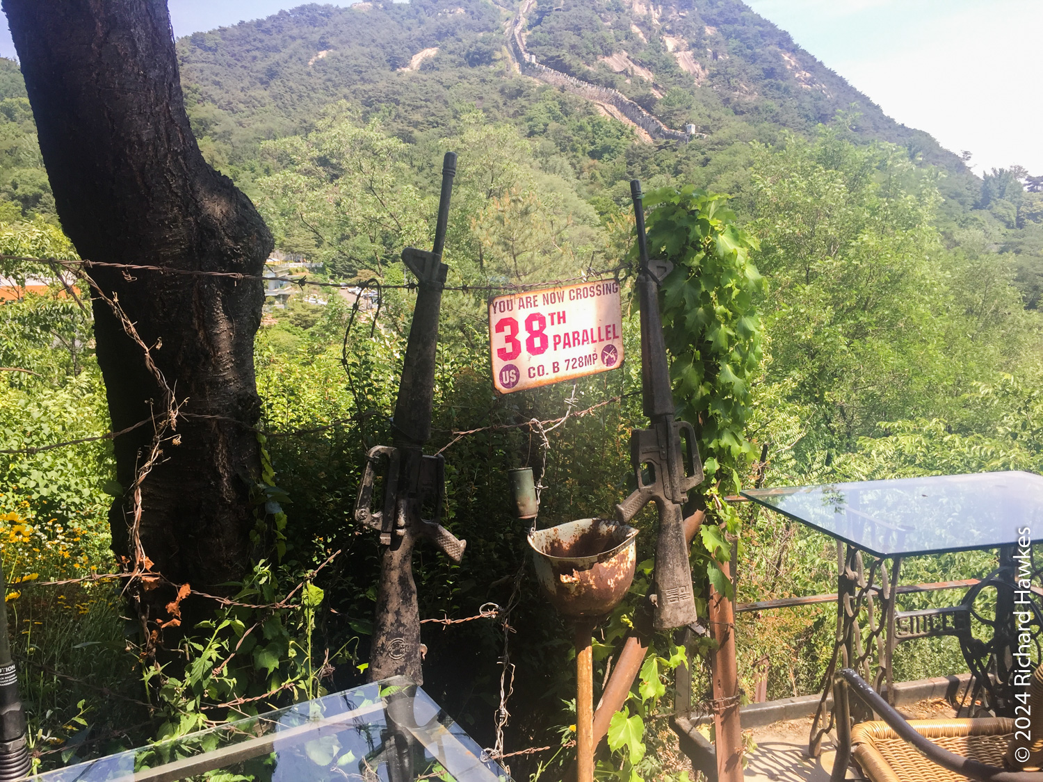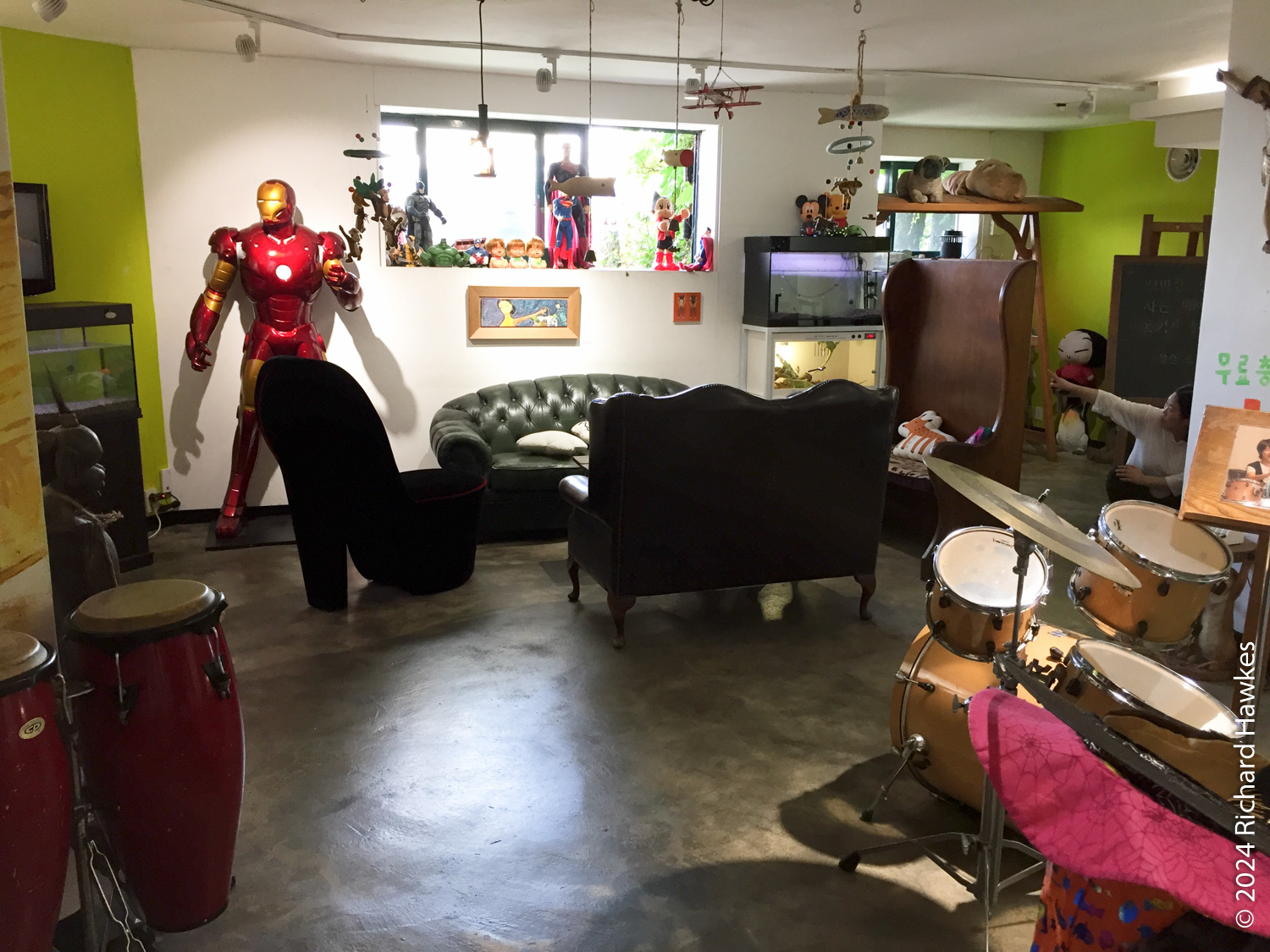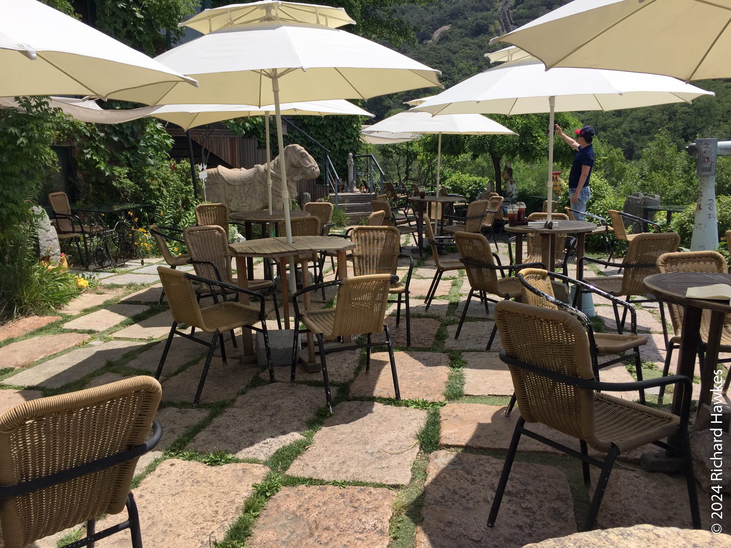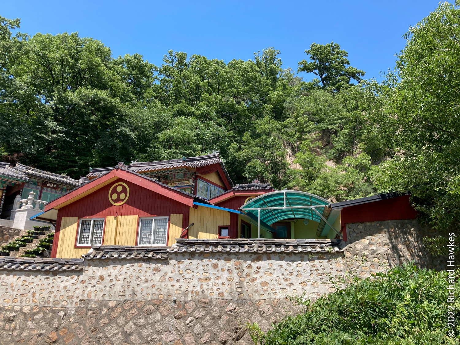 The entrance to Sangmotoongi has a yellow VW Beetle parked out front. For some reason I can’t find photos of it… It’s has an interesting interior with a few floors with nooks for sitting in and lots of windows. There’s a small terrace on the top floor. The main terrace is the garden area down some steps from the coffee counter. From there you can sit and can see the slopes of Bugaksan (북악산) and the city wall, as well as the village below. Walking along the wall up Bugaksan is a nice workout if you fancy it! I sat reading in the shade of a tree.
