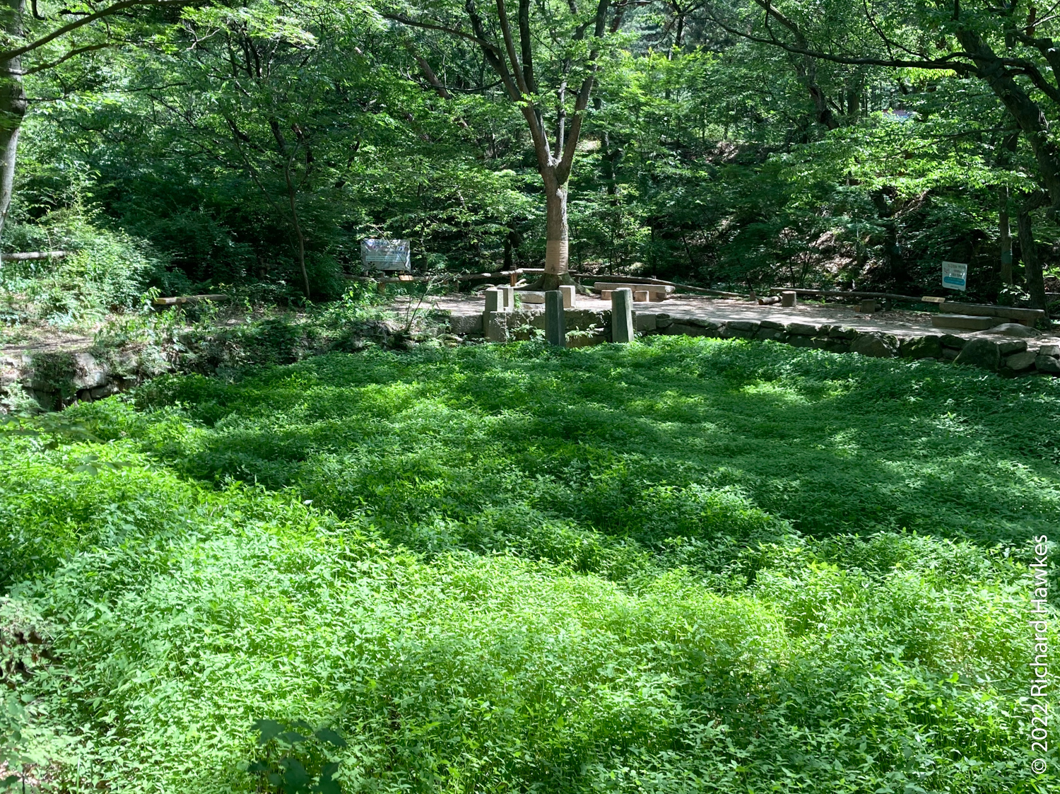 I started my day with a small hike along the Baeksasil Valley trail (백사실계곡) in Buam-dong. I started near Segeomjeong Pavillion (세검정) which is next to a stream and bridge. Nearby, I bought a kimbab for a picnic. Then I threaded my way through a few back streets and onto the trail. You’ll pass a small temple over a stream called Hyeontongsa Temple (현통사). From there you keep heading up into the forest. Along the way in a clearing is the remains of a pond and the foundations of a country residence of some historical figures! It’s called the Baekseokdongcheon Ruins (백석동천 유적). It’s a peaceful spot for a picnic.