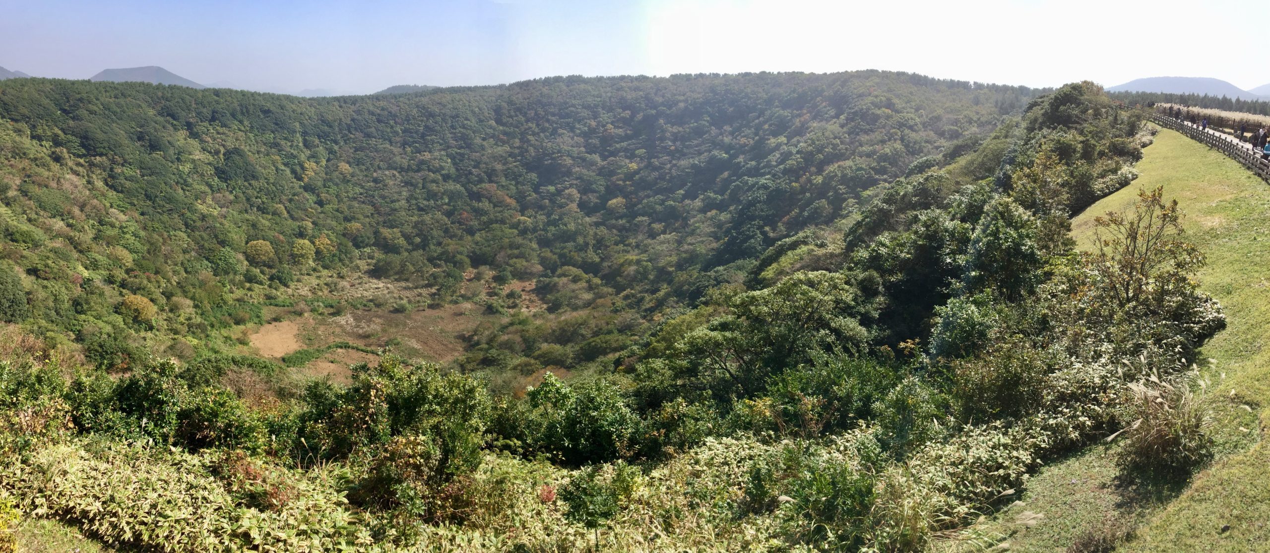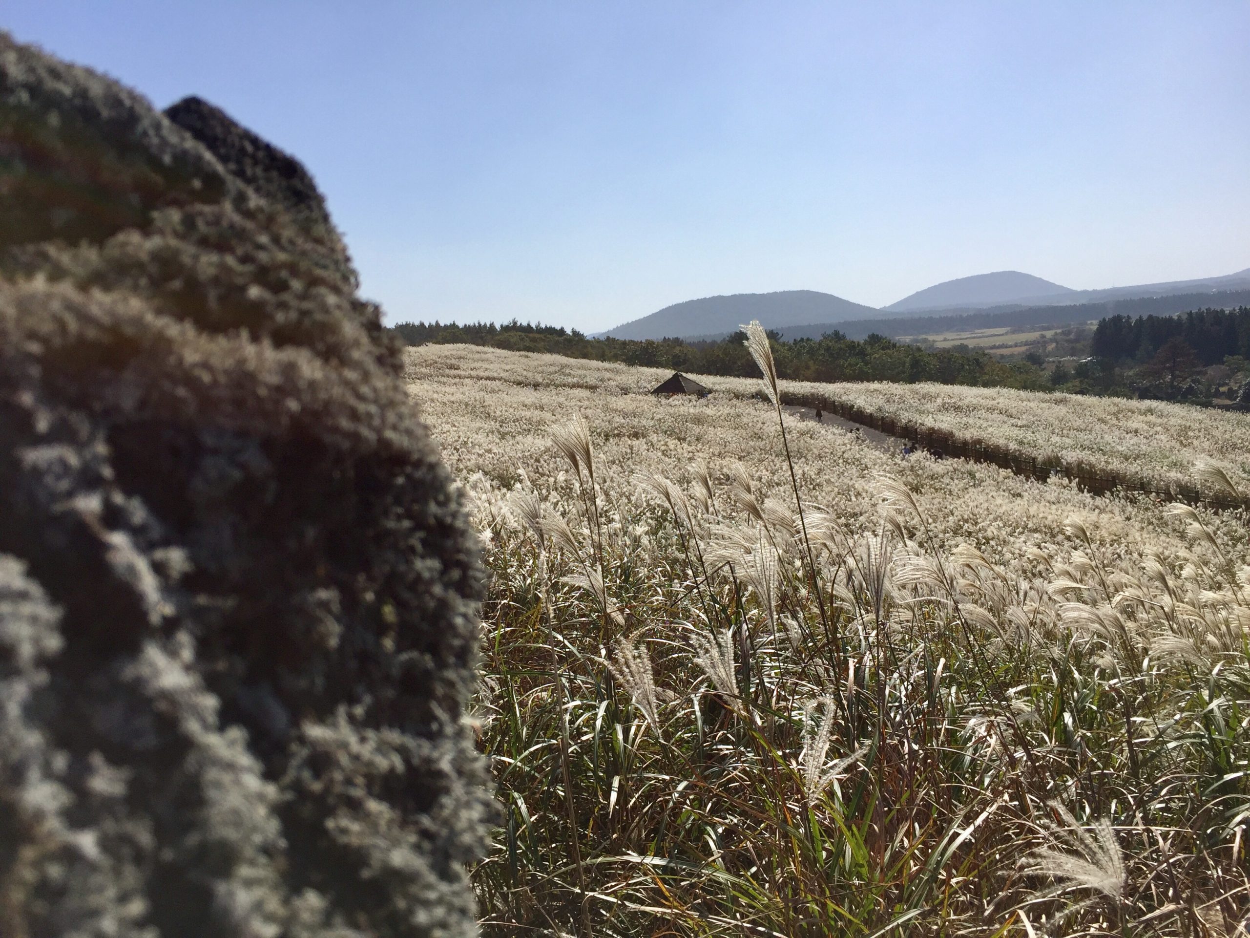 A crater with a pampas grass field next to it. This attracts a lot of visitors. It is about 6,000 won to get in and is a popular place for photos in the grass! All in all, quite a spectacular sight.