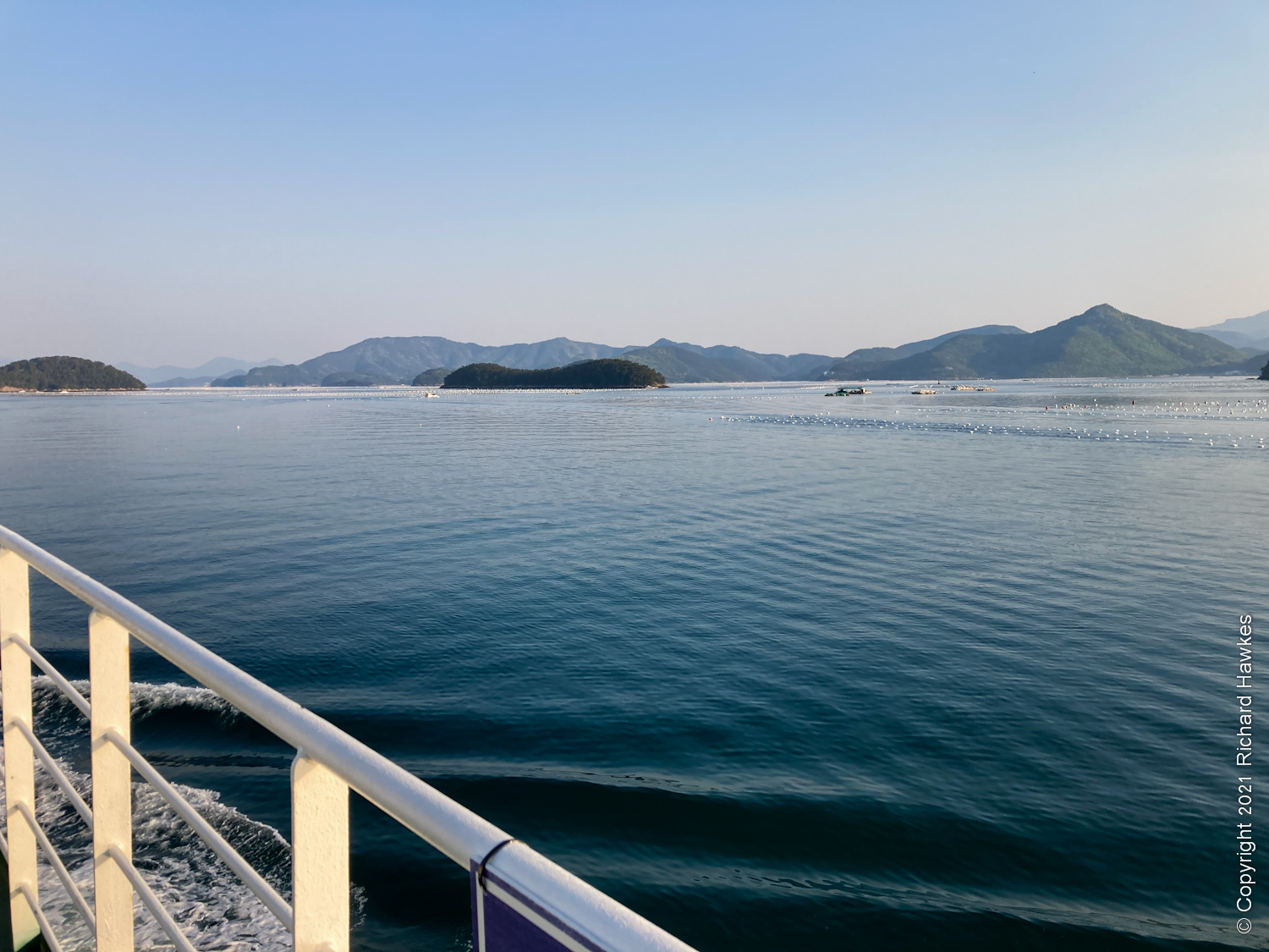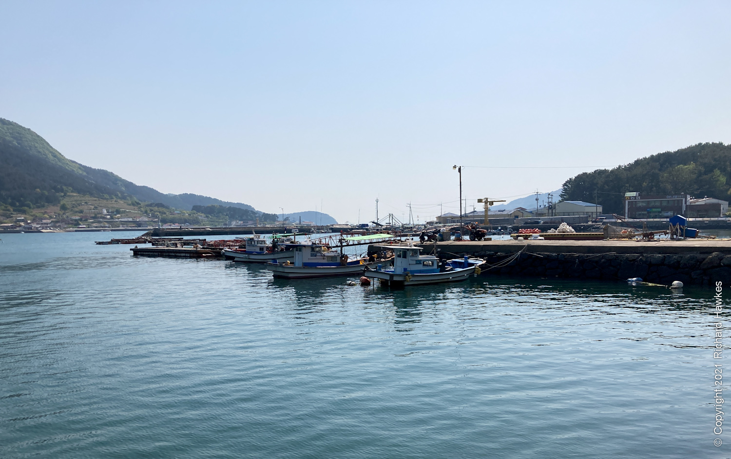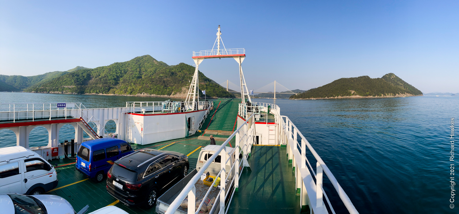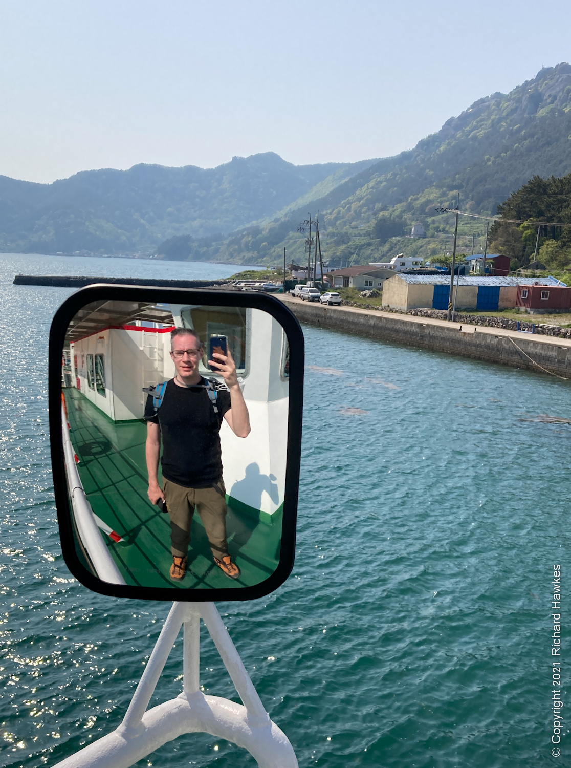 I got up at 5:15 because of a mixture of excitement and nervousness about missing the ferry! The day before, I booked the first (06:55) ferry out using this Saryangdo ferry website, so I wasn’t too worried about getting on. There isn’t much parking since this isn’t one of the main harbours so I cheekily used the car park of the supermarket opposite. This ferry for this trip departed from Misu harbour (미수항) but it doesn’t run anymore. As of March 2025, you must go to Gaochi Terminal (가오치여객선터미널). It’s also no longer possible to get tickets in advance on the website; you need to go in person to the terminal. All other ferries I’ve taken since, I’ve just bought tickets at the office before going; off season and weekdays, this isn’t going to be an issue.