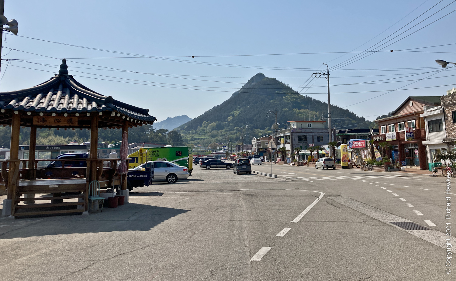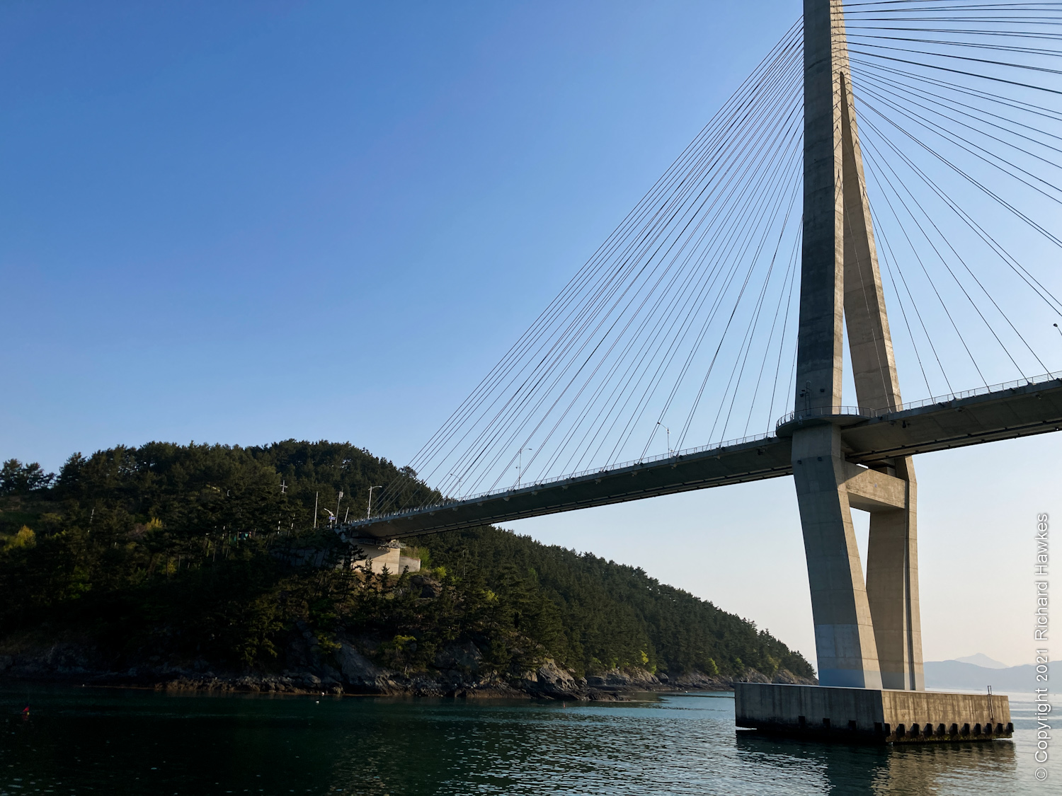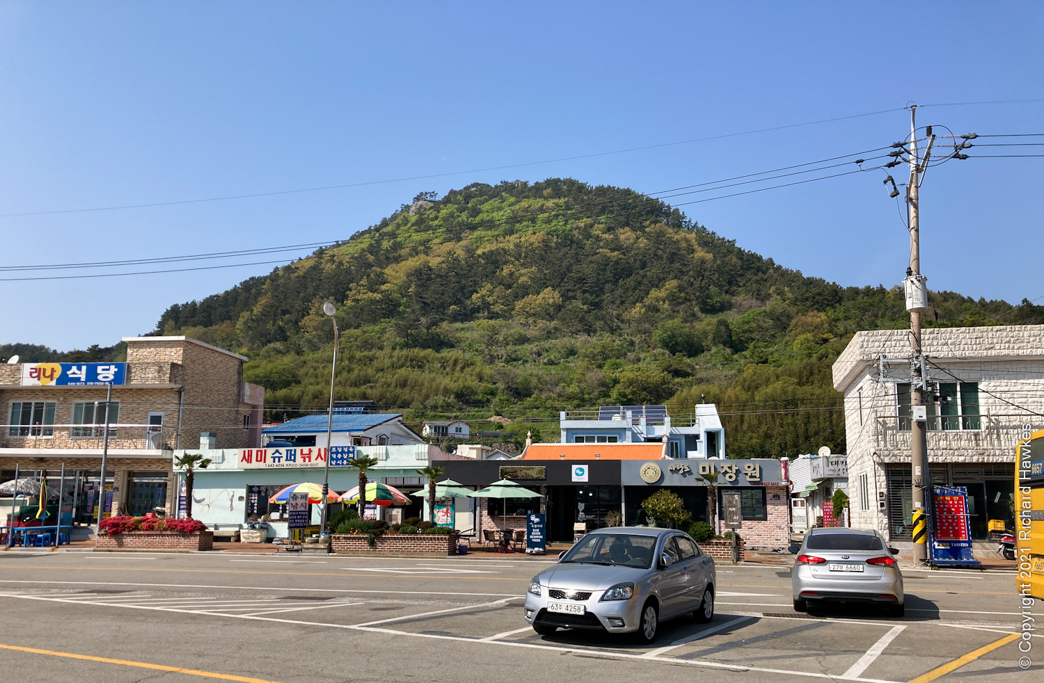 Next I went to the ferry ticket office to get the next ferry out and just caught the ticket seller before she left for lunch. I had a few hours to kill so grabbed a coffee, grapefruit juice, and cheese and ham toasted sandwich at a harbour coffee shop and sat at a street table looking over to the next island across the harbour. The ferry ride back was uneventful and back on Tongyeong, I drove to a coffee shop called Cafe de Antwerp (another post) before heading back near the hostel. I finished the evening with a (better) samgyetang then went to the hostel for a shower and beer before bed. What a great day!