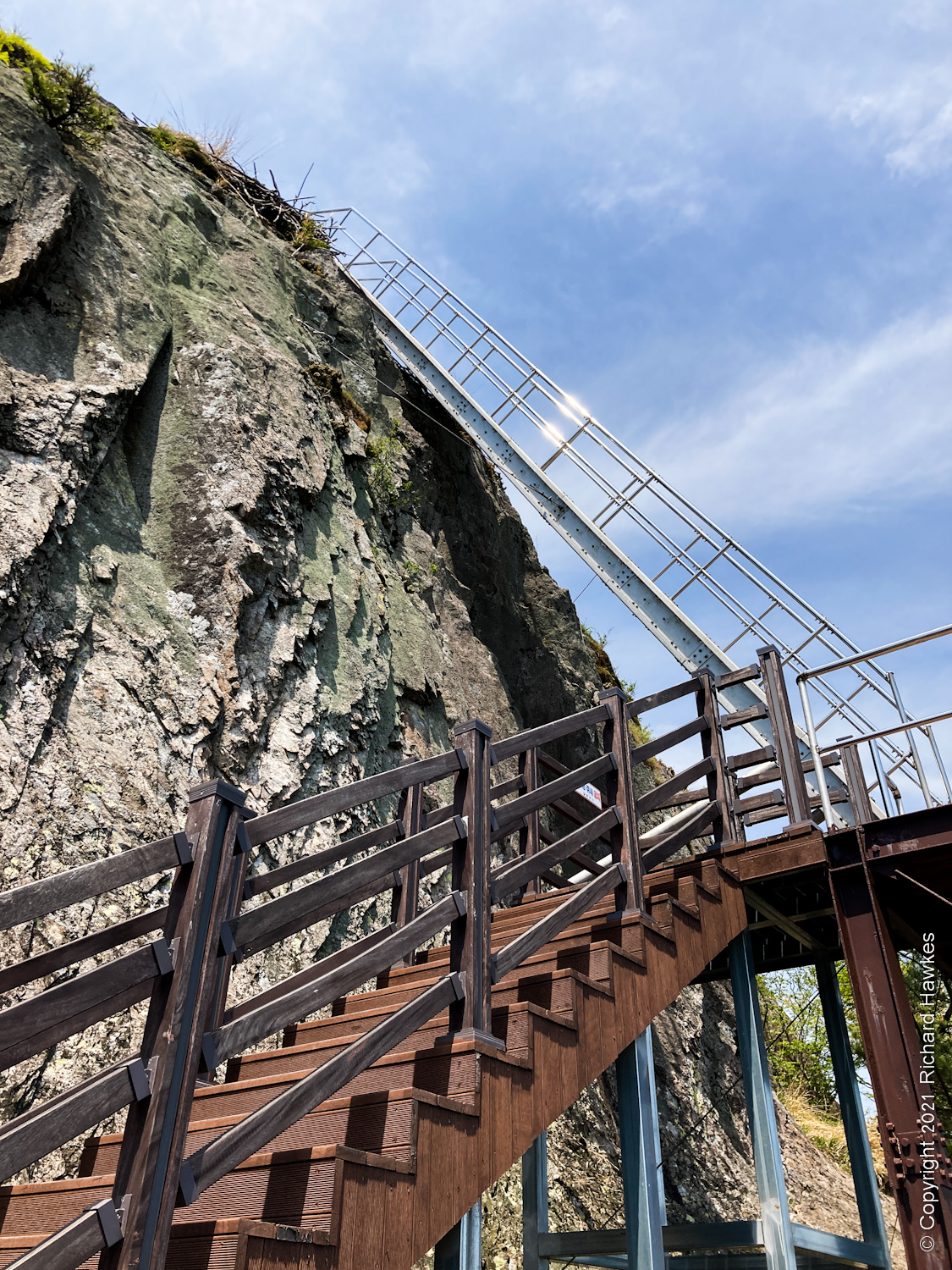 The ride over on the car ferry took about 40 minutes and was quite relaxing so early in the morning. Coming in, you pass under a big suspension bridge and get a glimpse of some of the mountain features I was looking forward to seeing, namely the suspension bridge and the ridge trail.
