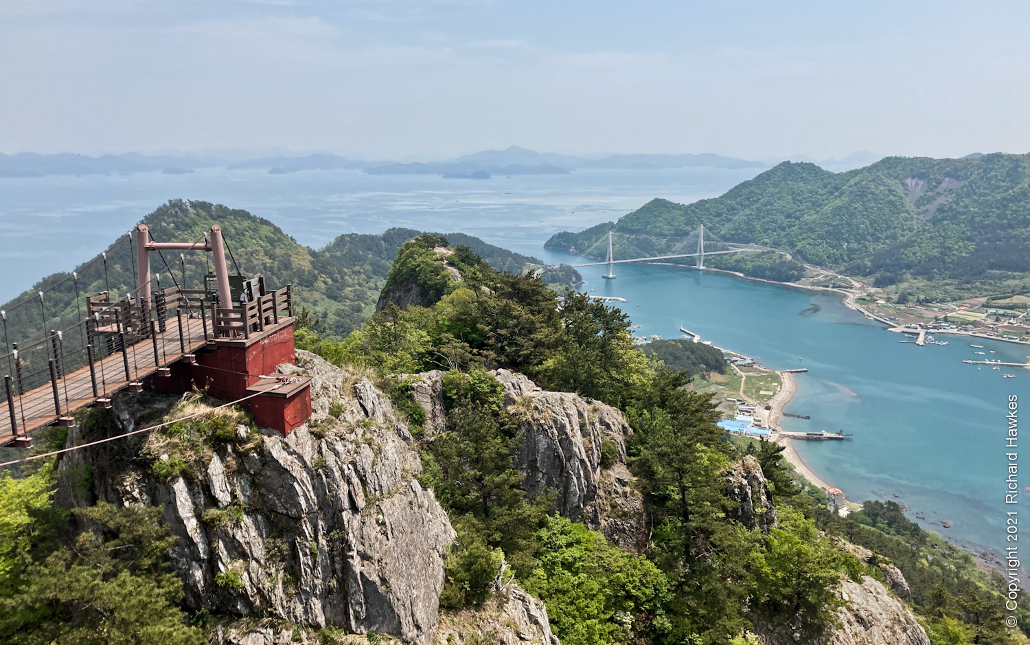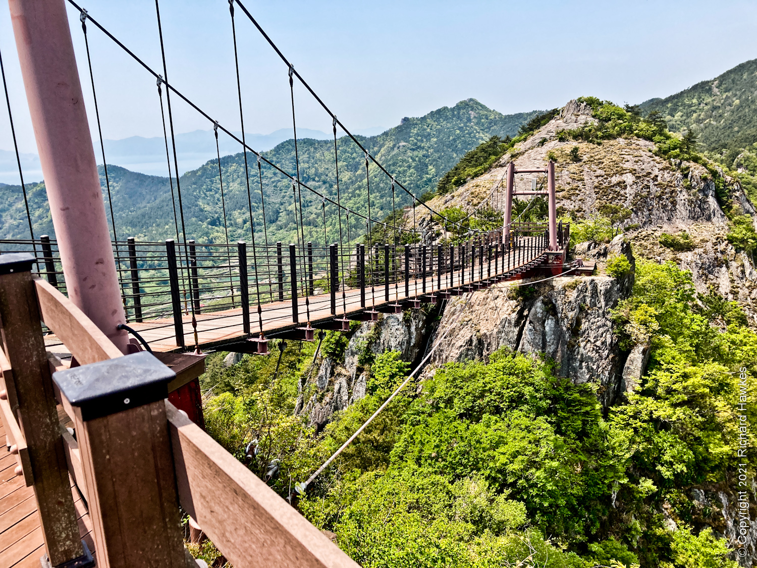 Up the next part and onto not one, buut TWO suspension bridges! They were fantastically placed and joined three otherwise inaccessible peaks. Walking over them gave views into the valleys below and over to the road bridge I passed on the ferry in. From there it was up and down a few small peaks then a stroll into the harbour village.