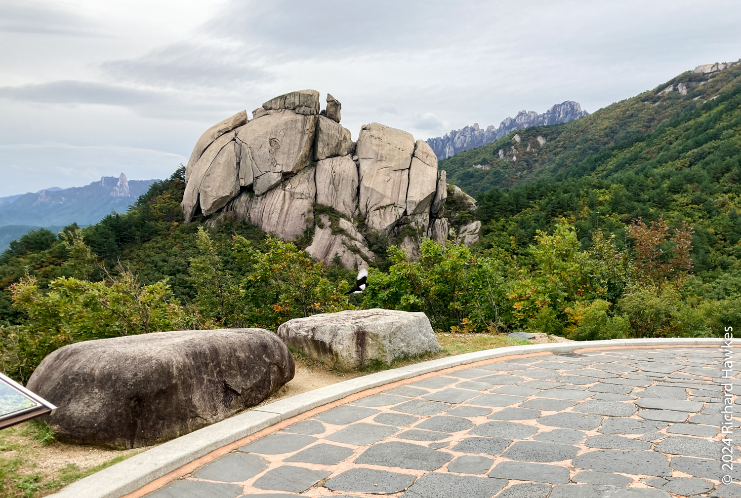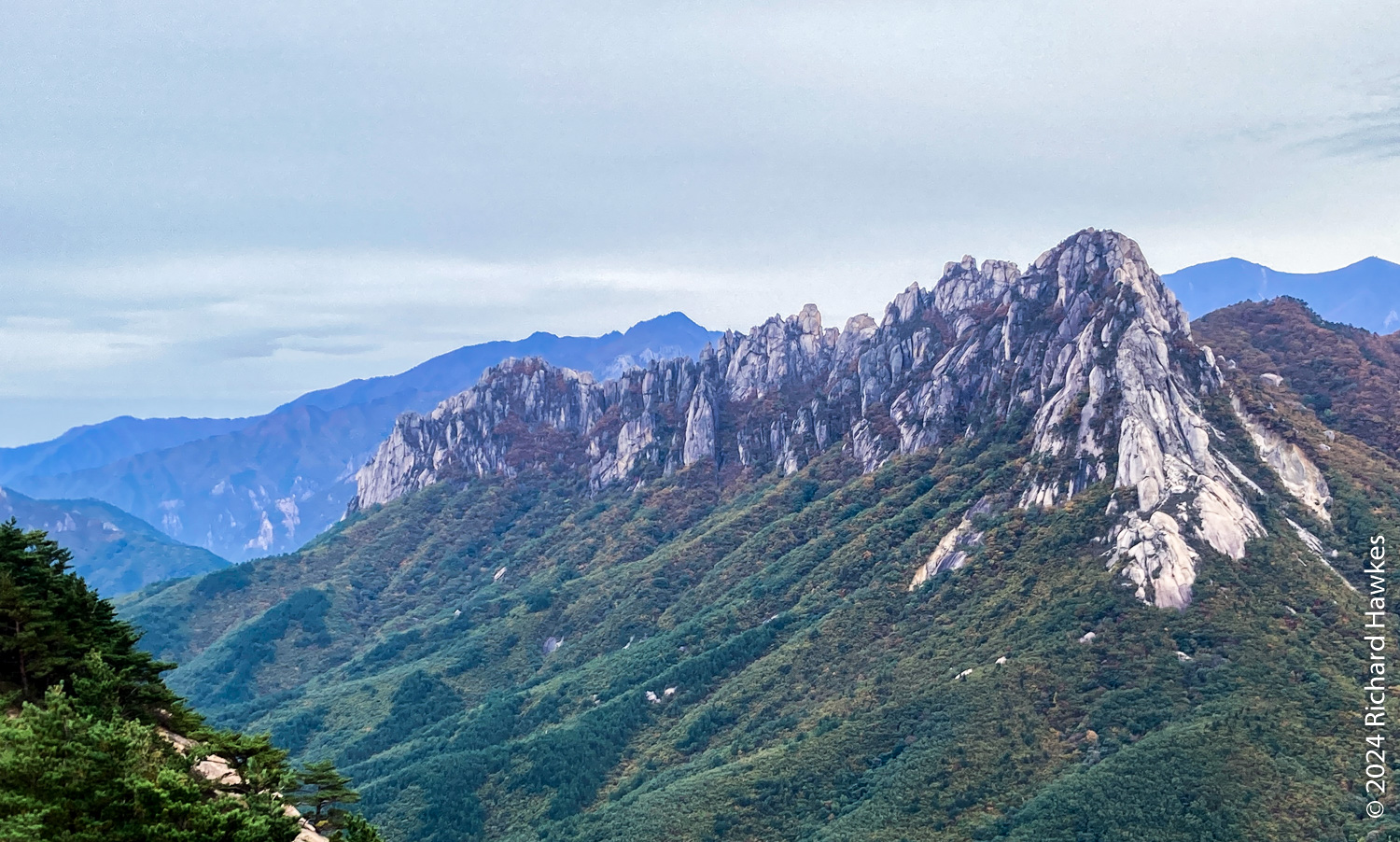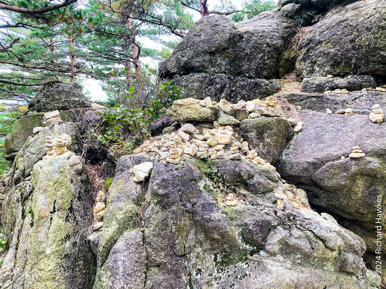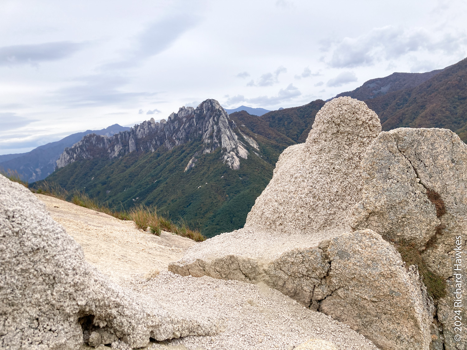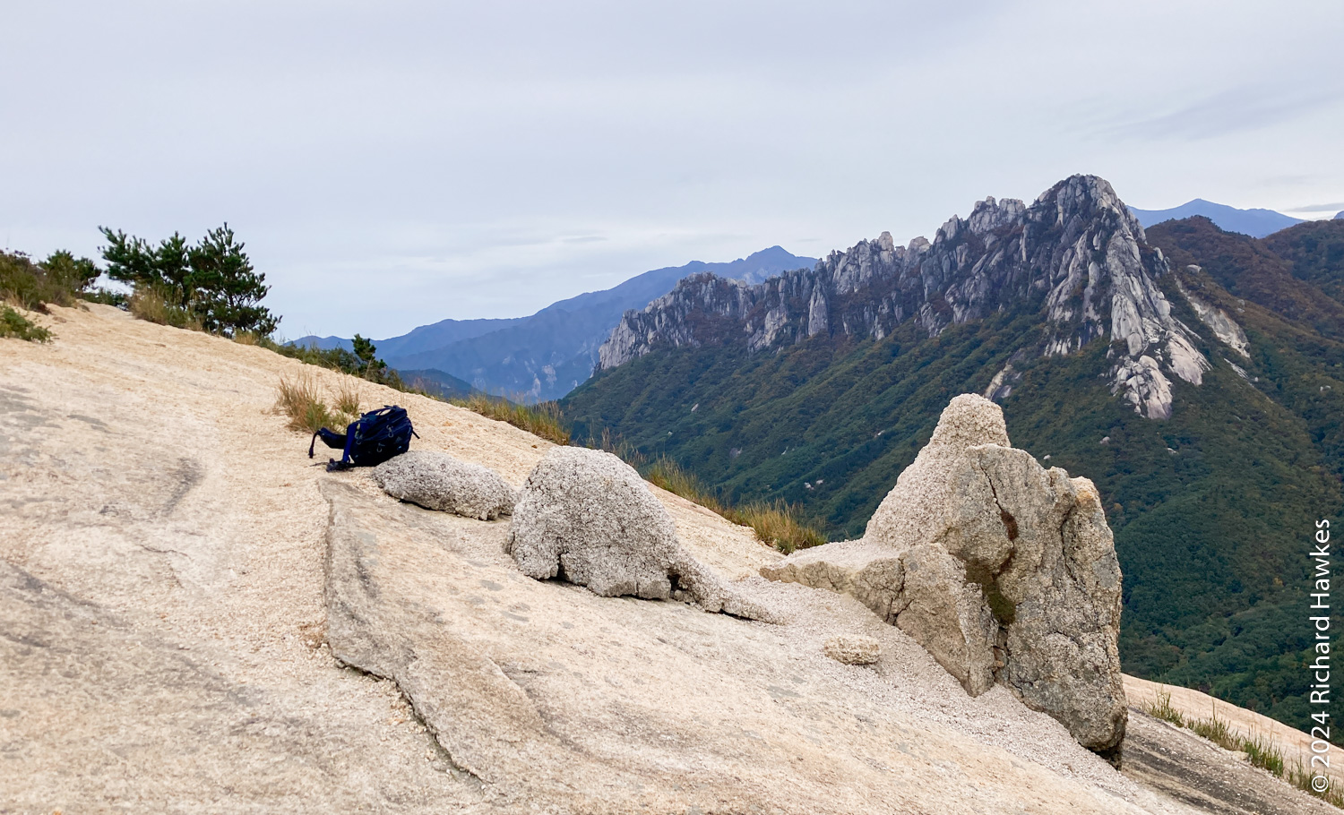 Seongindae (성인대) looks on to Ulsanbawi (울산바위) over a valley. It features a series of wide rocky plateaus with epic views. I went there based on an Instagram post. There’s also Hwaamsa (화암사) temple to explore with it’s views straight down to Sokcho city. This was the day 1 of a five-day trip to Sokcho.