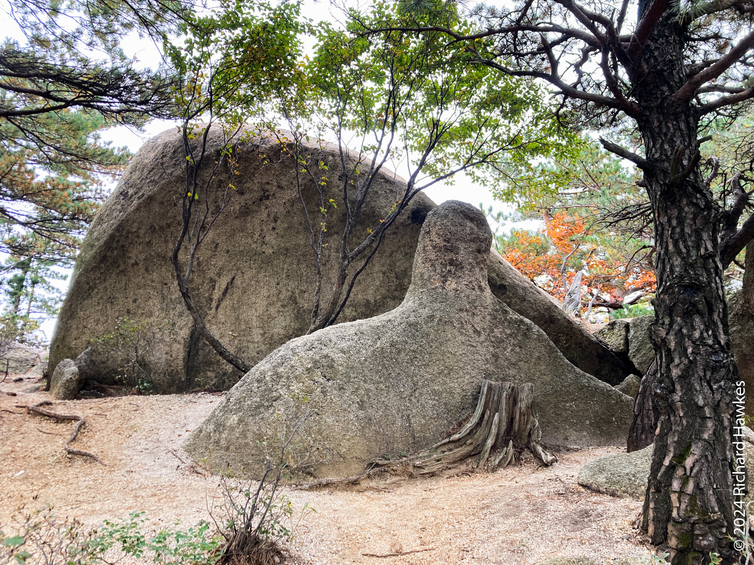 There are a couple of very cool rocks and outcrops on the way, each with it’s own story and plaque. On the way up, a group of five British trail runners passed me, the first of many foreign visitors to the park that I’d encounter. I mean, I probably saw more than fifty Westerners in small groups or in a pair; British, Spanish, Russian, Mexican. It is notable simply because in all my years of hiking in Korea, you might bump into one or two non-Koreans, but today and the following day, tons!