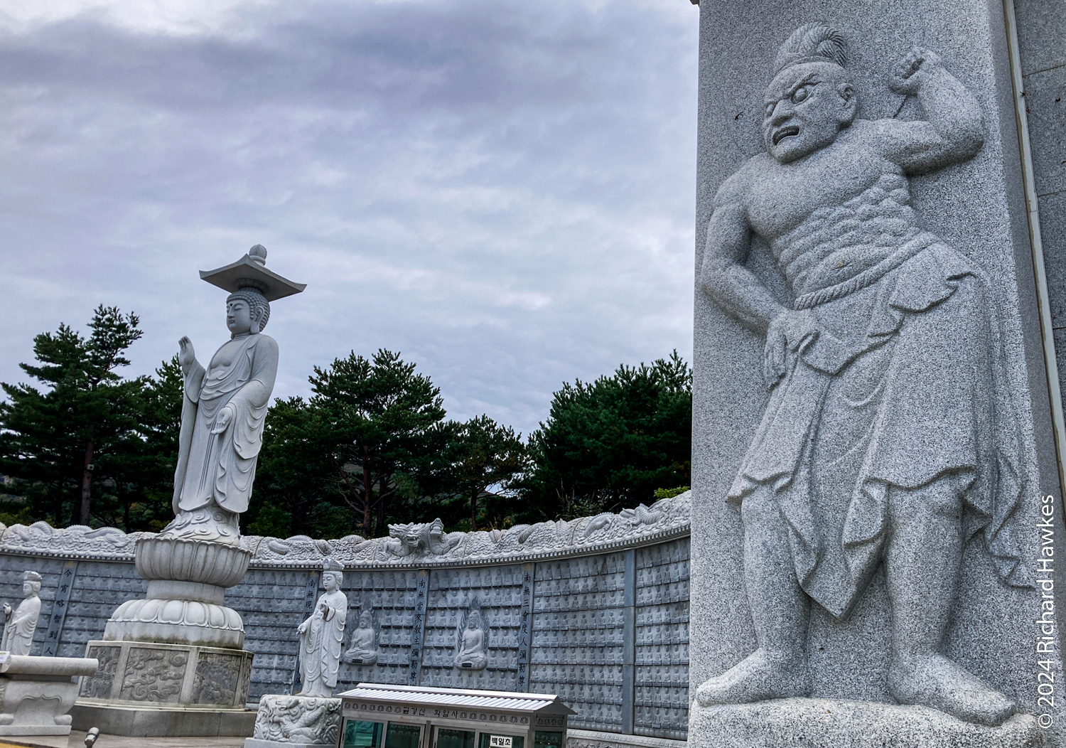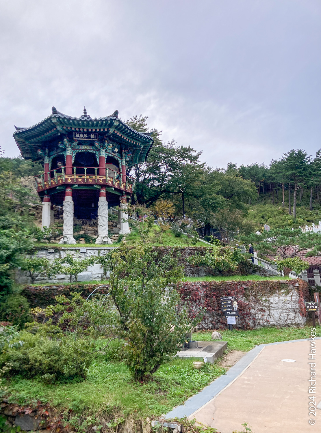 After that, I headed on, then down through the forest and eventually to the temple. The temple was pretty nice with a road that lead to a main statue on a hill that looks right into Sokcho city and the sea.