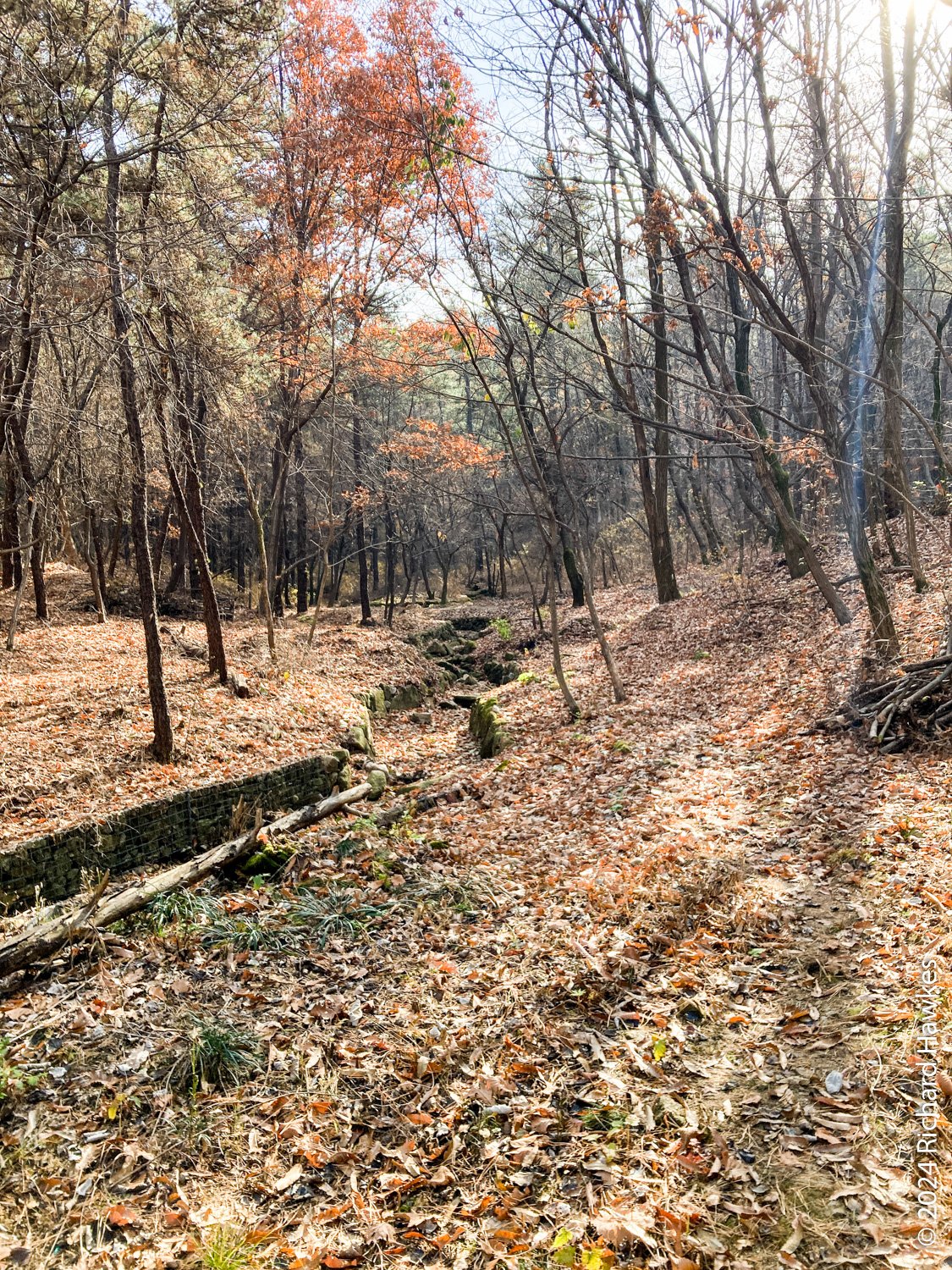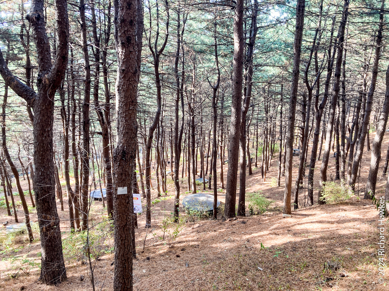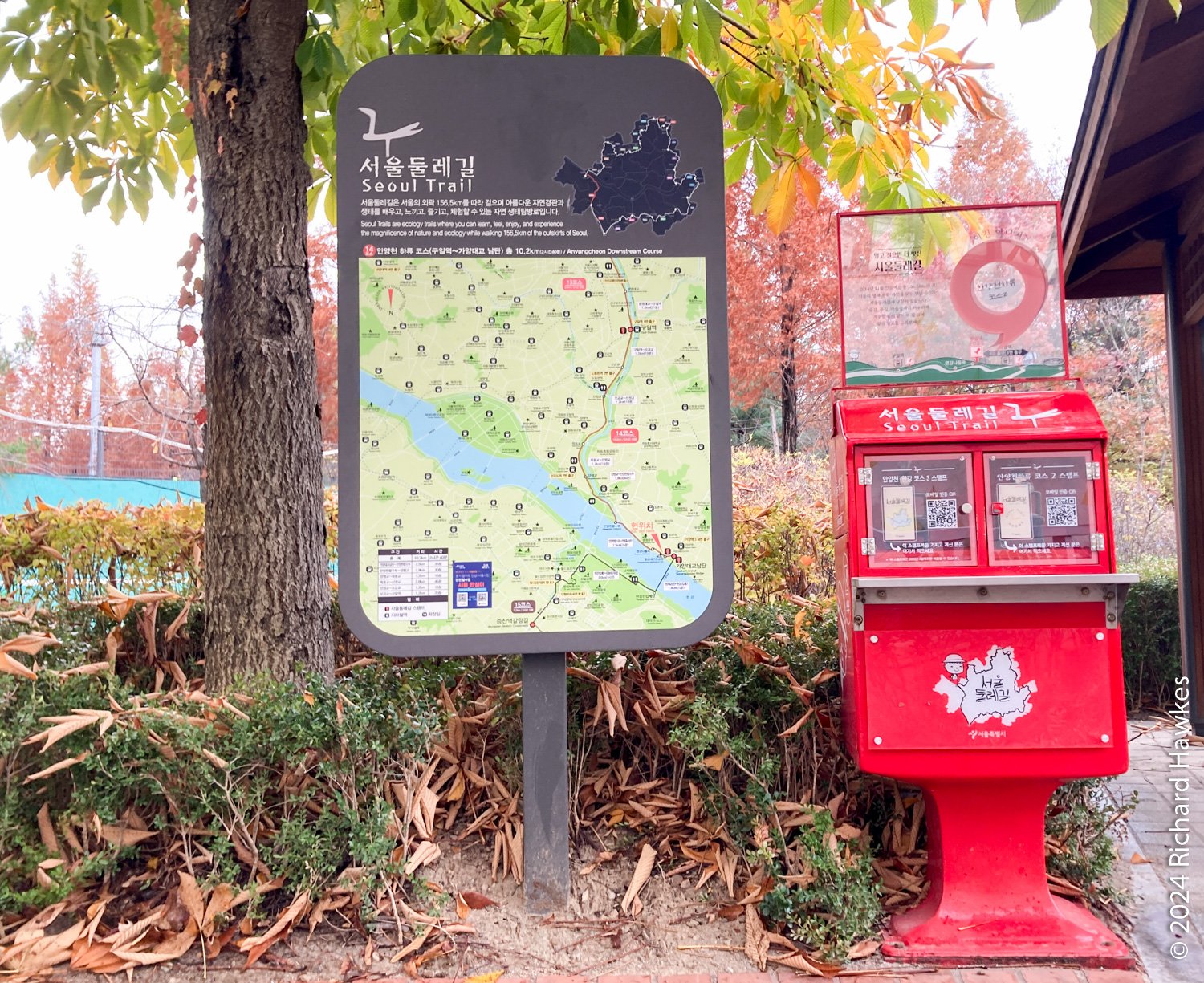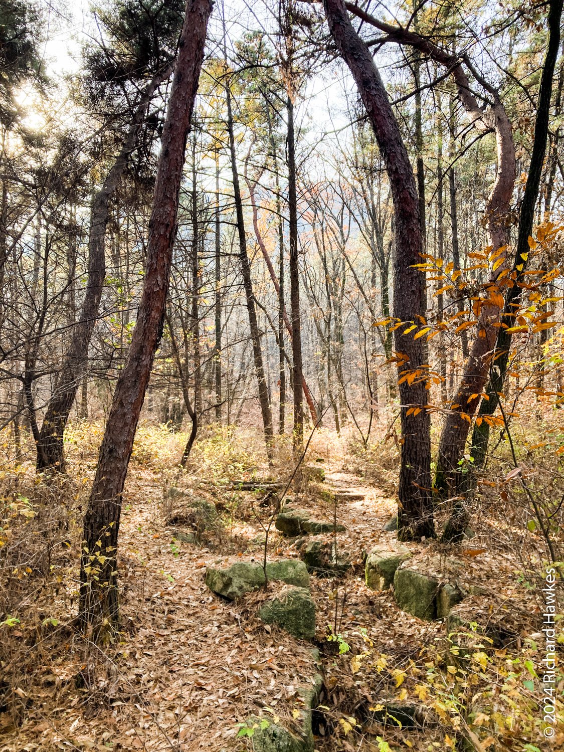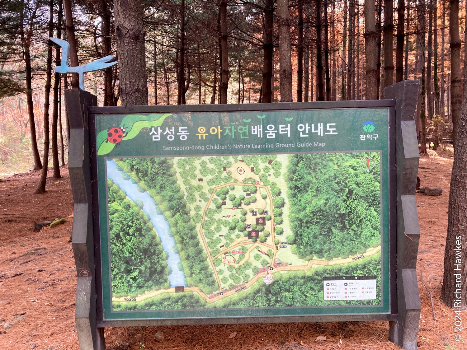 This starts at Gwanaksan Mountain Station, Gate 1 and goes into the park entrance. It follows a trail westwards in forest along the foot of the mountain. There is a nearby temple you can visit on the way, plus some really nice pine tree parks with lots of boardwalks and places to sit and picnic; saved for future reference!