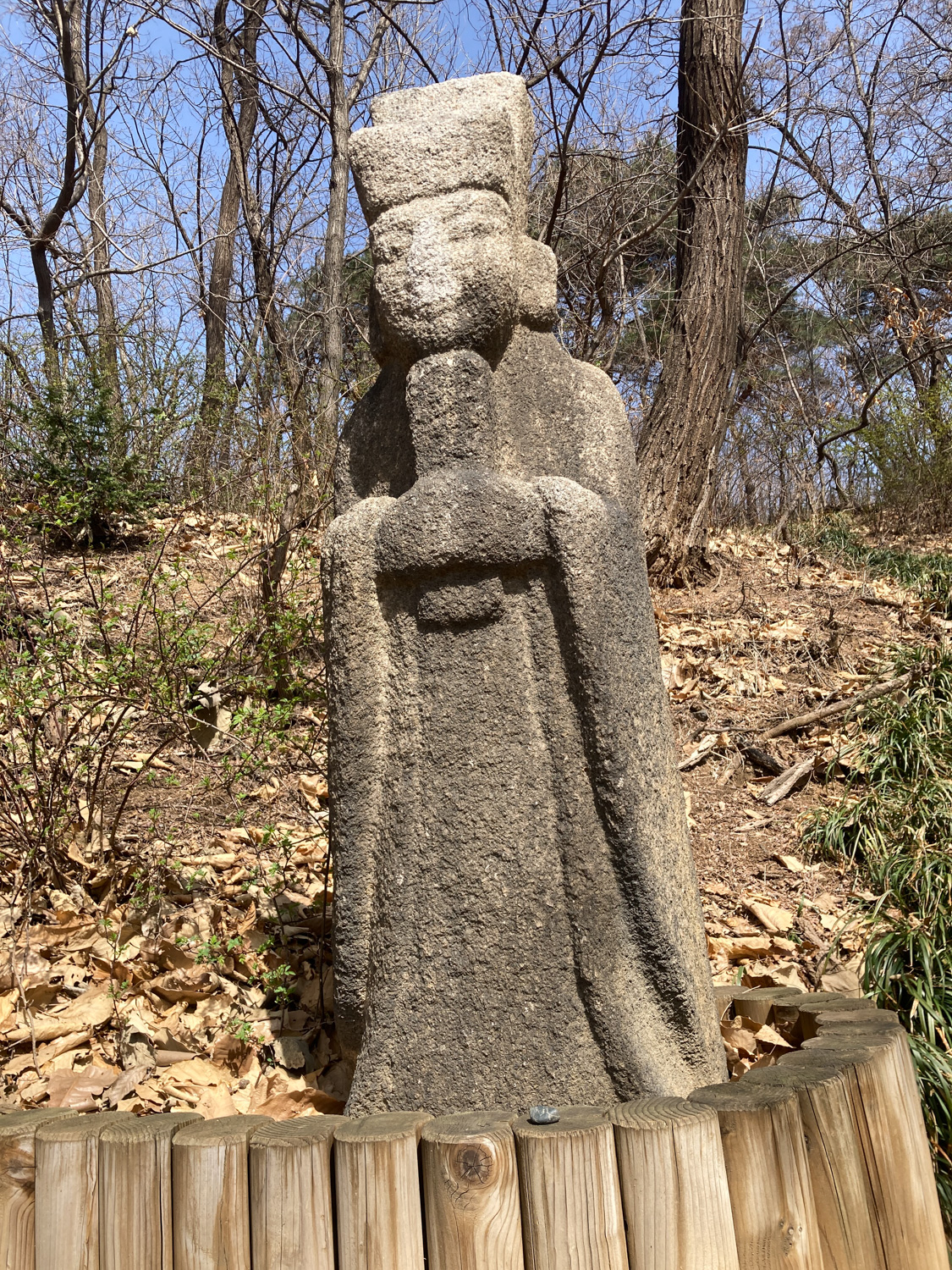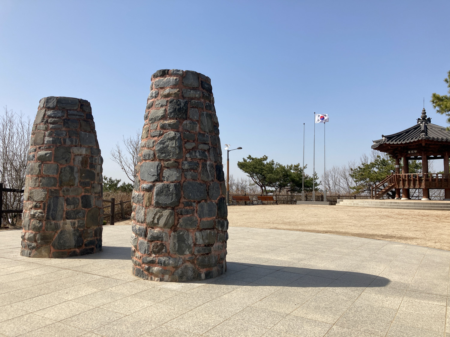 The peak of Bongsan is a flat plaza with two stone fire beacons and a pavilion to rest in, There are great views to Bukhansan from here too.