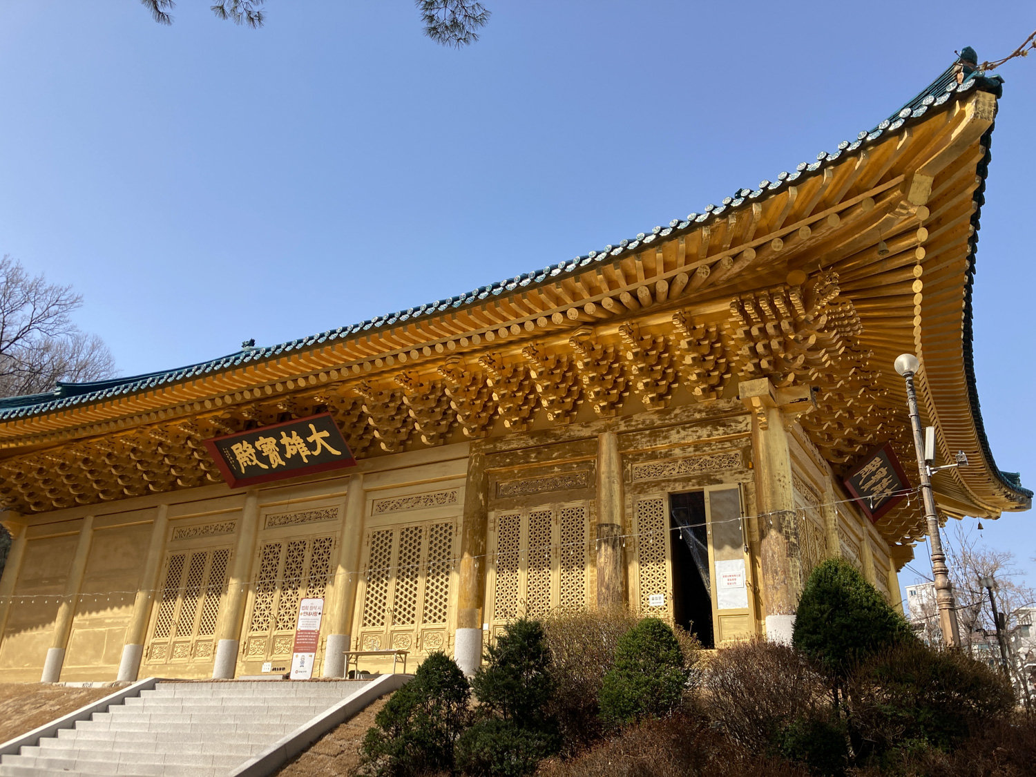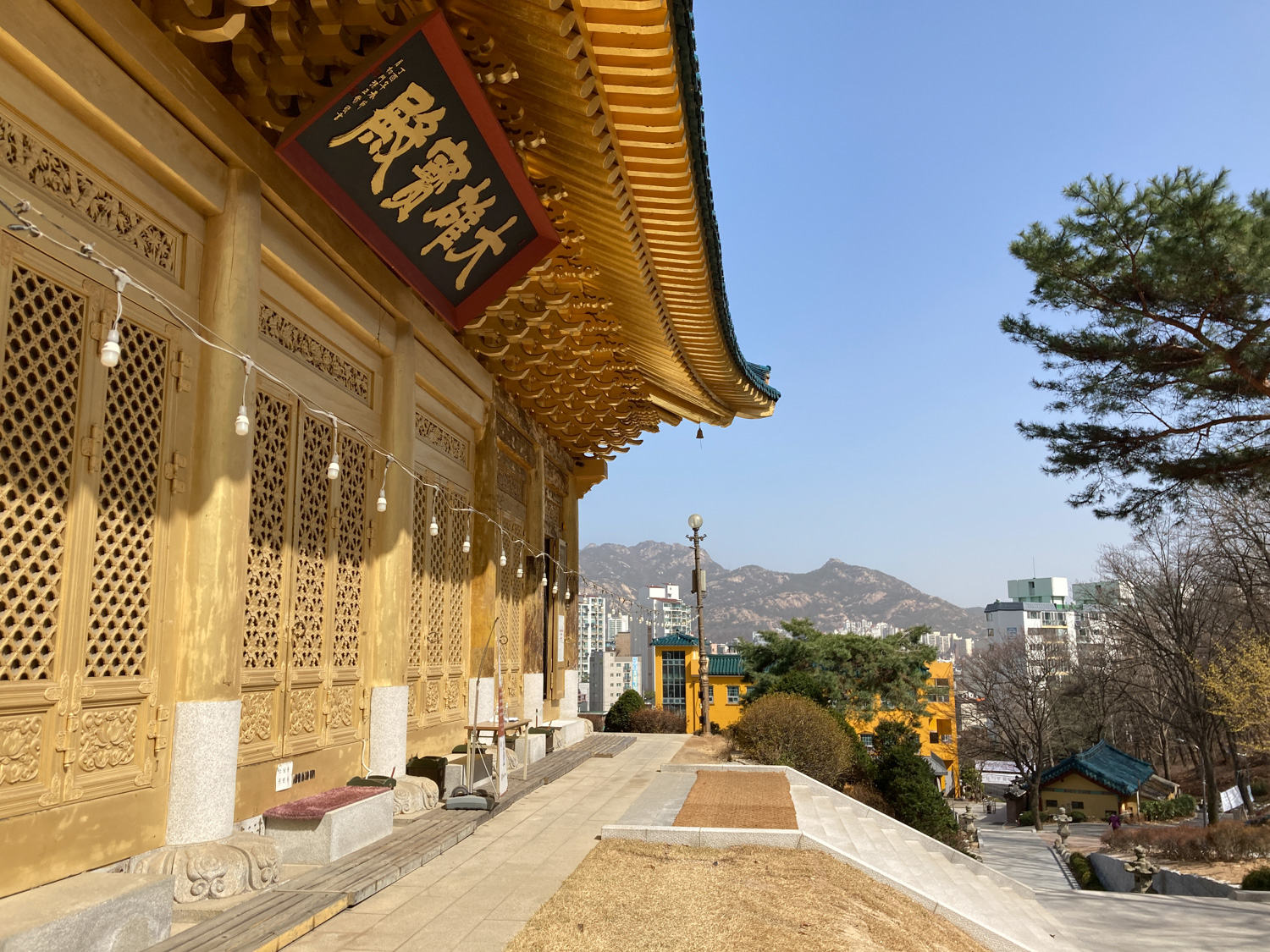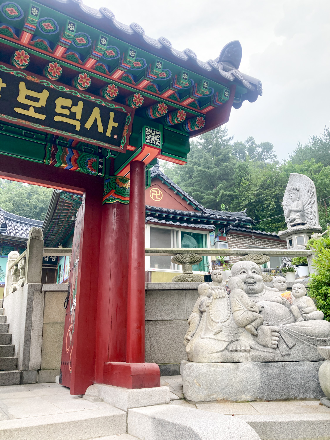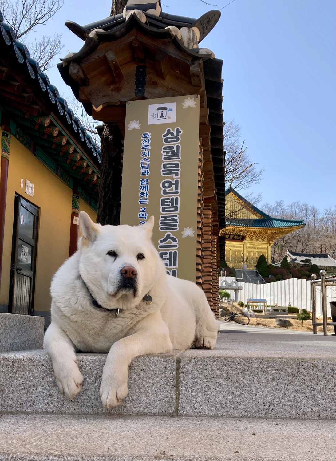 Onwards and towards the end of this section, you can take a slight detour down some another impressive boardwalk to Suguksa Temple, a gold painted temple and temple stay place. It’s home to an impressive looking dog who likes like he’s seen it all!