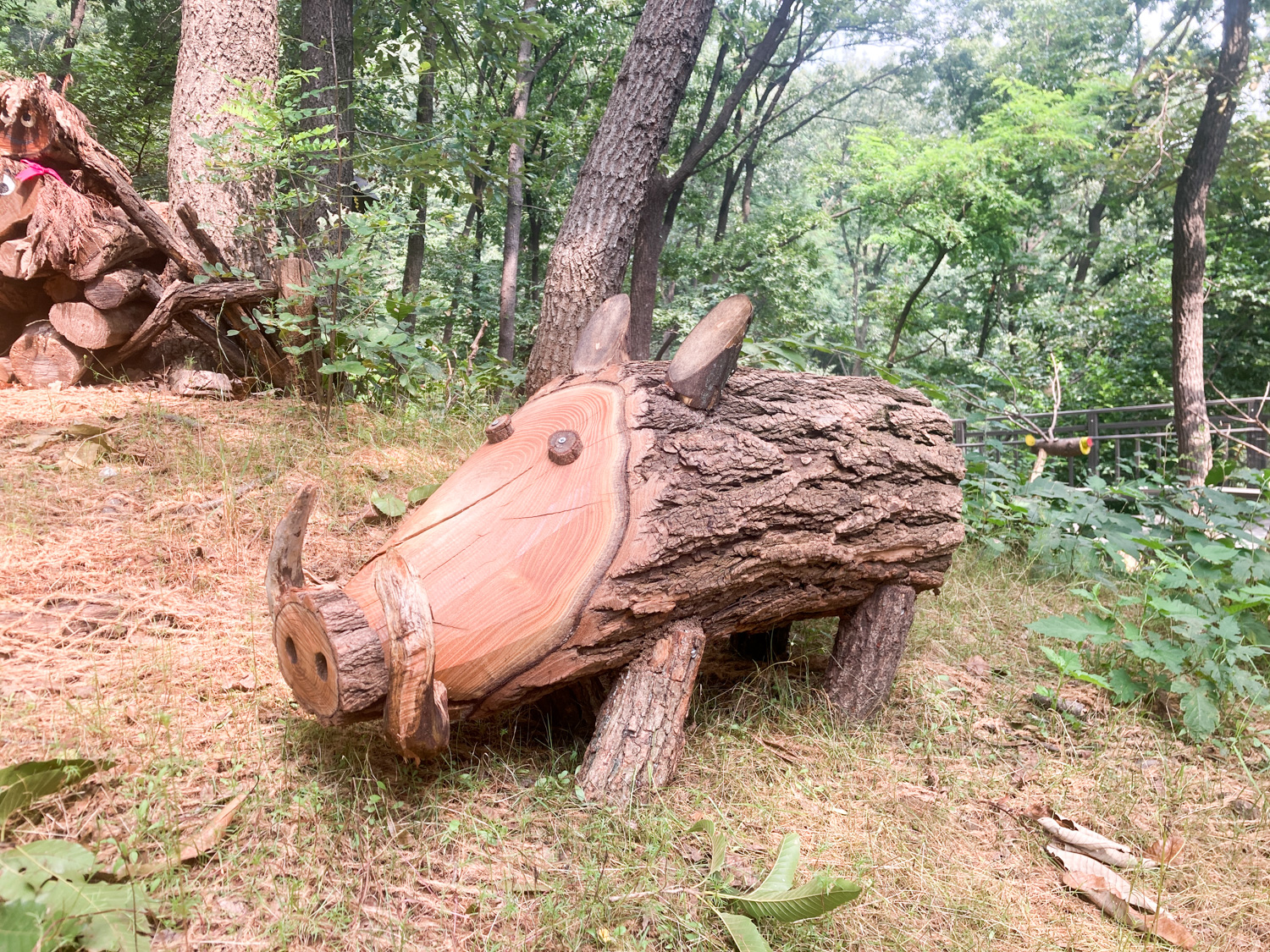 Back on the trail and you cross the main road over an eco-bridge. I think they are designed to connect nature to places that have been dissected with roads. You go into a park with interesting sculptures made of logs and then up through forest to another ridge. This eventually takes you past Tapgol Eco Park and then you’re back in a built up area. You cross a big road then make your way to Gupabal Station (Line 3) and the start of trail 17.