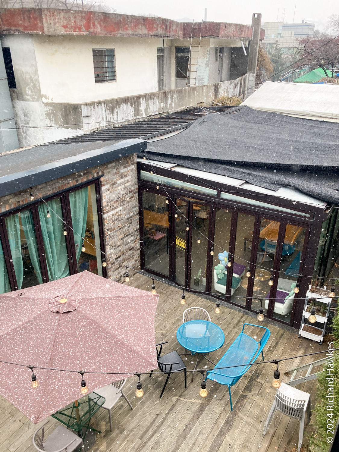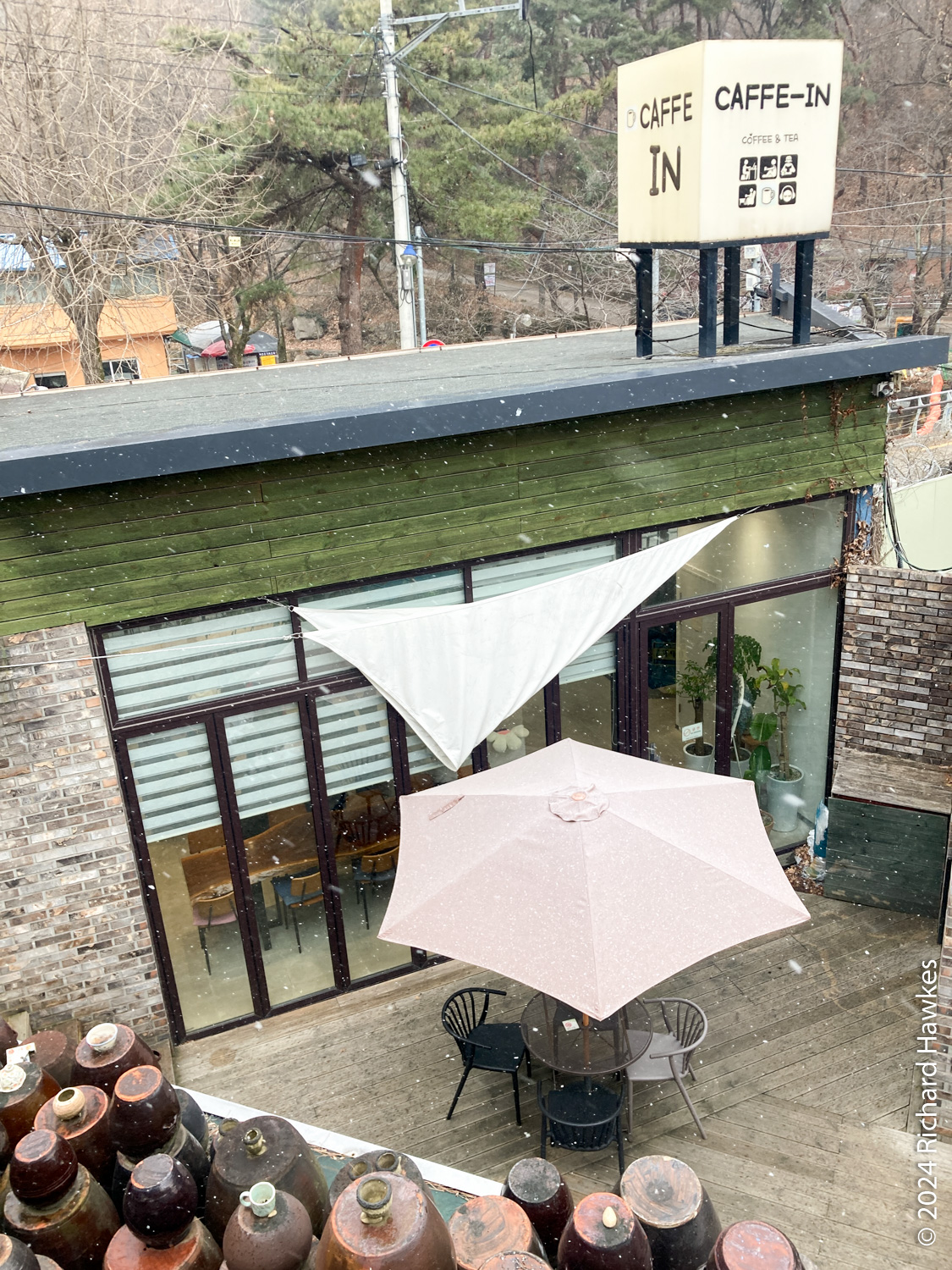 After the cemetery, light snow was falling, so I stopped at Caffe-In for a latte and sandwich. Note, it’s not on the Seoul Trail, but on the same road as the 4.19 Memorial and on the way back to the trail.
