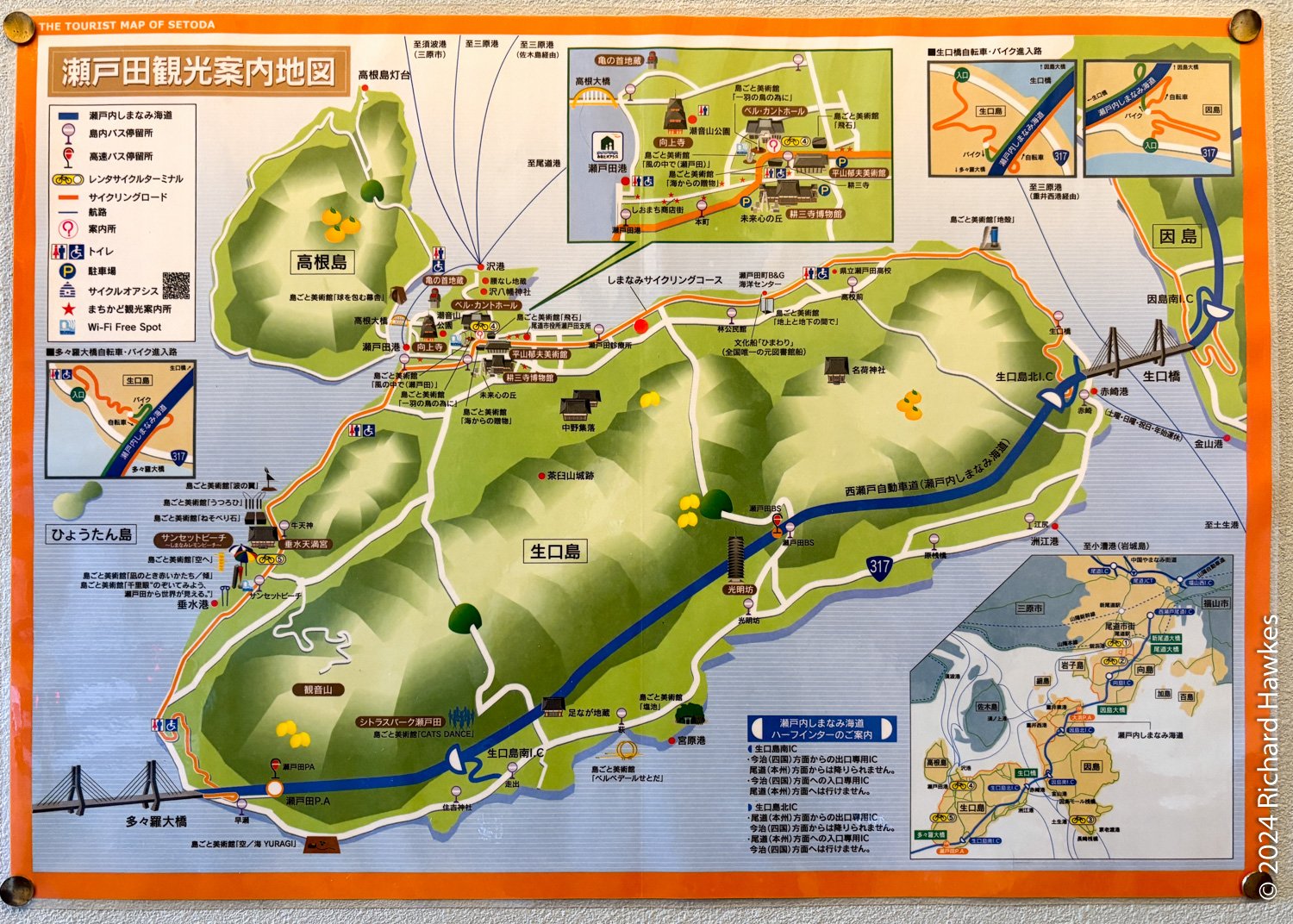This is a page with all the photos from my Shimanami Kaido bicycle trail trip. The Shimanami Kaido is a 70-80 km cycle path crossing six islands linking Onomichi (near Hiroshima) to Imabari. It’s very well documented and is covered on a million blogs and YouTube channels! I stayed in Japan for five and a half days. Day one was exploring Onomichi, days two to four were on the trail, and the last day was spent in Matsuyama.