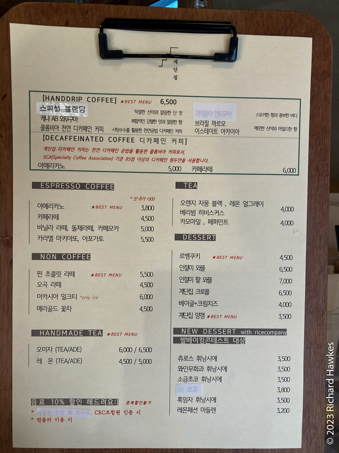 This is an interesting cafe set in a old building. Not an old traditional hanok, it’s more modern than that, perhaps from the time of Japanese colonial occupation.