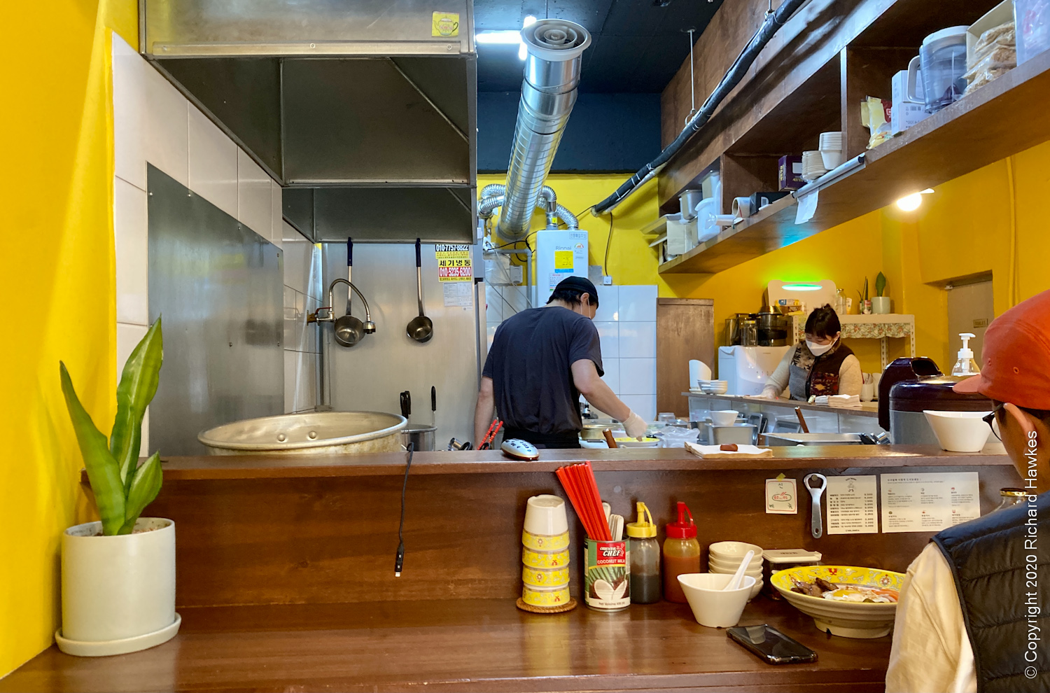 It’s a small place with seats at the counter and at the walls. I didn’t notice any tables further back. I liked the yellow decor and cosiness.