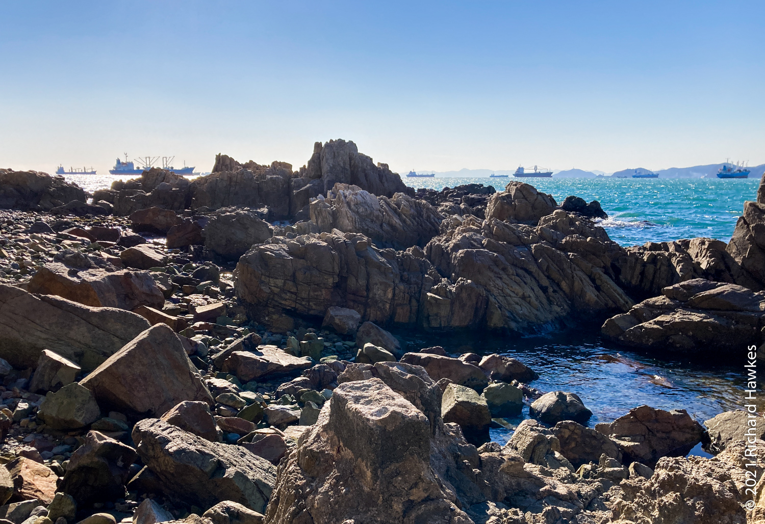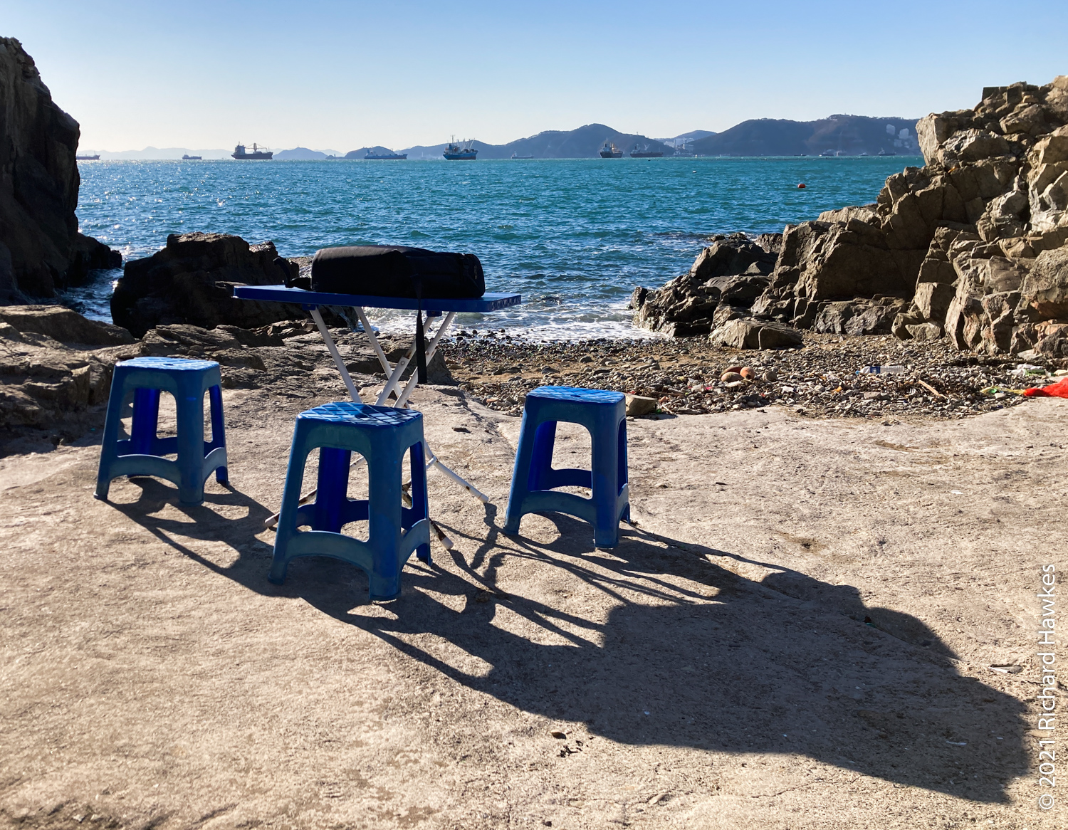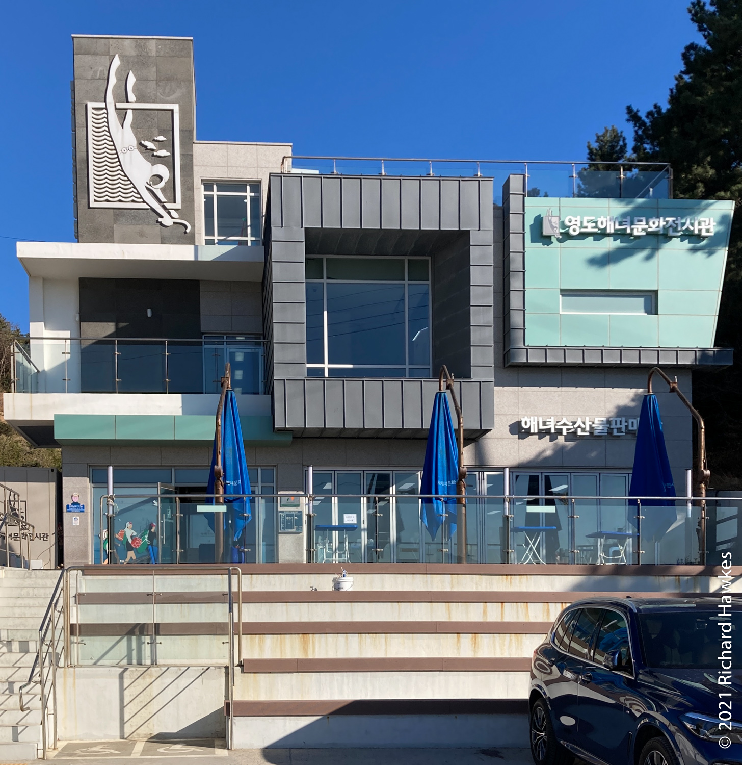 With our bags, we got on a red bus direct to Busan Station. The trip is just over an hour. We stashed the suitcase at the subway station lockers then took another bus to Yeongdo (영도) for seafood. We’d been to this island before for seafood on the rocky coast underneath Yeongdo lighthouse in the winter of 2012. This time, Romana had found another place to try on the west side of the island, called Haenyeochon (해녀촌). This is a place where (traditionally) woman seafood divers (Haenyeo 해녀) go fishing and sell their wares! I suppose the are has been modernised a little as they seemed to be operating from a new building by the sea rather than from tent. Also, I don’t know if the woman here were the actual haenyeo or just preppers and sellers; perhaps they fish in the mornings and sell in the afternoons. In any case, we saw quite a few haenyeo working on our seaside walks yesterday.