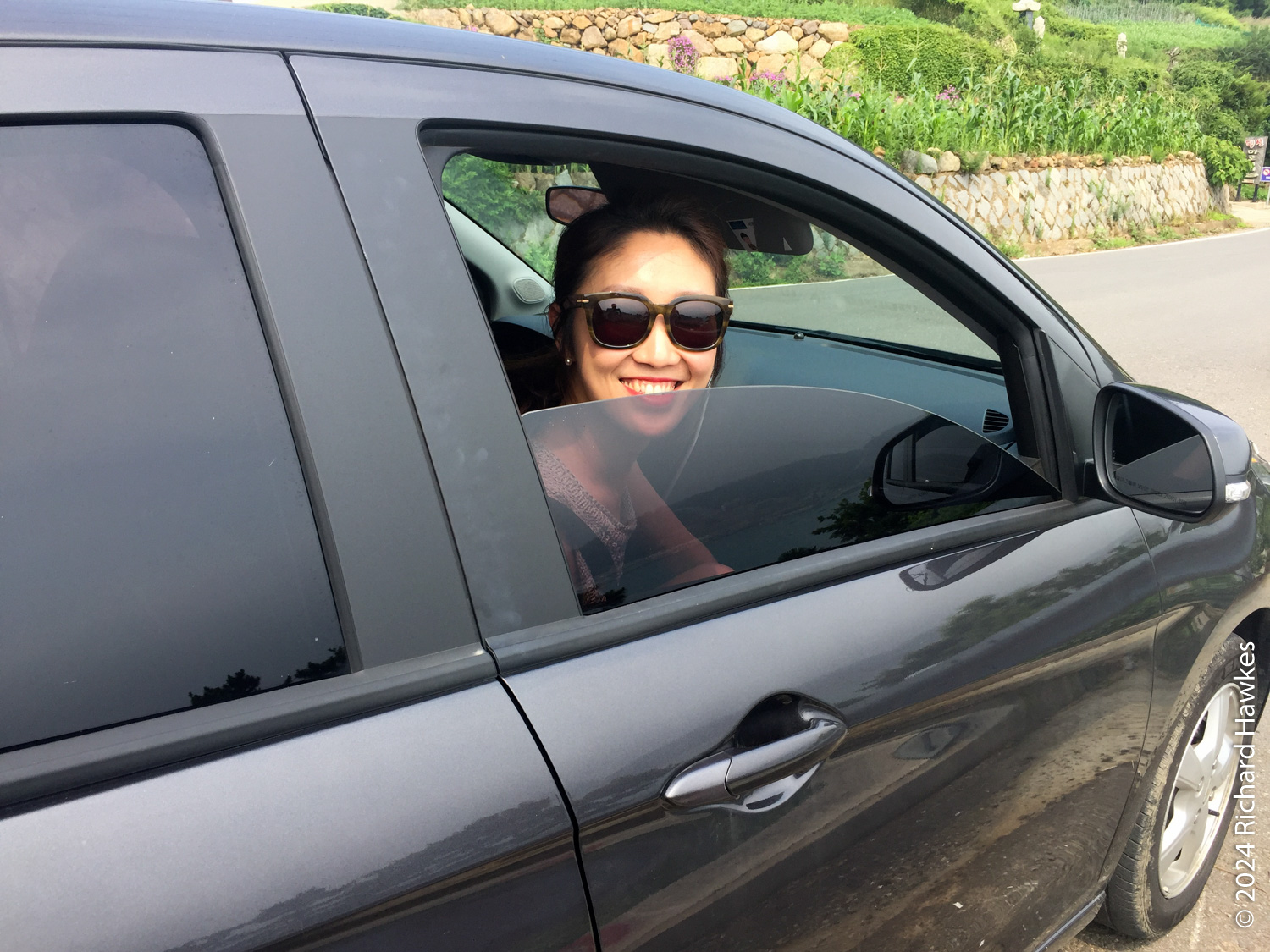 We took a bus to the main town, stopping off once at the Ginseng Land services. The bus arrived arounf 13:30, and near the bus station, we rented a small car. Romana did all the talking! It was a local rental place, so very reasonably priced for the three days.