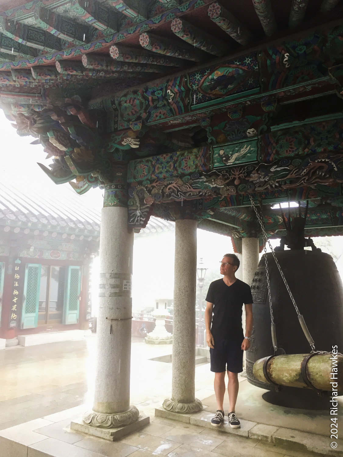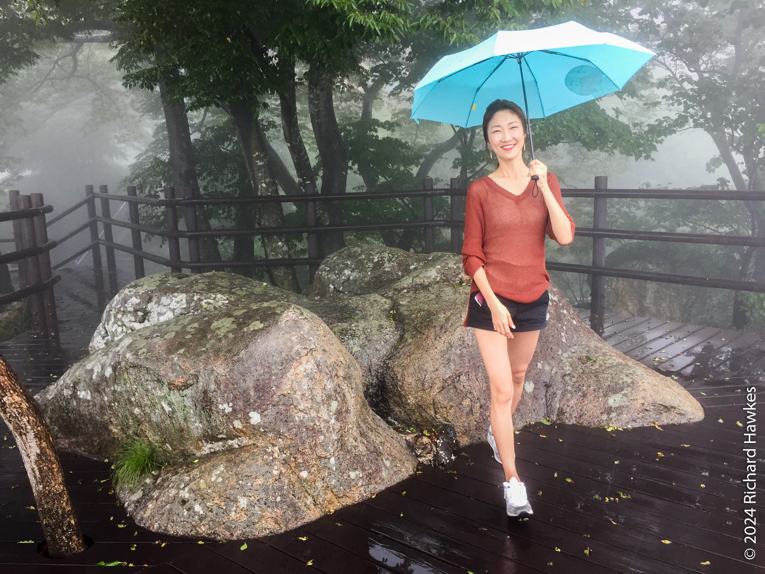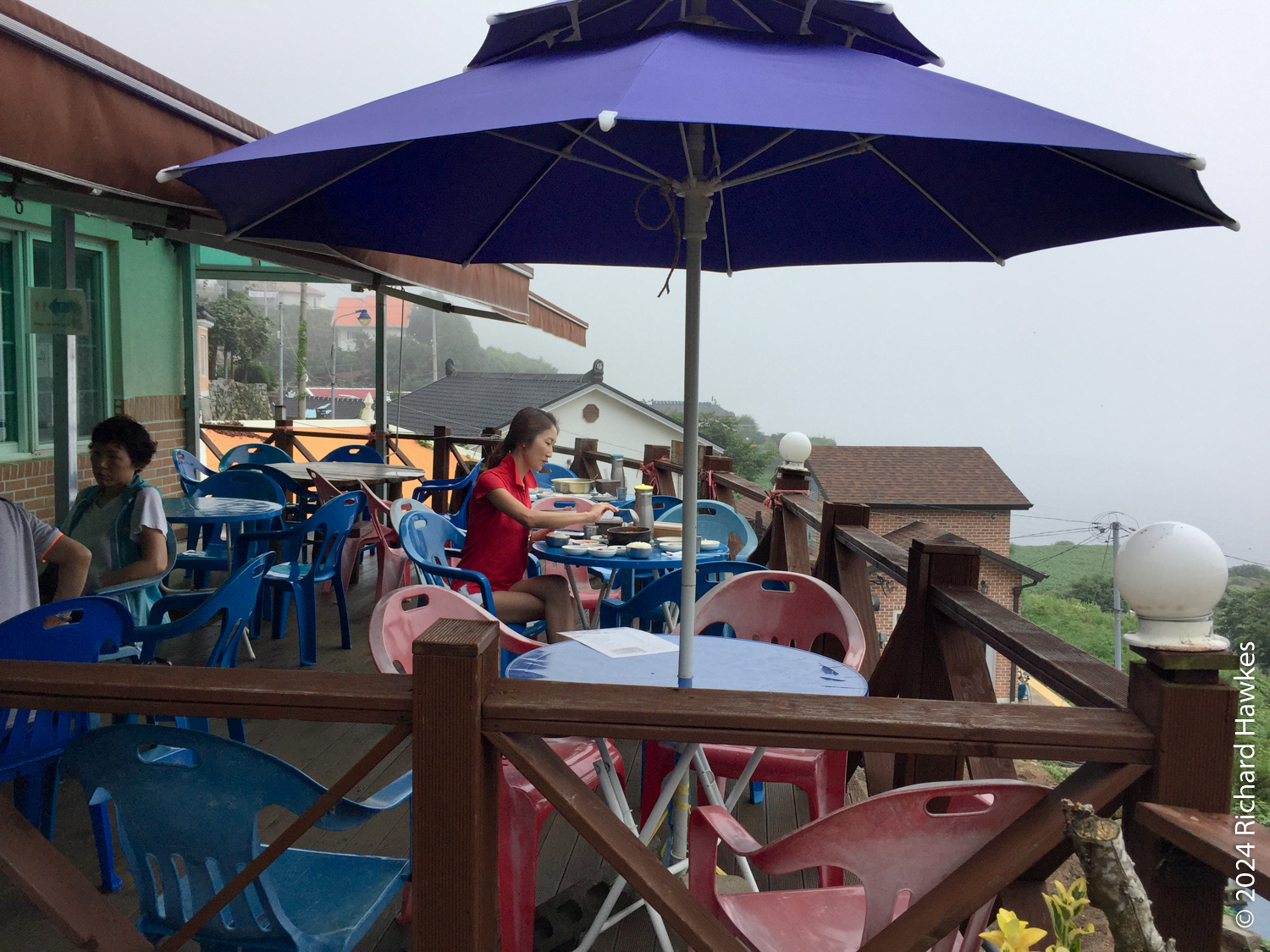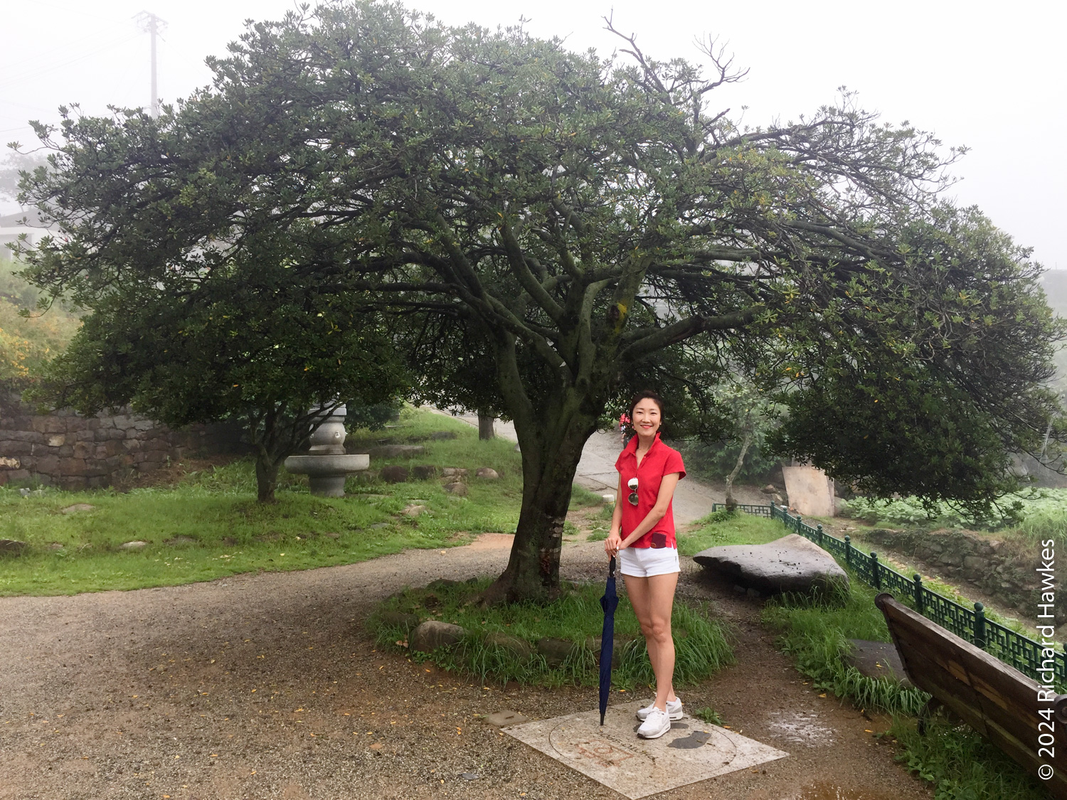 We had a convenience store breakfast on the terrace and looked out to what promised to be a very wet day! Nearby is a well-known mountain temple called Boriam, so off we went! It was raining pretty hard by the time we got there. There’s a parking lot on the east side that you approach from the north west. There’s shuttle bus (I think), so no hiking necessary. Because of the rain there weren’t any views from the wide temple terrace out to sea, but the fog gave the whole temple a lovely and eerie atmosphere. Check my post from 2023 to see the temple in better weather!