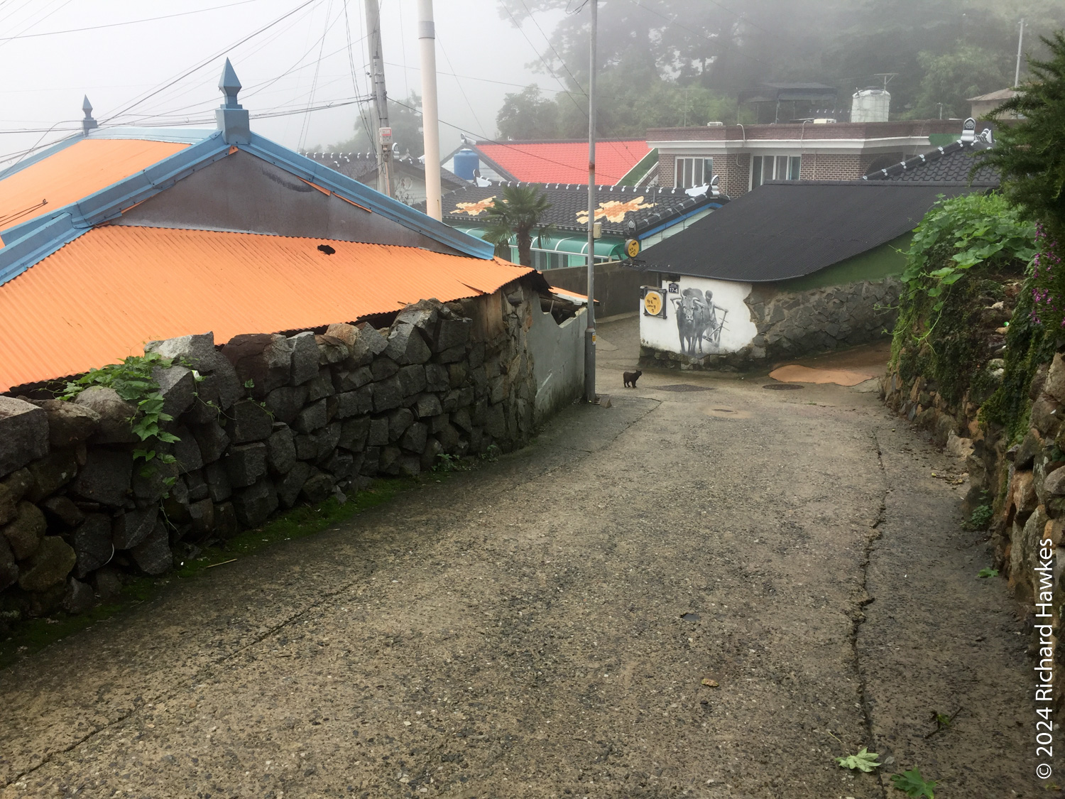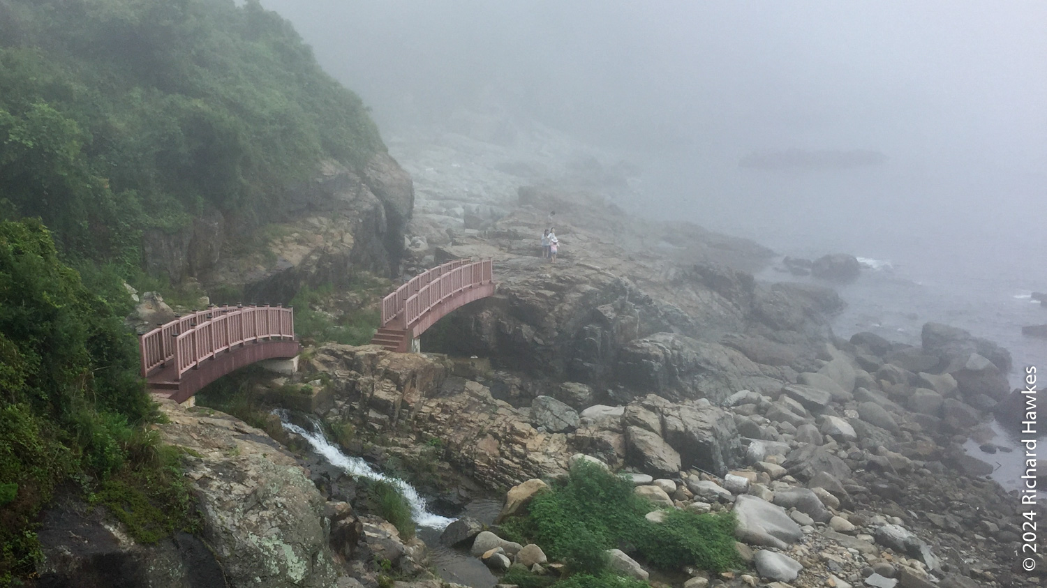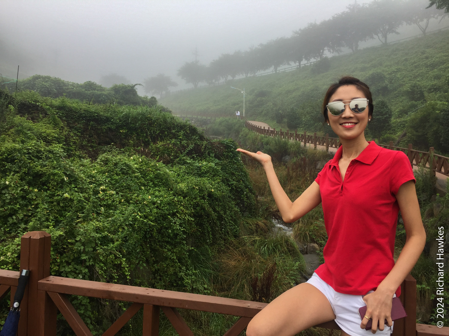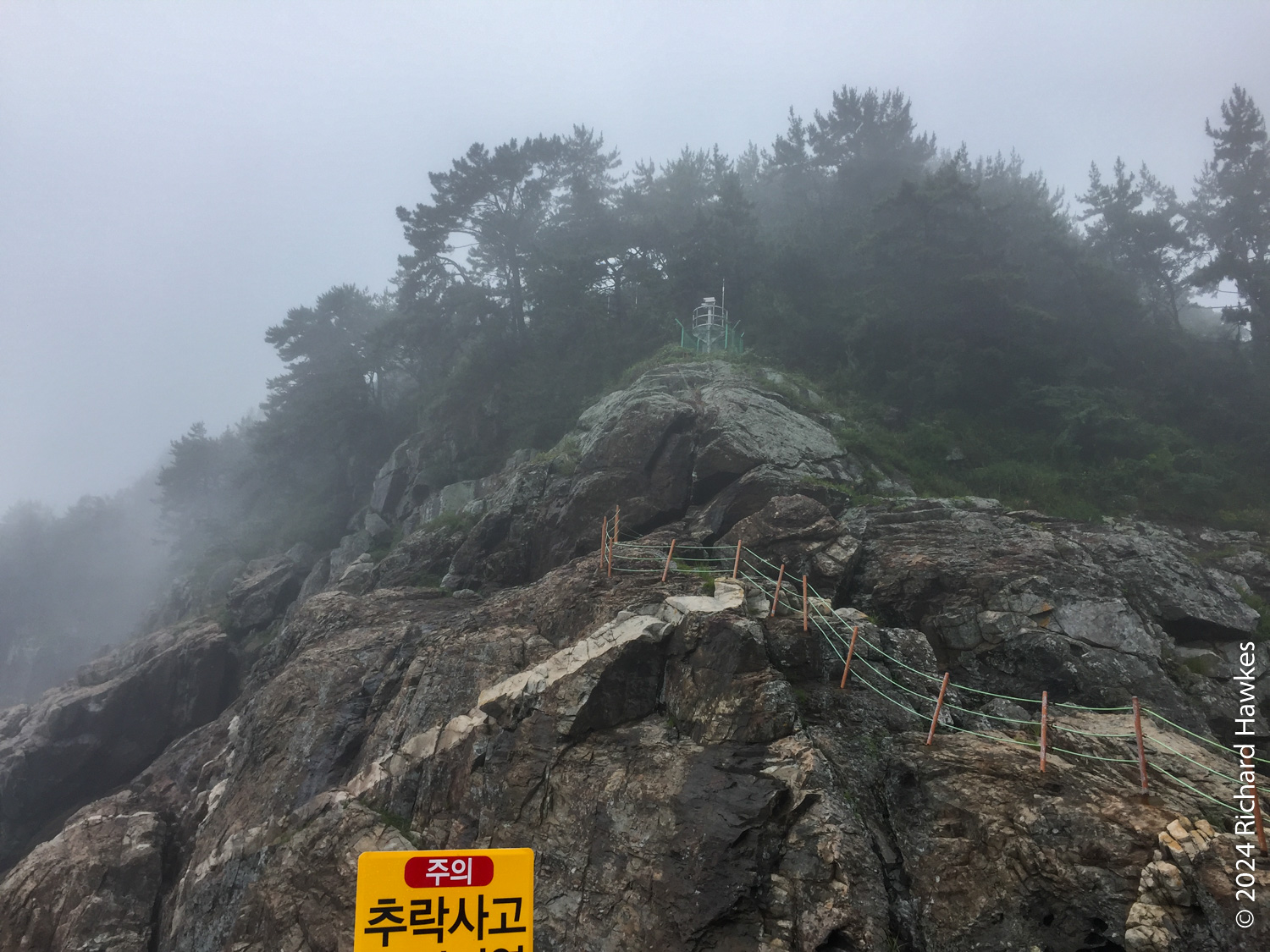 We had a convenience store breakfast on the terrace and looked out to what promised to be a very wet day! Nearby is a well-known mountain temple called Boriam, so off we went! It was raining pretty hard by the time we got there. There’s a parking lot on the east side that you approach from the north west. There’s shuttle bus (I think), so no hiking necessary. Because of the rain there weren’t any views from the wide temple terrace out to sea, but the fog gave the whole temple a lovely and eerie atmosphere. Check my post from 2023 to see the temple in better weather!