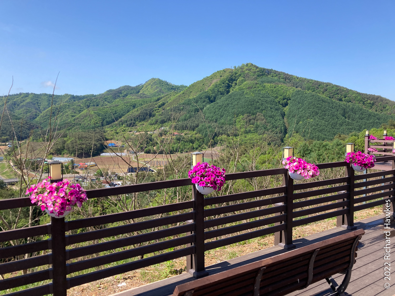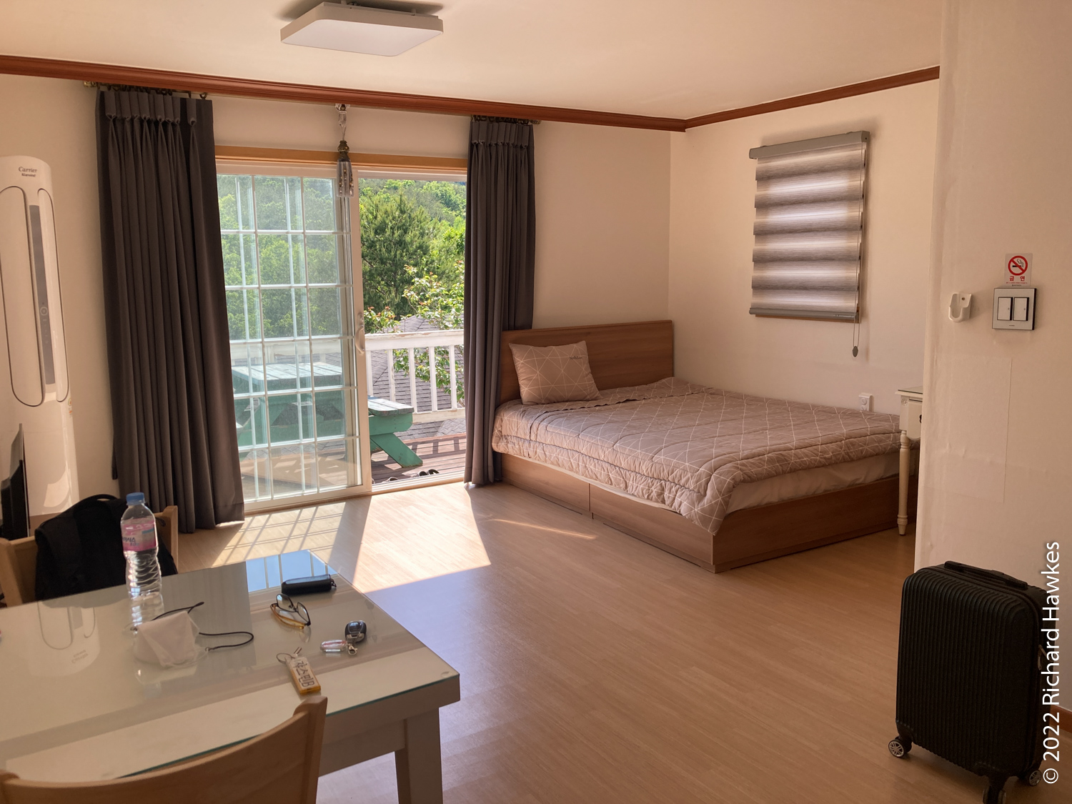 Next, we drove to our accommodation, a set of white wooden houses which looked onto some greener hills and a smaller Ulsan Bawi in the distance. This was the first time I’d booked a place using the Naver maps pension booking system. It was a really cool place and my parents and I had rooms next to each other with balconies on the 1st floor (in UK), or 2nd floor (in Korea).
