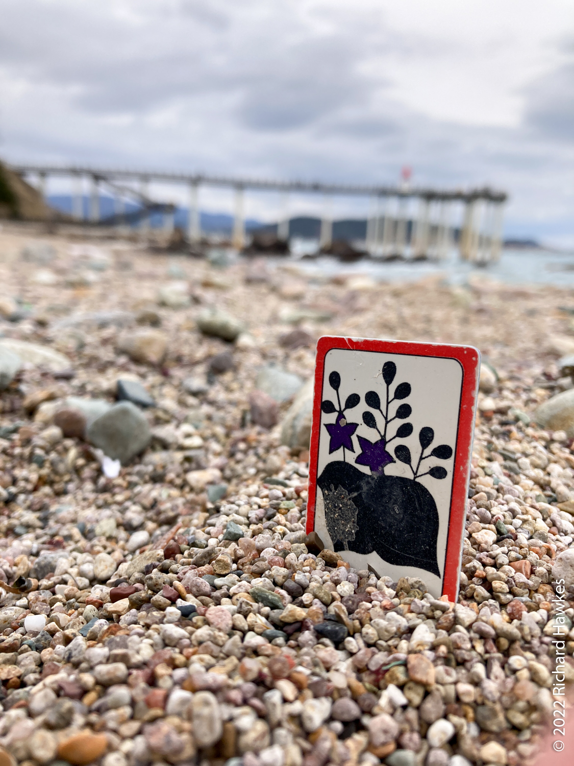Igari anchor observatory (이가리 닻 전망대) is a fancy pier over rocky beach and sea. I walked to the end of the pier for some nice sea views. I had some odeng back on land before heading onto the beach. I found a lonely go-stop card and got arty with it! Then I headed off for a coffee stop.