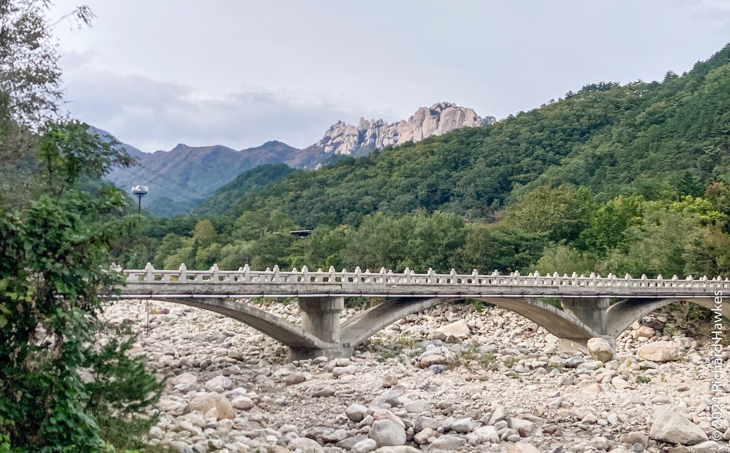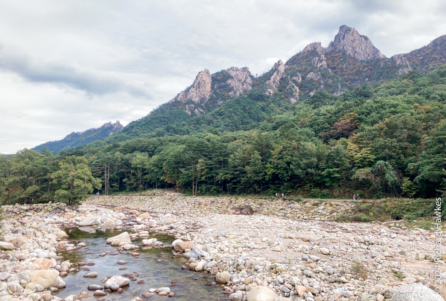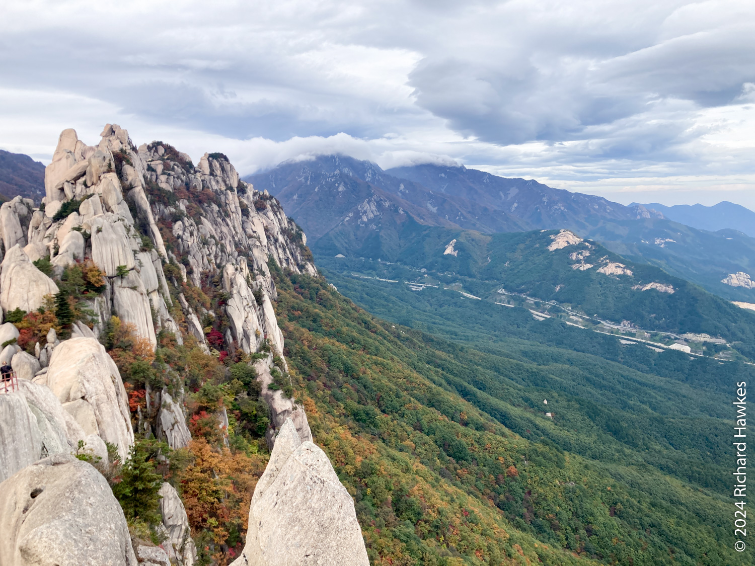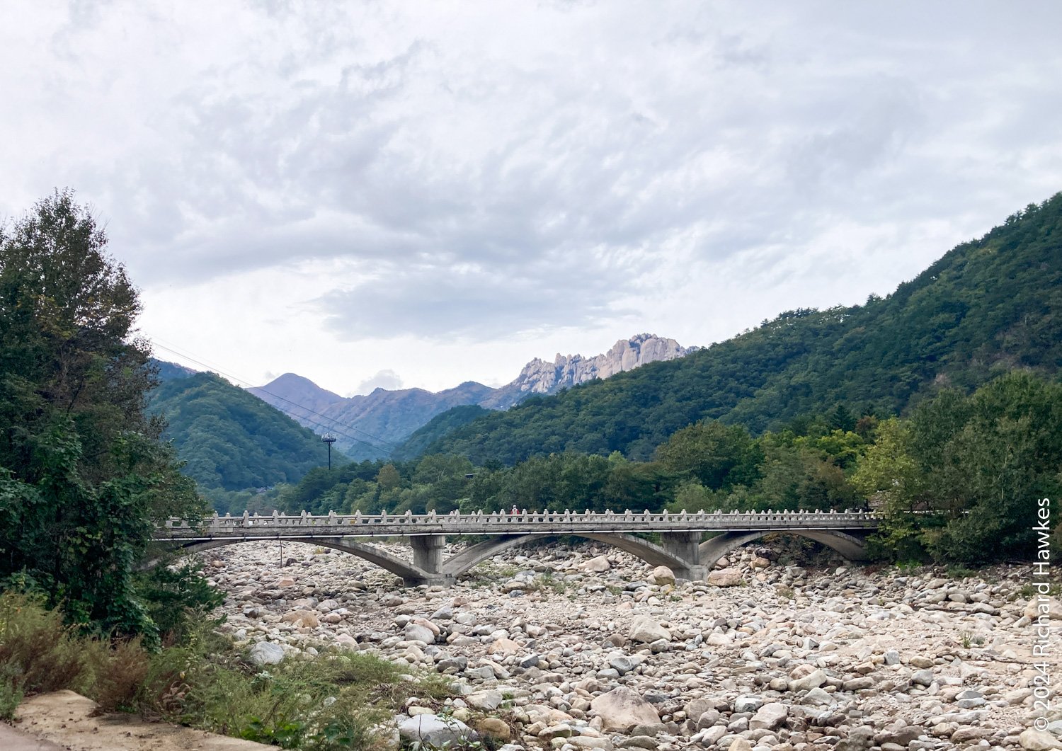 At the top, the views across the valley and the distant peaks it quite something. Towangseong waterfall is very tall and in three sections. It’s probably about 1km in length over the sections. It’s hard to see, so use the telescope up there. I wasn’t expecting to see water, but through the lens you can see lots of water pouring down. The thing is, it seems to be starting at the very top of the mountain peak, so I wonder where the water is coming from… Is there a tap up there?! After resting, I made my way down and enjoyed the reverse view. At sections on the way, you can see all the way to the Sokcho, the sea, and Seorak Bridge. I got back to the park entrance at about 15:30. What a great hike.