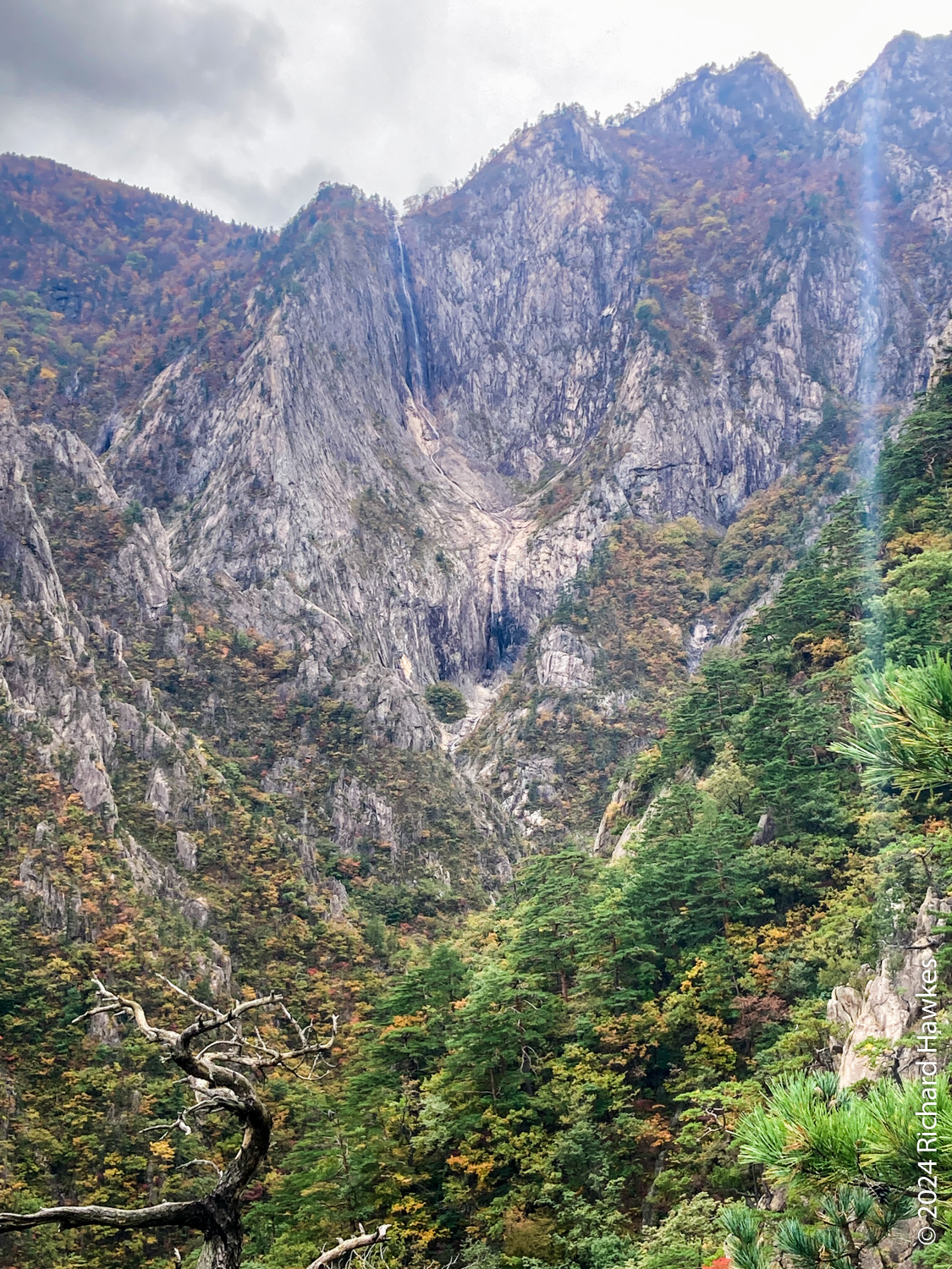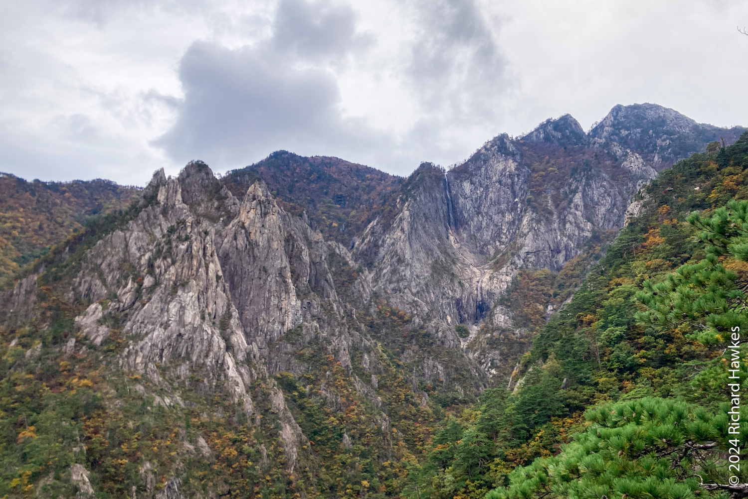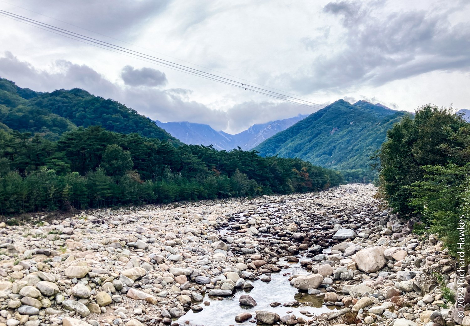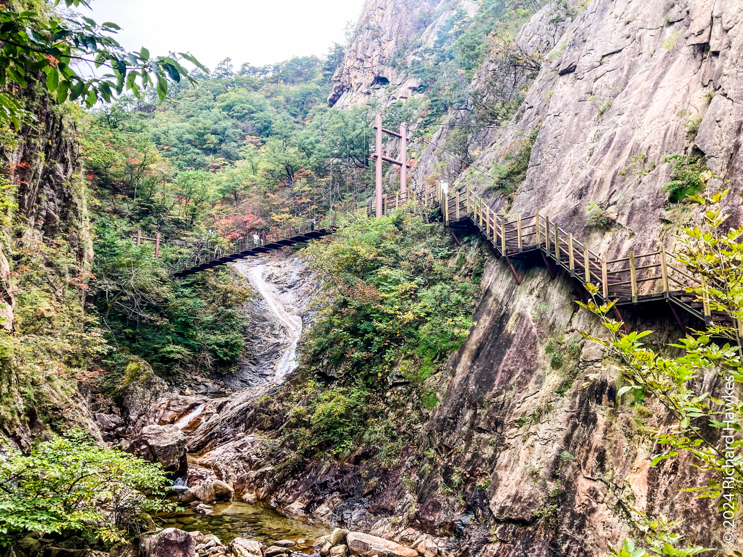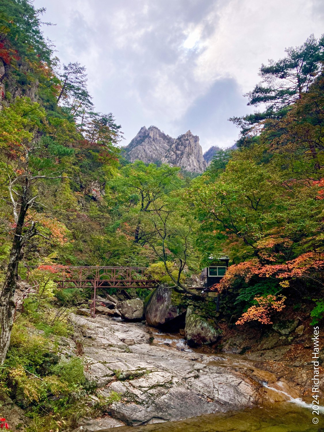 At the top, the views across the valley and the distant peaks it quite something. Towangseong waterfall is very tall and in three sections. It’s probably about 1km in length over the sections. It’s hard to see, so use the telescope up there. I wasn’t expecting to see water, but through the lens you can see lots of water pouring down. The thing is, it seems to be starting at the very top of the mountain peak, so I wonder where the water is coming from… Is there a tap up there?! After resting, I made my way down and enjoyed the reverse view. At sections on the way, you can see all the way to the Sokcho, the sea, and Seorak Bridge. I got back to the park entrance at about 15:30. What a great hike.