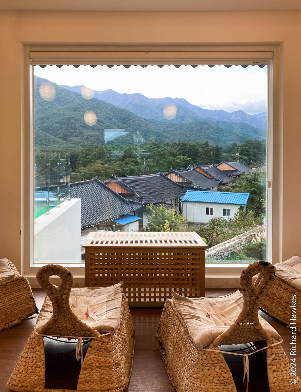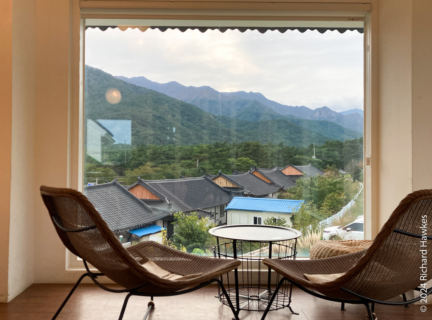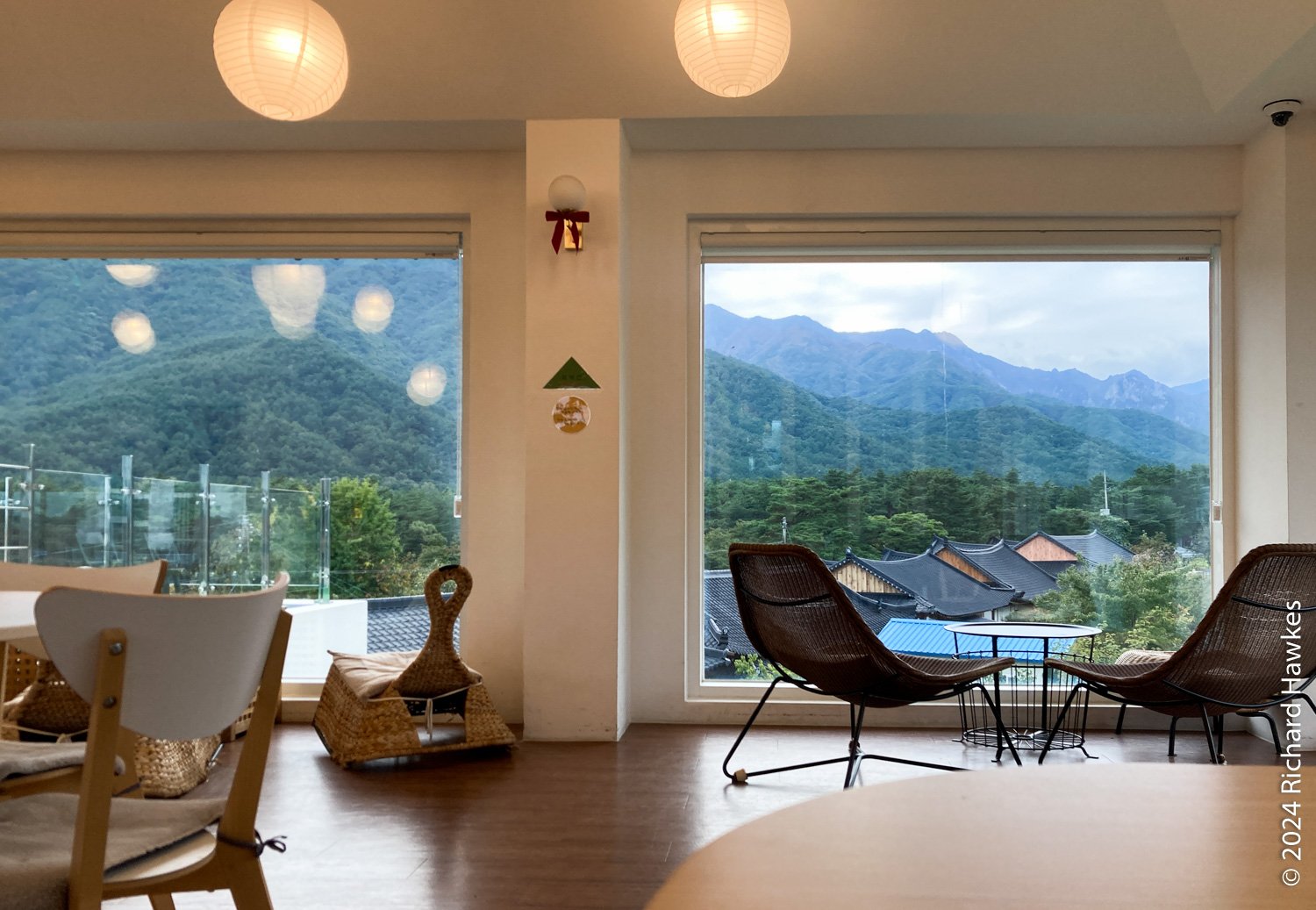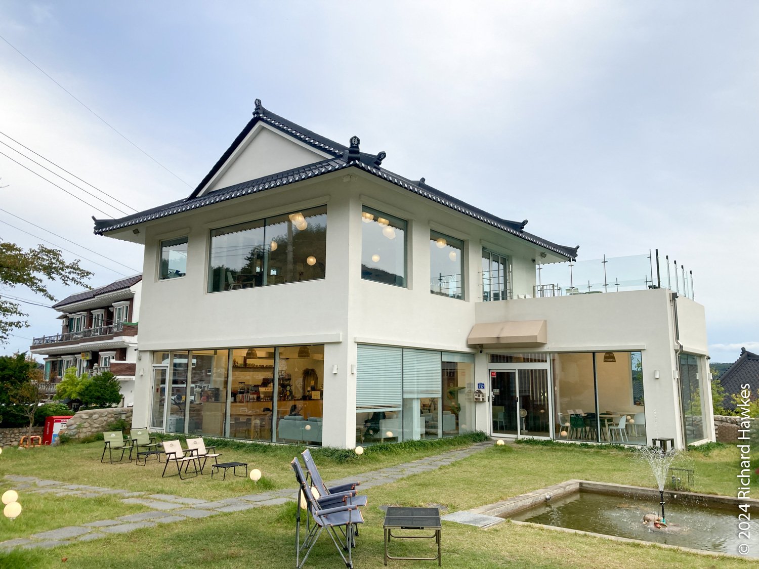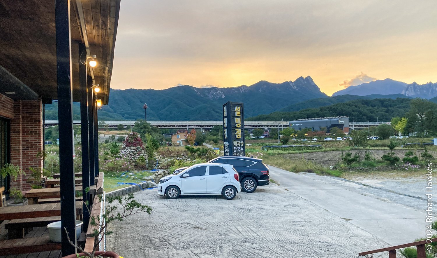 I drove to Cafe Daon (다온) nearby. I’d stayed in this small village in 2022 on my rainy solo trip. There’s a rooftop, so I sat up there with my coffee and let some of the hiking stiffness go. I took photos, checked my phone, and thought about dinner.